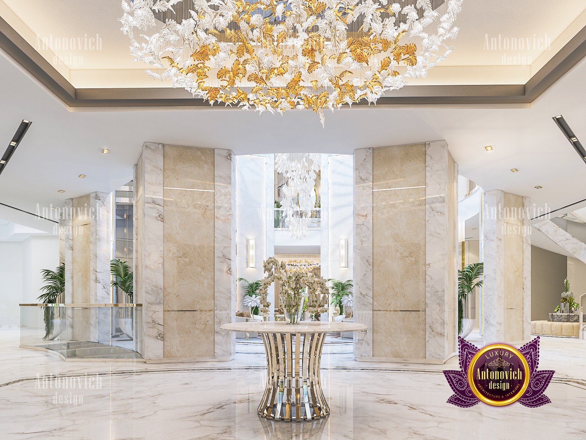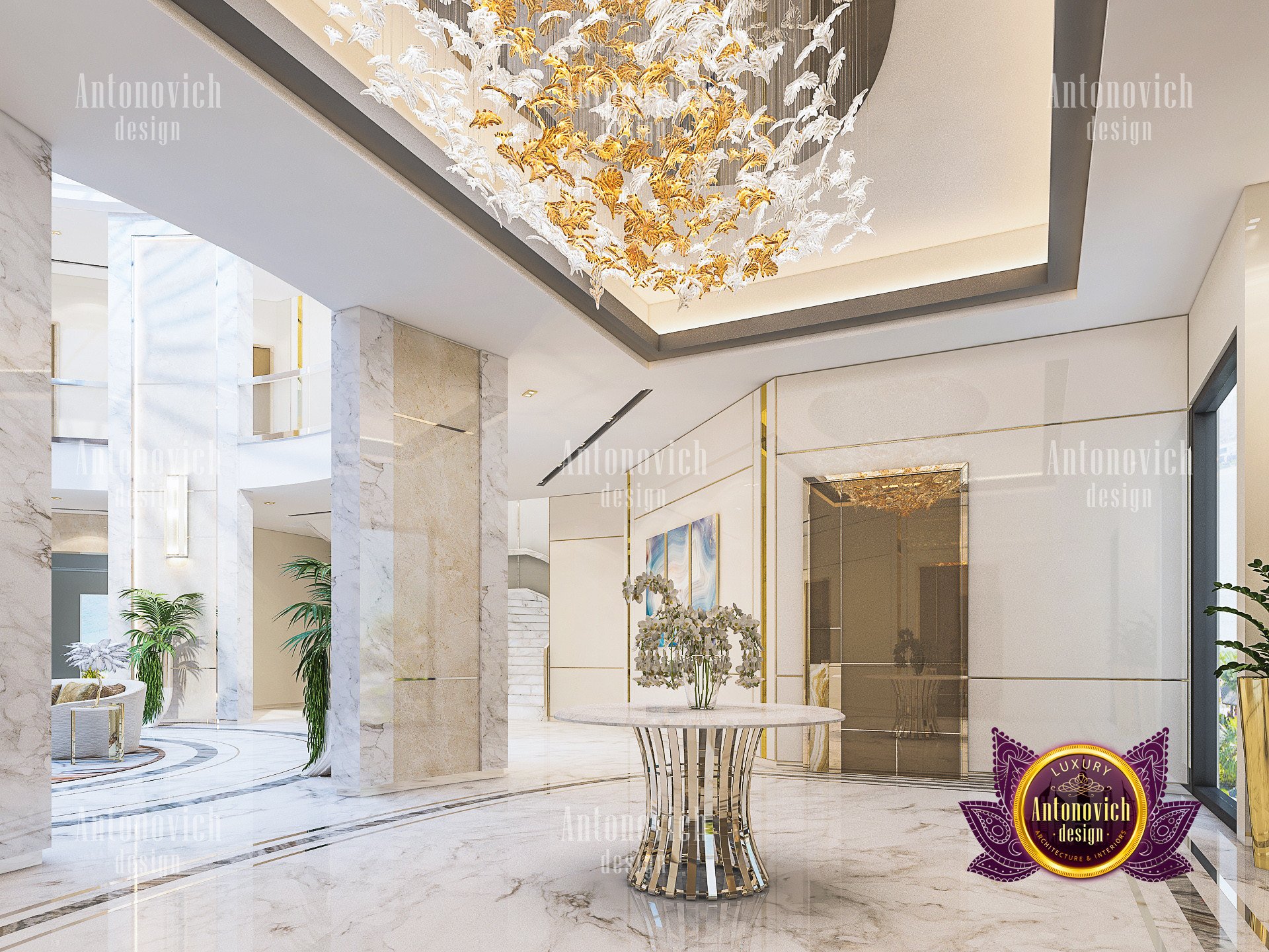 In this luxurious interior design for villa, Luxury Antonovich Design has performed remarkable implementations according to the exact design requirement from the client. Having a high ceiling creates a very pleasant and comfortable mood. Entering the villas is a very prestigious setting of lobby area surrounded by the set of concrete walls with a perfect lighting effect towards every walls and LED lighting over every linings. The lobby is filled with the most prestigious furniture design and decorations which are composed of different artistic pieces. As it has a circular area, the flooring has been designed with a high quality marble design topped with a circular carpet design made up of premium class materials. To add up the convenience of this art deco interior design for this villa, an elevator which has been designed according to the mood of the villa has been installed at the area which is very accessible in every major parts of the villa. A set of natural plants has been also installed to balance the atmospheric decoration of the interior. What makes this villa extra luxurious is the greatest selection of lightings and chandelier design which covers the right blend of brightness over very wide spaces. All the furniture and decorations that has been used and implemented in this art deco interior design villa is meticulously produced and specially made only for this project by Luxury Antonovich Design. As there are visible forms of style and uniqueness towards every areas, Luxury Antonovich Design specially created a set of customized furniture design which is a part of requirement in developing this villas as it has a very large forms of interiors most specially in the major areas such as the Lobby, halls, sitting areas, and dining area. Instead of using a normal paint, Luxury Antonovich Design selected a very fine and stylish wall panelling design which is complimented with different forms of artistic pieces such as paintings and wall lighting.