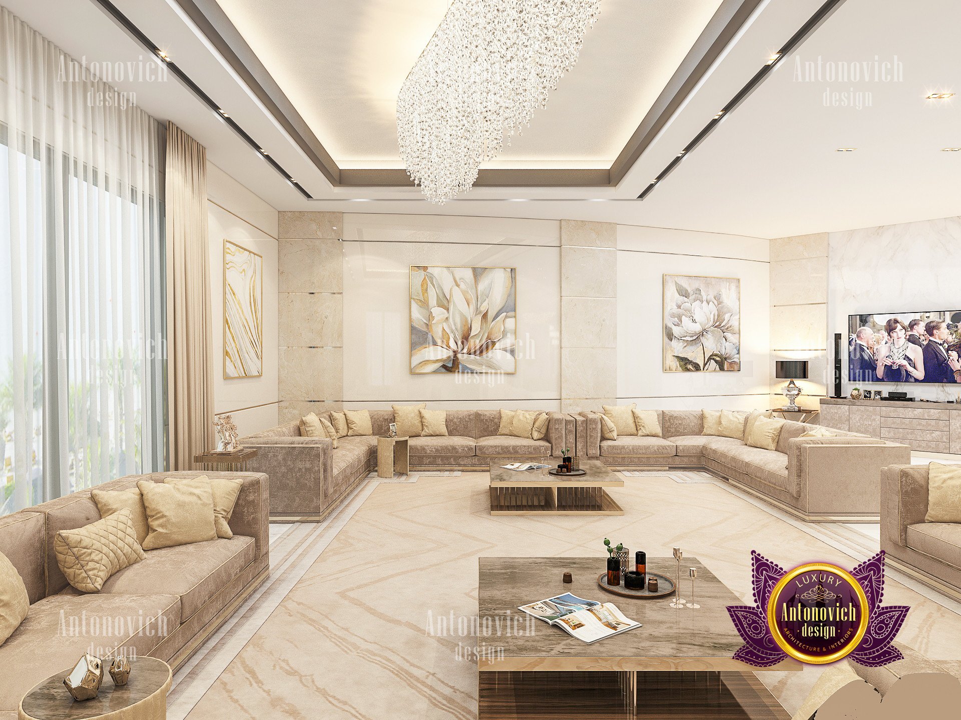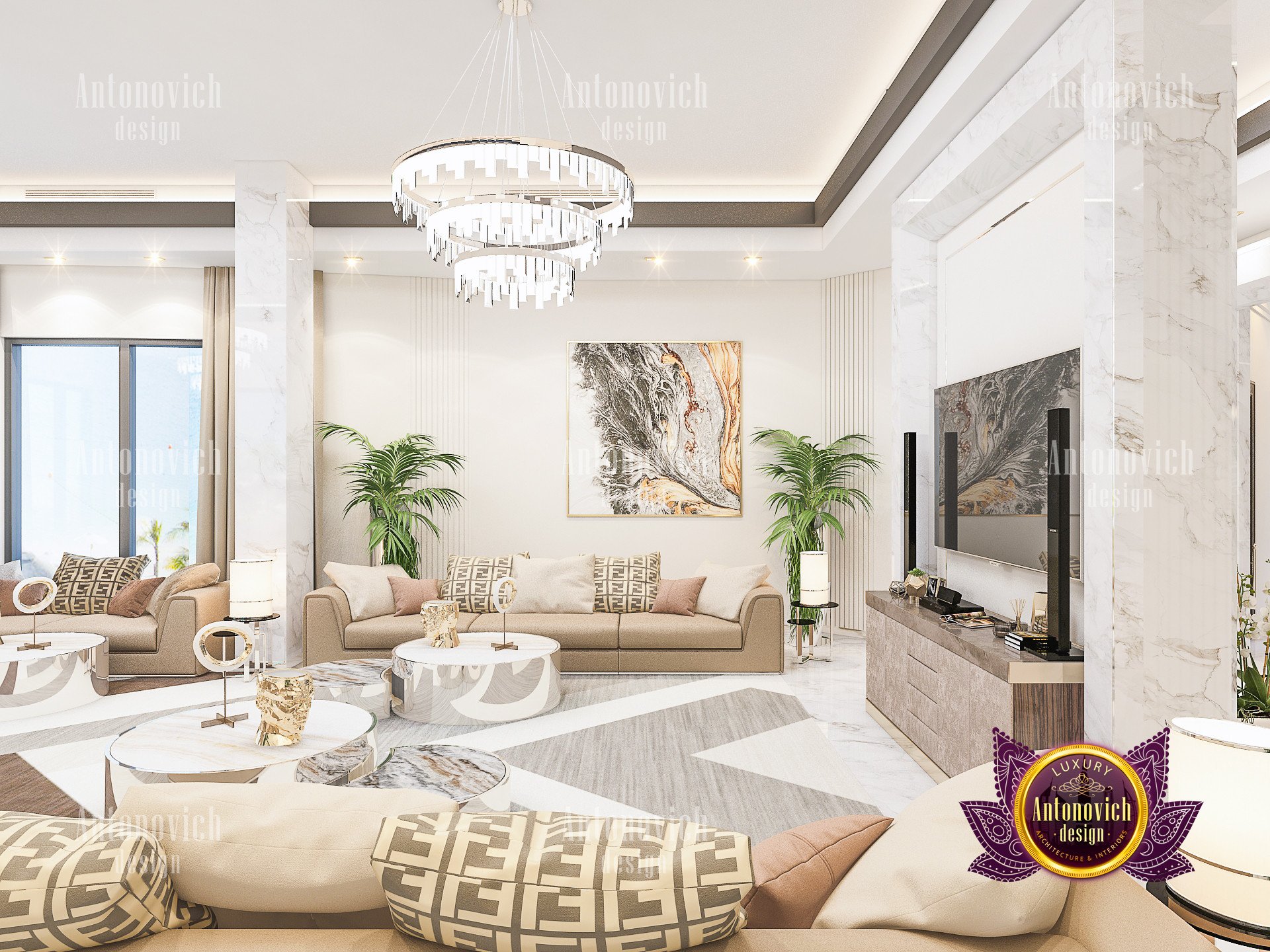 This villa has the most elegant and stylish ceiling design arrangement filled with majestic chandeliers, LED lights and creative gypsum works. Luxury Antonovich Design has indeed emphasized how every lighting works elegantly in every open space. Selecting the right blend of lighting for villa will absolutely bring out an extra glam and luxury effect. Luxury Antonovich Design also specialized creating a different customized lighting and chandeliers design which is very in demand for every luxurious villas, palaces and Luxury hotels. With this magnificent residential project, Luxury Antonovich Design has indeed performed the perfect form of art deco interior design for villa.