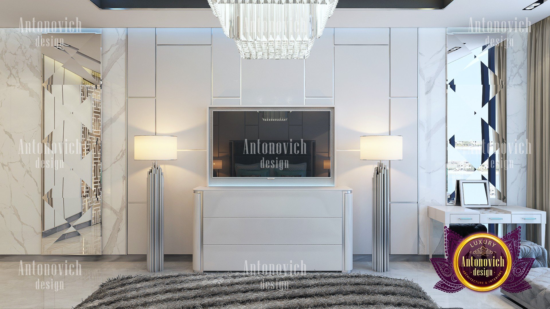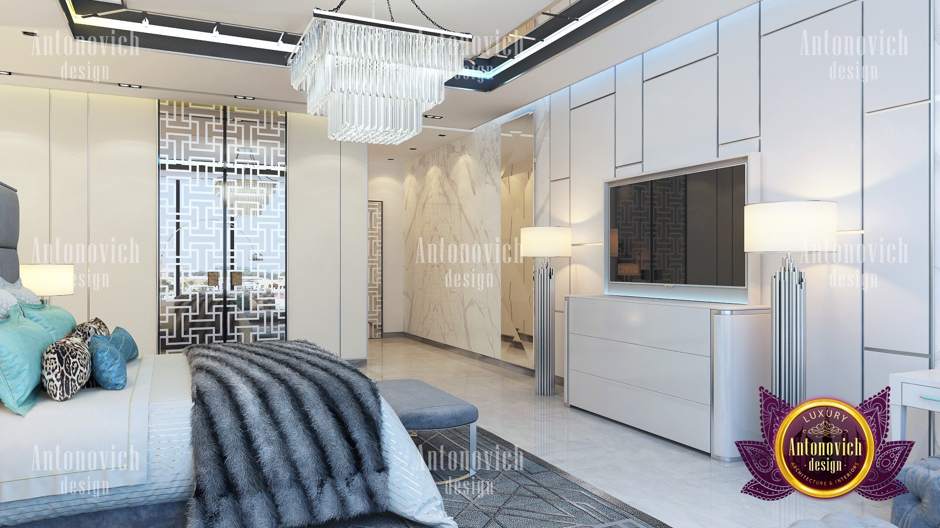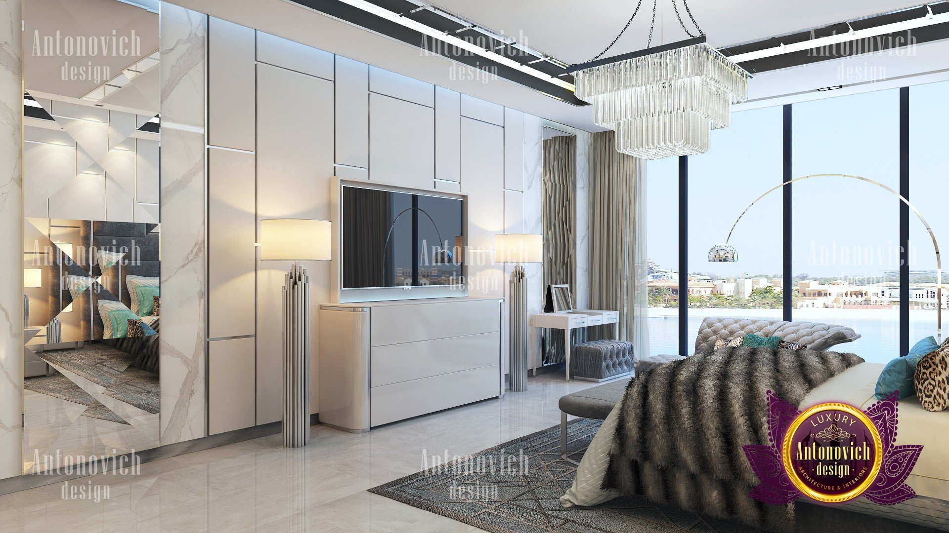 Luxury Antonovich Design has performed another masterpiece in decorating these amazing bedroom interiors. As it has the most qualified and expert interior design team, Luxury Antonovich Design has the full ability to develop every contemporary bedroom interior design from a systematic fit-out work up to the smallest details from sanitary equipment, different types of bedroom flooring materials, gypsum works, wallpaper, wall paneling, and the full bedroom decoration to achieve the most desirable bedroom interior design.