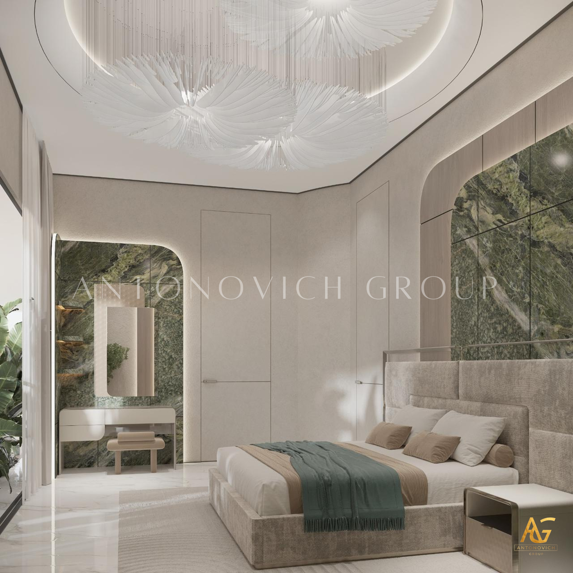 There are interior decoration, looking at which the eye rests, a mood becomes smooth and pleasant and you feels relaxed.It is such a lovely emotions, gives this beautiful interior of a bedroom in modern style. Interior Designers of Luxury Antonovich Design Studio created a comfortable oasis for owners of the elite house three bedroom plan, where you can relax after a day full of events and actions 3 bedroom plan. In a light palette of hues are dominant cream, coffee, and cocoa. High ceilings adorned by a shallow niche with a crystal chandelier in the middle. And to achieve varying degrees illumination of the bedroom interior depending on the mood, interior designers have proposed additional ceiling lights.Refinement and respectability to the bedroom interior brought elite furniture made of dark wood, which is covered with varnish.The floor is decorated with precious marble in bright colors (3 bedroom building plan). To compensate for the coolness of a stone, interior designers use large natural carpet in the bed area.Decorative plaster of cream color with a matte effect is what highlights the other more colorful details.Thin inserts of mirrors elegantly extending the space and make the room visually more spacious.Luxury bed with high upholstered headboard, which is upholstered with natural leather of milky hue, had exquisitely decorated the sitting room decor and brought such necessary moments of comfort.The curtains in the interior of the bedroom became a wonderful final moment of warmth and comfort.Silk of two shades adorn the high windows.Charming soft Holders with brushes as well as elegant sconces give pleasant festive accents decoration pictures.