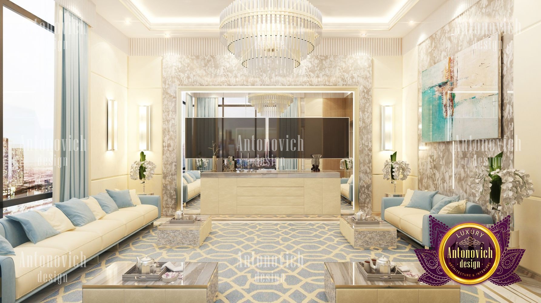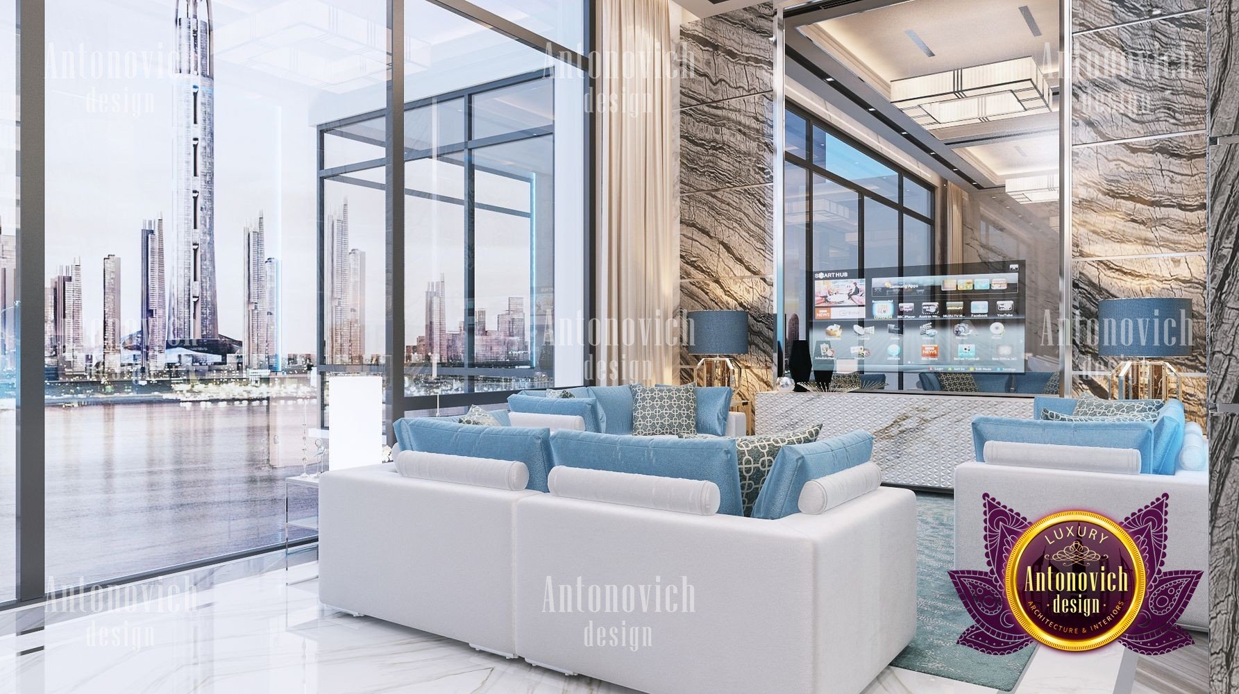 Some may believe its very simple to outfit and design a greater space, yet in all actuality, its the opposite. Adhering to the nuts and bolts may abandon you with a house that appears to be unfilled and plain, while running hard and fast with the furniture may result in a space that feels cramped. In this home, the proprietors appreciate a lot of floor space in the living territory. Nonetheless, it needs character and theres a ton that should be possible to amplify it. To change the space, Dubai-based interior design firm Luxury Antonovich Design worked with a blue-and-light shading palette. Besides filling in as the ideal background for the pieces, it also lends a calming, hotel-like feel the clients wanted.