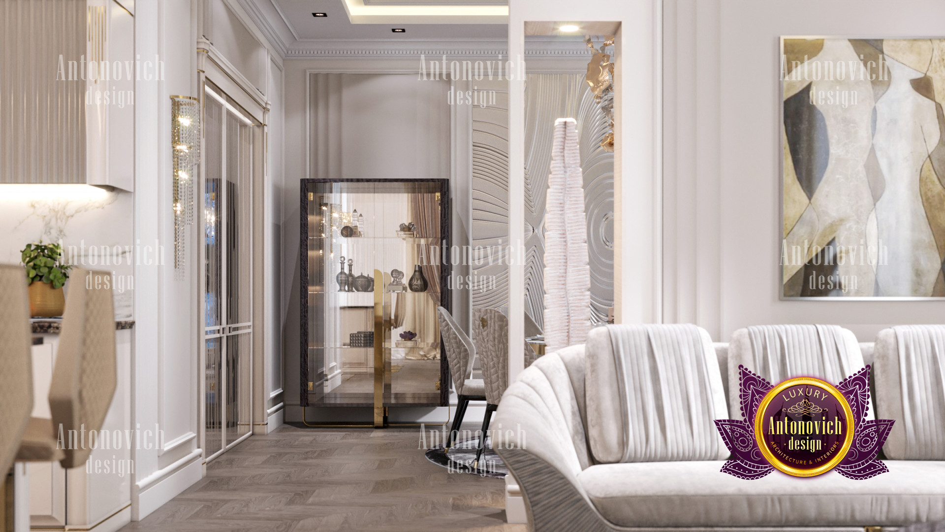 Luxury Antonovich Design has created a stunning kitchen room design that is both contemporary and luxurious. With Luxury Antonovich Design, we can create the interior of your dreams. The interiors overall design is geared at luxury and style. The luxury center table is also a nice complement to the interior designs overall look and feel. The kitchen area is decorated in a luxurious style. The arrangement is designed to exude wonderful sensations from every nook and cranny of the space.