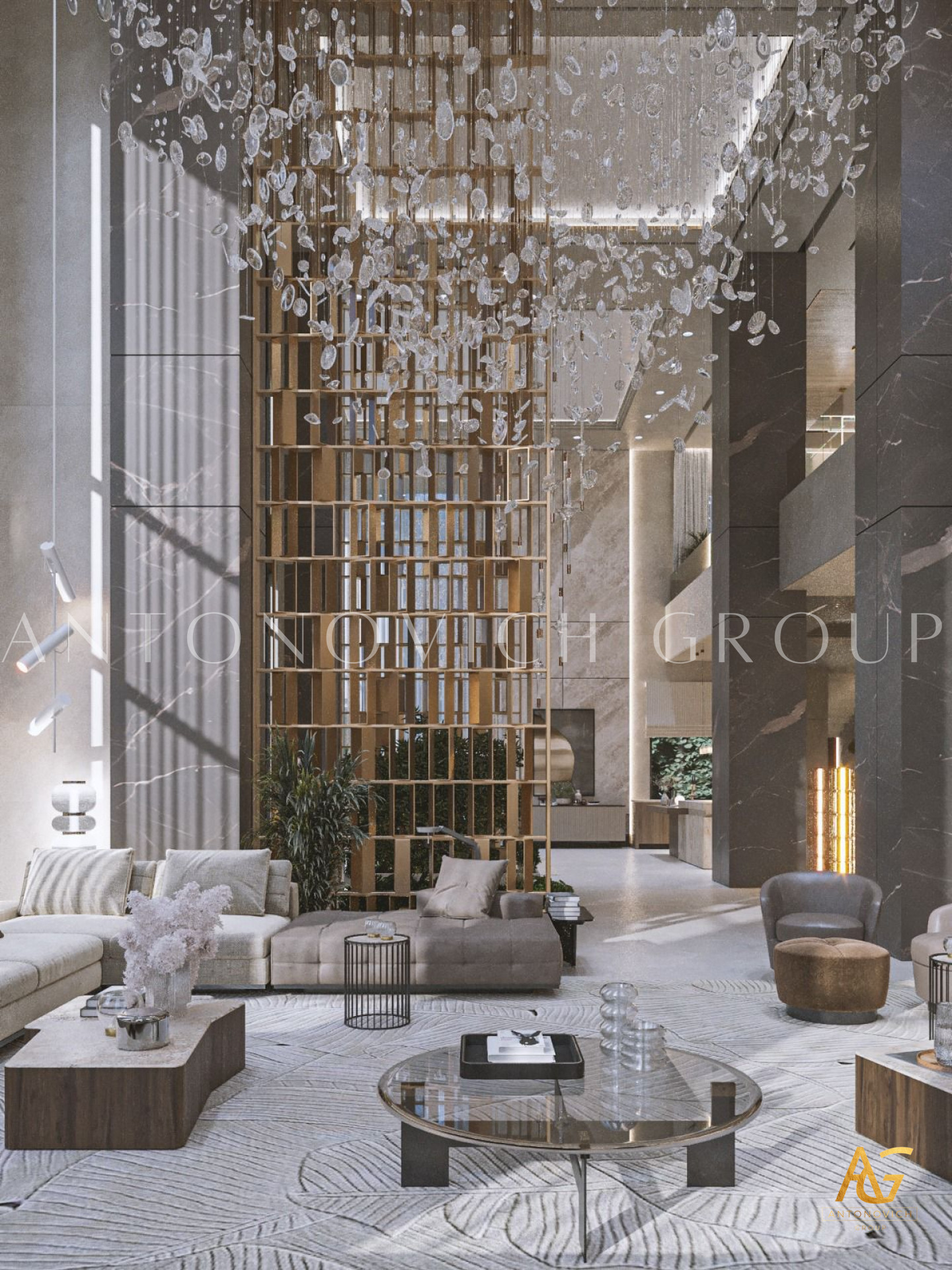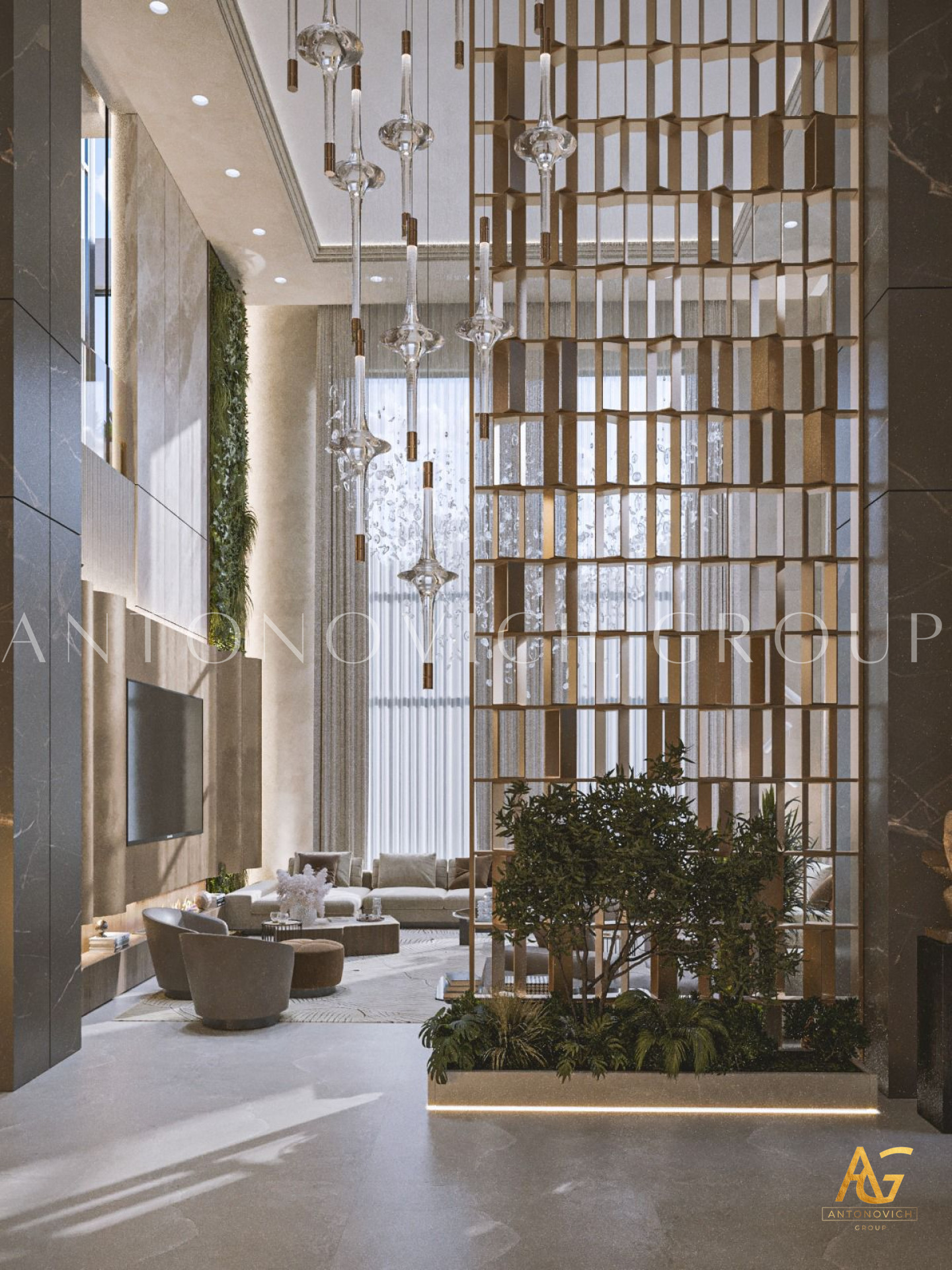 Antonovich Group provides comprehensive services for the development of every elite residential property, including royal villas, palaces, and luxury mansions. From space planning and development to fit-out work, design implementation, furniture and décor selection, and design execution and installation. The living room, also known as the sitting area or majlis, is an important part of a residential project because it has the most space. The best part of the house is also the living room, where the owner usually entertains guests and holds small gatherings. As a result, living rooms are the best place in the house for the owner to express their personality and lifestyle. Property owners use d to decorate their living rooms as a great gesture of hospitality.