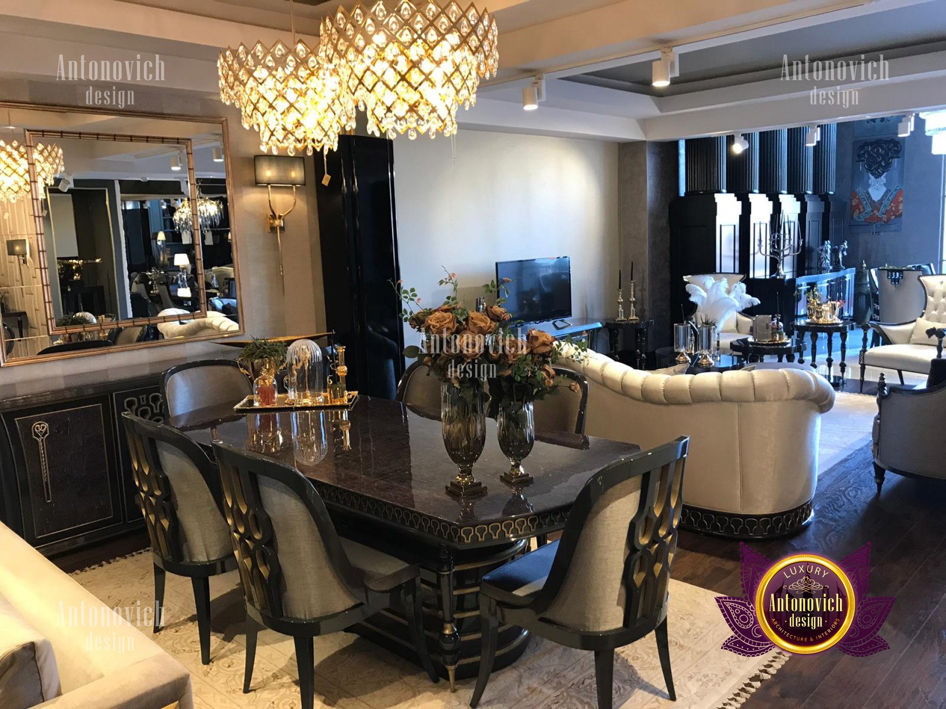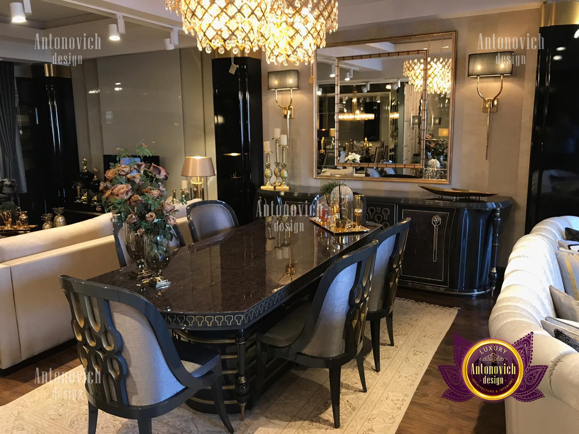 Modern and classic luxury furniture from Luxury Antonovich Design allows you to harmoniously go beyond the ordinary. Each of the collections is worthy of attention and is perceived as the best authors design. Our designers and artisans constantly monitor all the latest trends in the furniture industry. Our showroom presents an extensive range of products that will help to equip a stylish living room, a cozy and romantic dining room, a kitchen in modern or classic style: