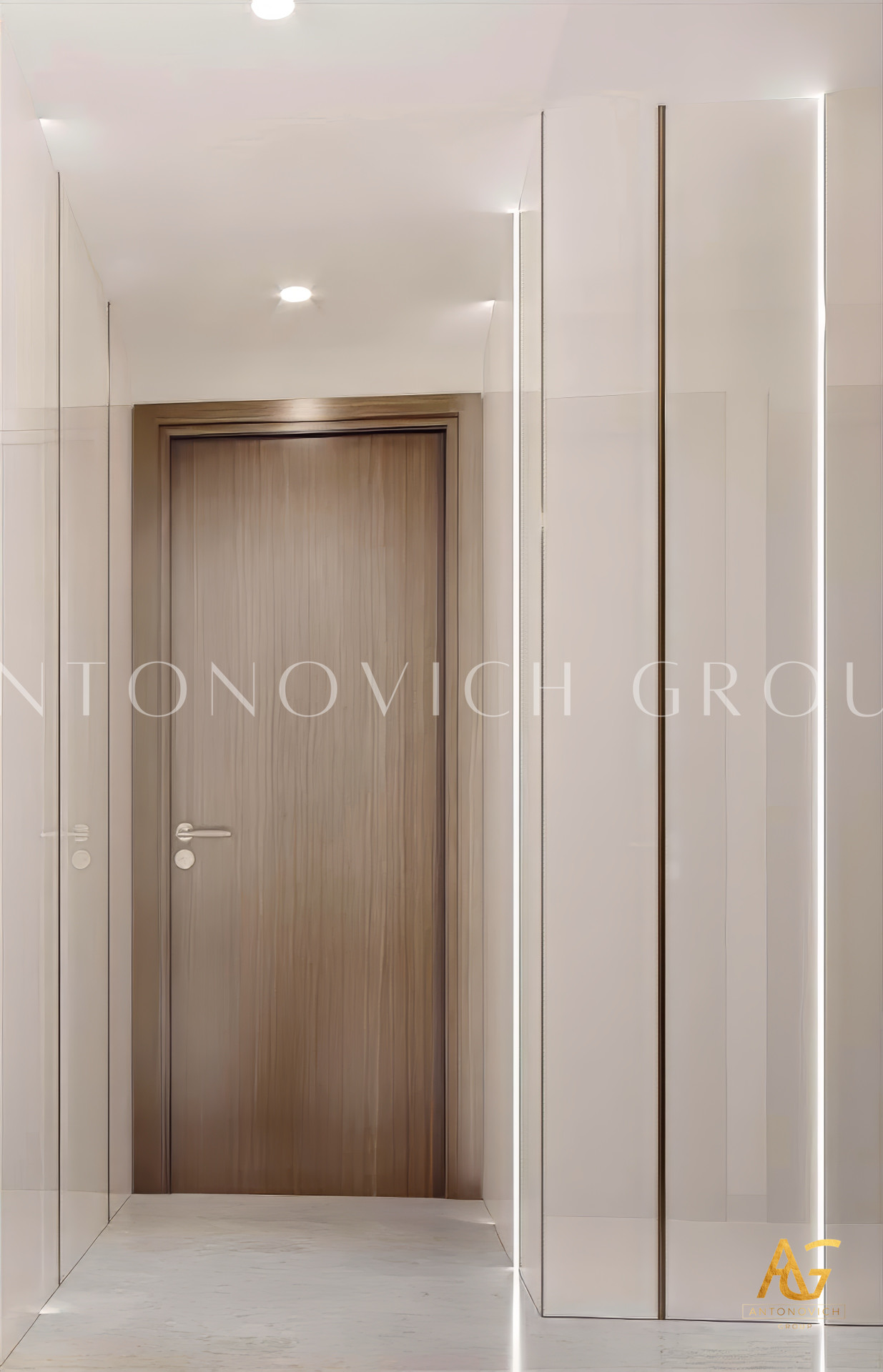Every project by Antonovich Group carries a signature of precision, luxury, and artistry. In this contemporary apartment, details such as recessed lighting, elegant marble accents, minimalist wall cladding, and curated accessories elevate the space beyond standard interiors. The company’s in-house manufacturing of joinery and custom furniture ensures that every element fits perfectly — both functionally and visually.