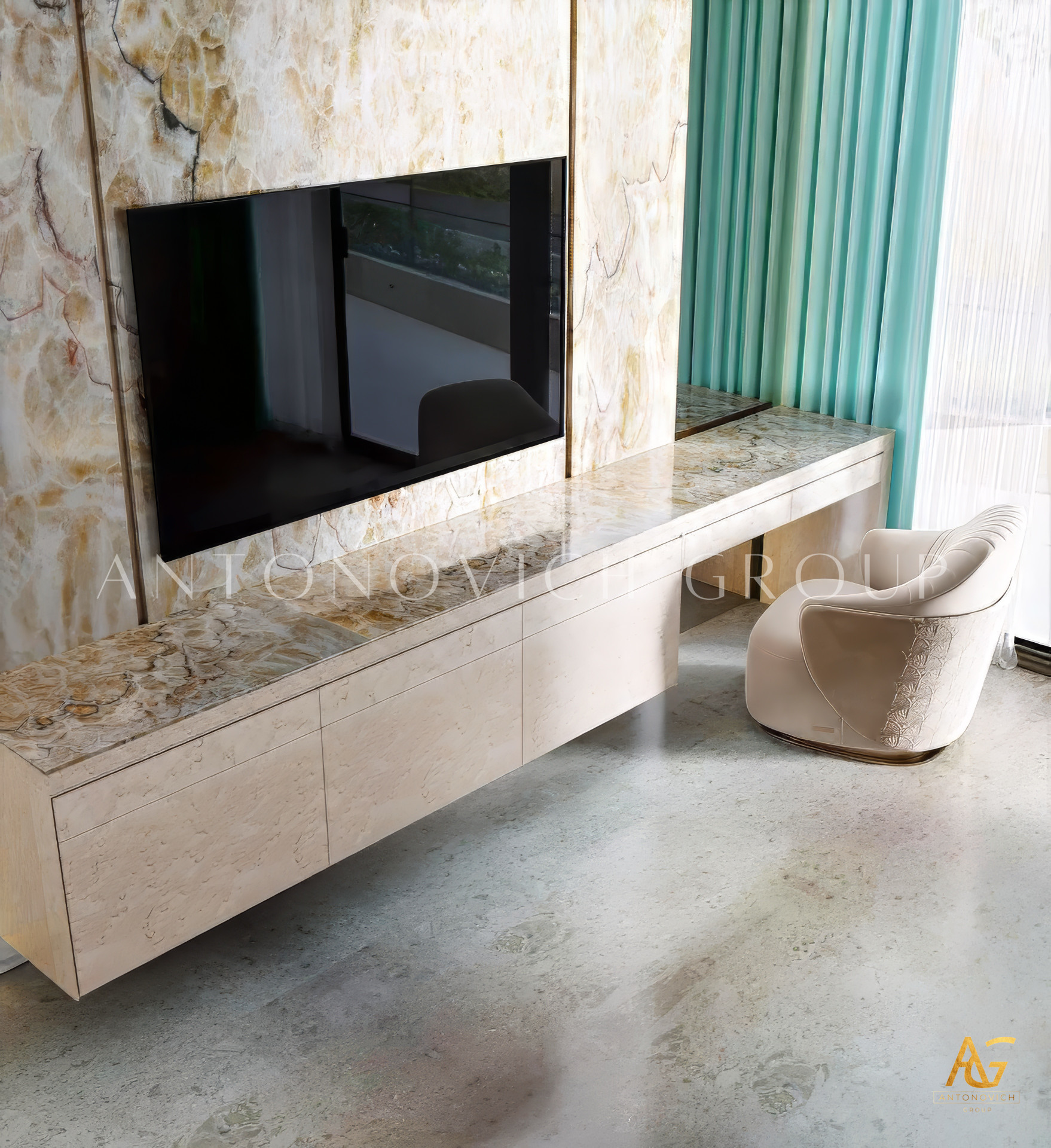 One of the standout features of Antonovich Group is its comprehensive turnkey interior solutions. From concept design to final installation, the entire project is handled by an expert team of architects, designers, engineers, and craftsmen. This ensures every element — flooring, ceilings, joinery, lighting, and furniture — is executed with flawless precision.