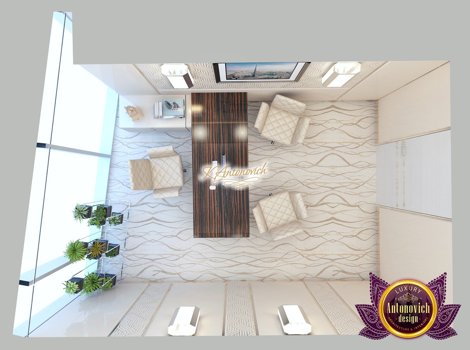 The interior design of a large company office, as a rule, implies complex solutions that include the design of the reception hall, the design of household premises, the design of the manager office, the design of the working areas and the design of the conference rooms. In this project, we represent one of the options for the modern interior design of the conference room. In this case, we are talking about a relatively small space in which it was necessary to organize a comfortable place for meetings and conferences, provided that it should comfortably accommodate about 14 people. The main part of the interior space, of course, is a large table surrounded by comfortable and ergonomic chairs. In general, for the interior, the studio Luxury Antonovich Design chief designer Katrina Antonovich proposed interesting solutions in a modern style. Here, natural materials in balance with the original lighting. A variety of decor fills the room with harmony and artistic expressiveness. The chairs on the polished stainless steel basis look great against the background of the floors of natural marble with inserts of fine brass lines. The decor of the walls nicely combines glossy panels of a cocoa-milk shade with three-dimensional decor panels of dark wood. A beautiful panoramic view that opens from a large window gracefully echoes the artists painting on the opposite wall. In the decor of the ceiling, modern LED lighting and traditional chandeliers of crystal in the modern style perfectly match. Furniture laconically fits into the interior without loading space. interior design awards, interior design building, interior design channel, interior design company Dubai organization chart, interior design description, interior design for showroom