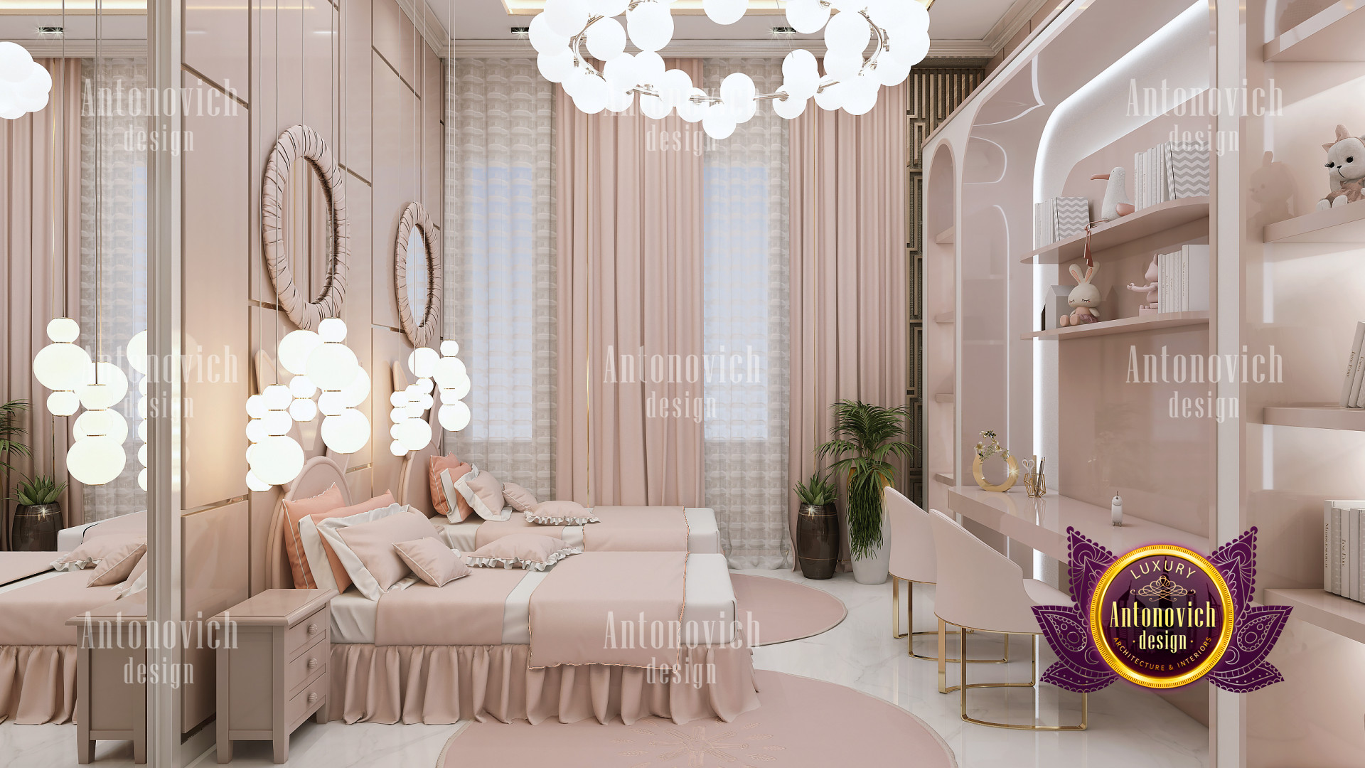 Assemble the most appealing and harmonious home design for your little girls bedrooms! Antonovich Group will create the best interior atmosphere for girls bedrooms with harmonious interior design and modern home décor. The goal is to bring a youthful vibrancy to the space while keeping functional features in mind. These kids room decoration ideas from a UAE interior design firm can help you create a lovely and functional hideaway where your child will enjoy spending time. Graphics can be incorporated into your childs room and interior design in UAE through the use of wallpaper, decals, or good old-fashioned paint and brush.