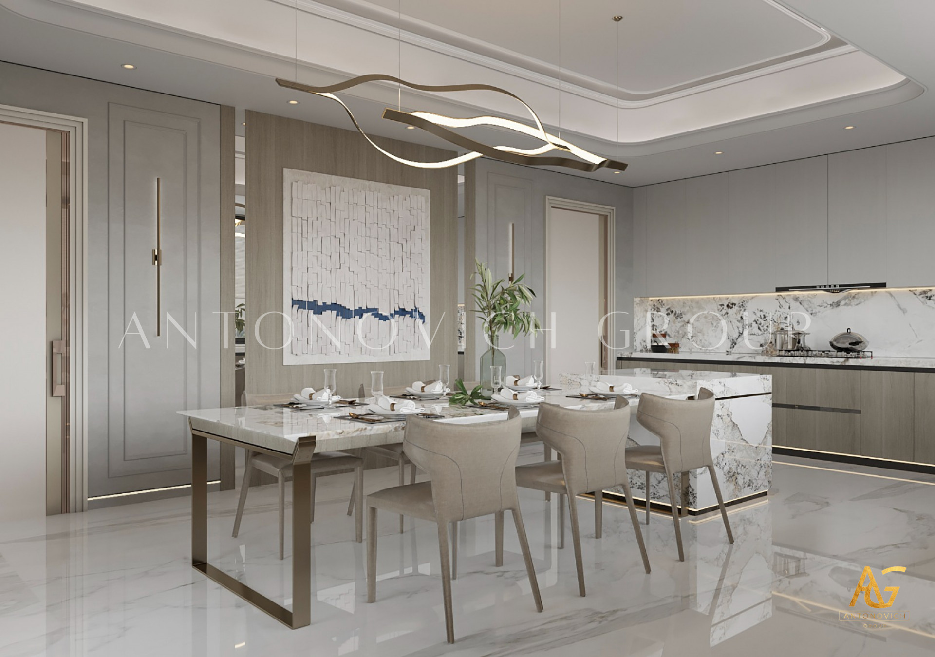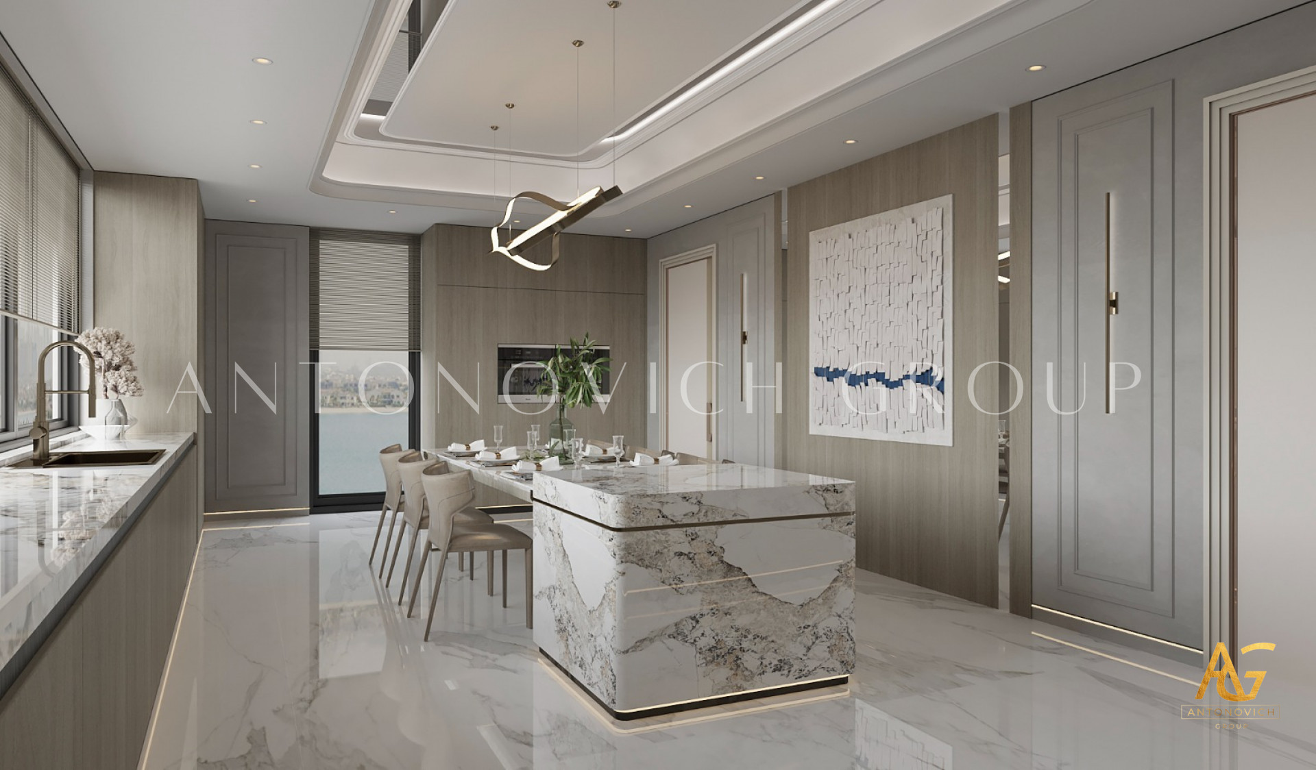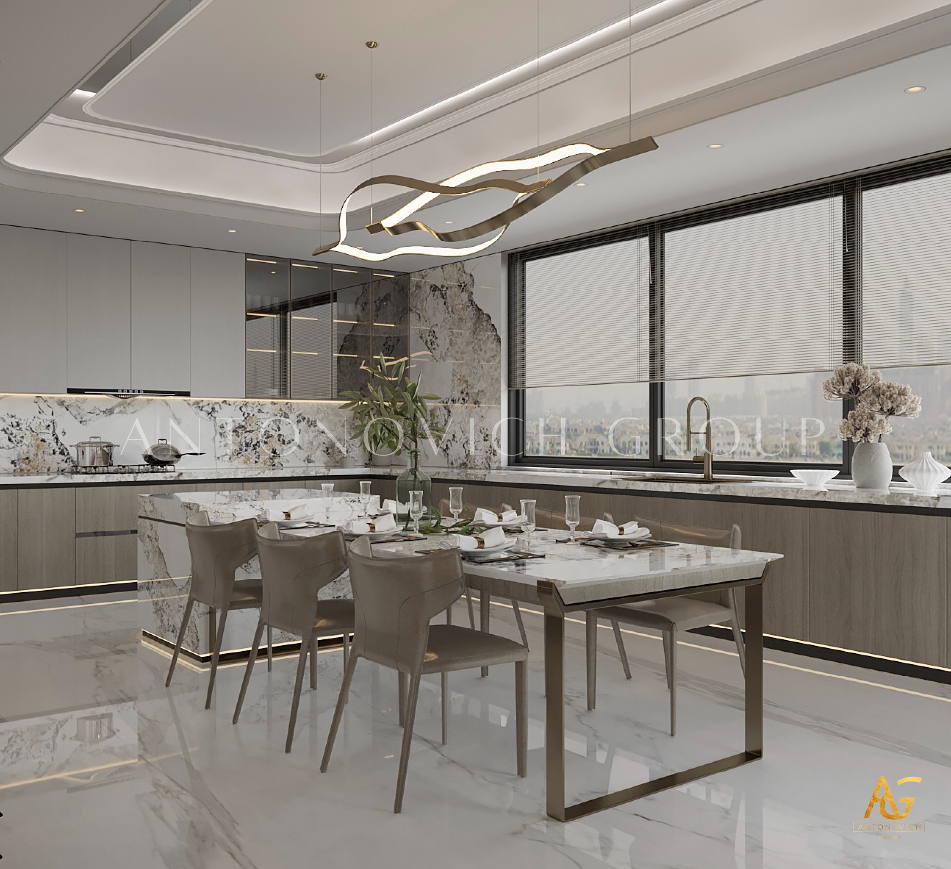 Antonovich Group's modern kitchen interior designs are a celebration of sleek aesthetics. The clean lines, minimalistic design, and strategic placement of fixtures create an ambiance of contemporary elegance. The integration of cutting-edge design concepts ensures that each kitchen becomes a space where culinary creativity meets modern sophistication.