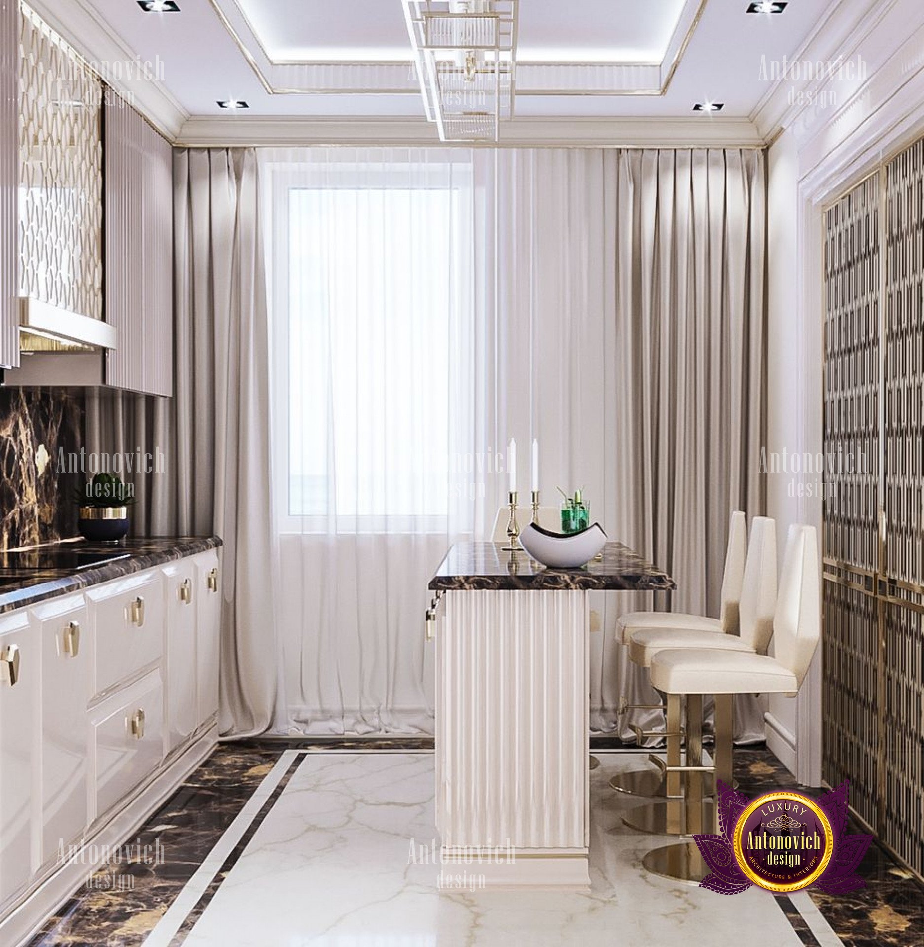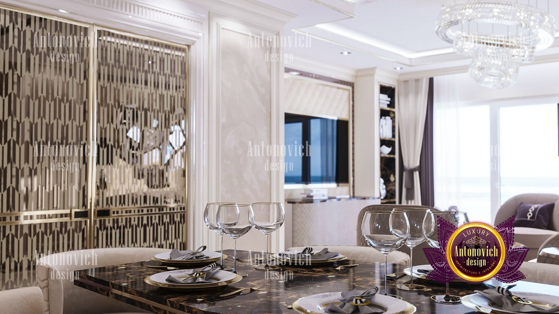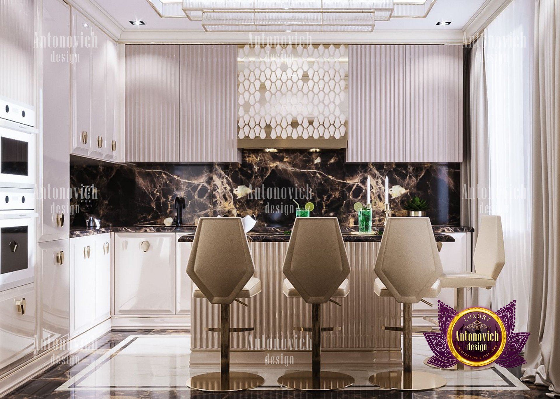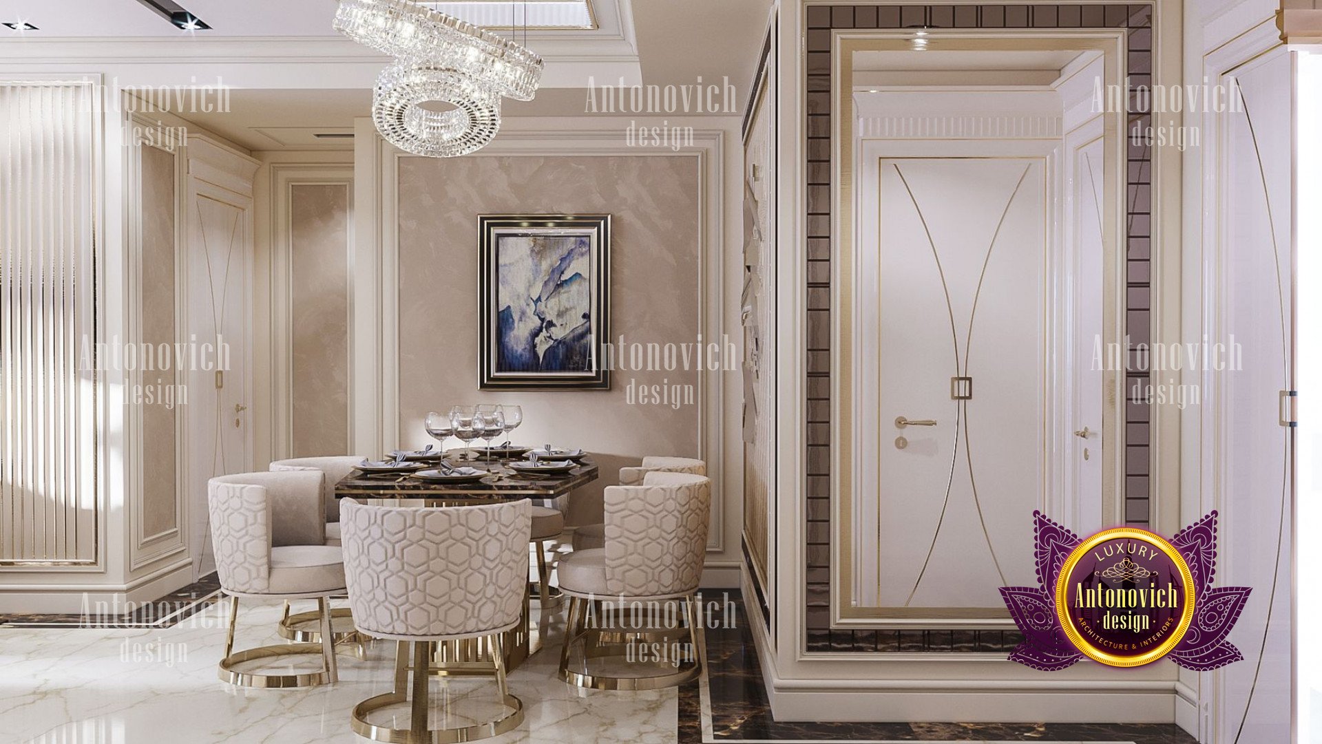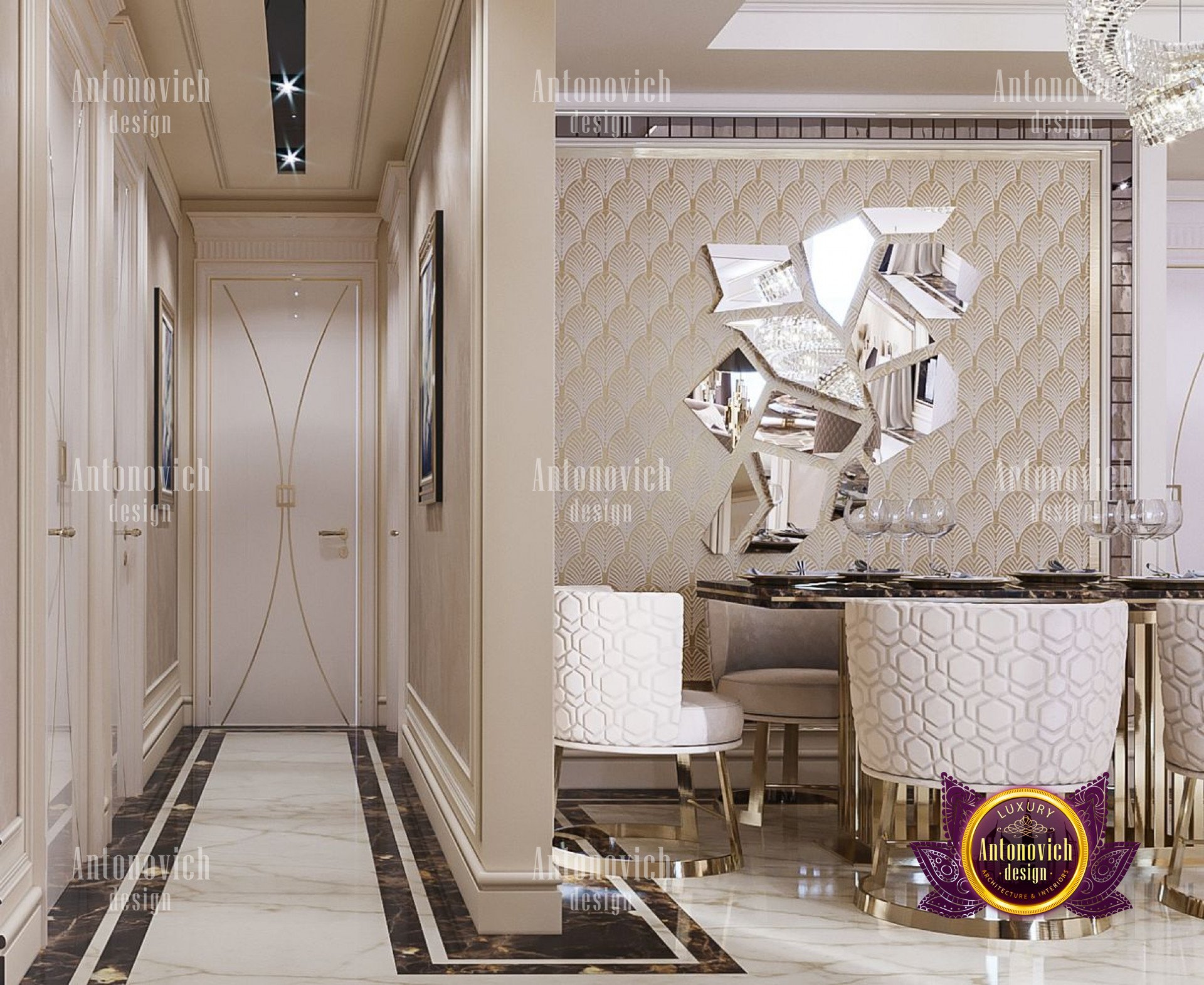 The interior of this apartment was created by Luxury Antonovich Design Studio for a young family in Dubai. The design of the apartment is inspired by a creative atmosphere, bright golden flashes and inspiring details. The living space is ideally suited to the growing needs of the inhabitants. However, it is not without aesthetic appeal.