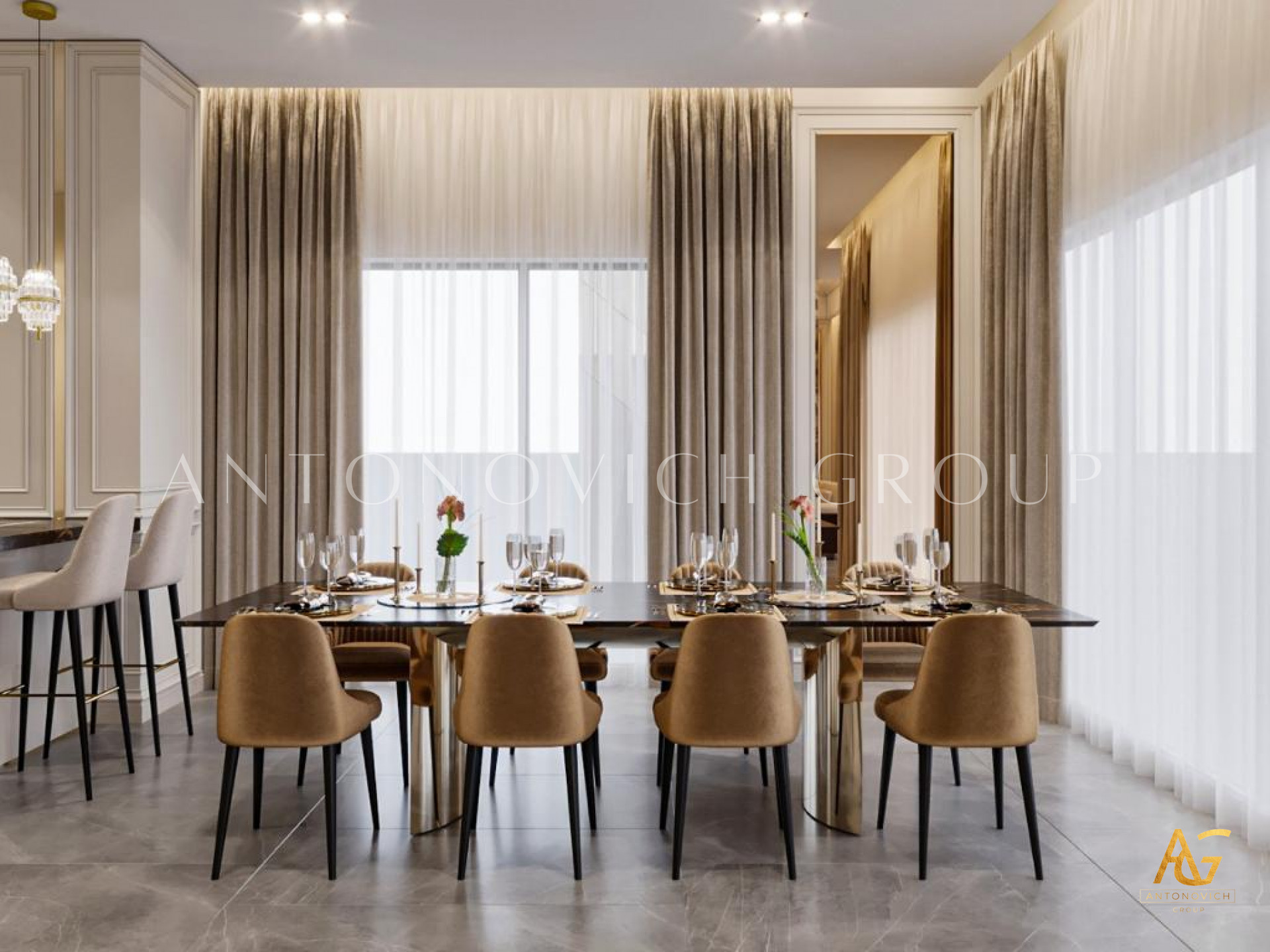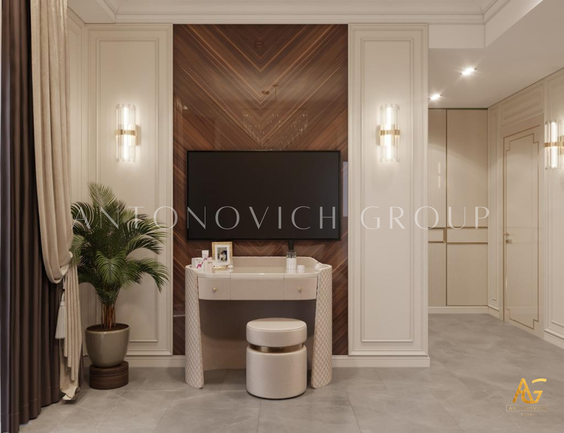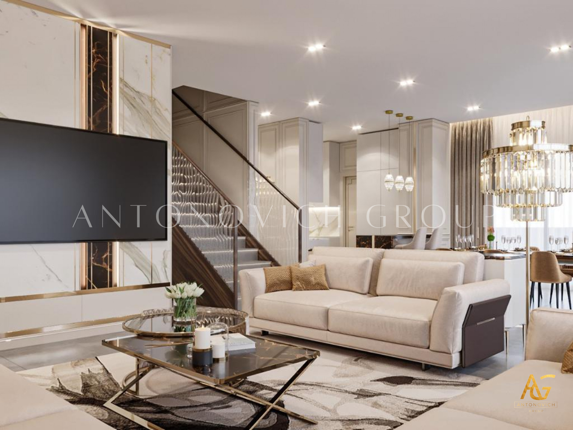 Antonovich Group is proud to present one of its wonderful creations for interior design fit-out and full furniture production in this luxury villa unit in DAMAC HILLS-TOWNHOUSE. Because we offer complete interior design and fit-out implementations, Antonovich Group always guarantees to achieve the most remarkable interior mood that perfectly suits each clients personality and lifestyle. Antonovich Group is one of the best interior design firms that are very well-known for providing customized design in every furniture design and decoration that the team is executing for every luxury-designed project.