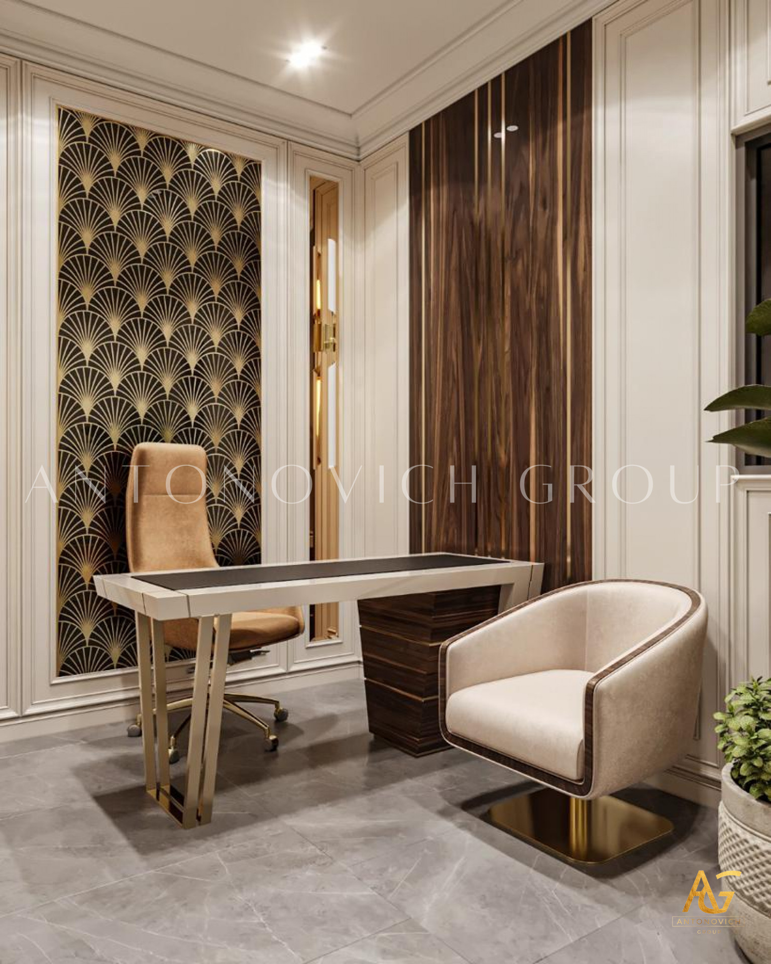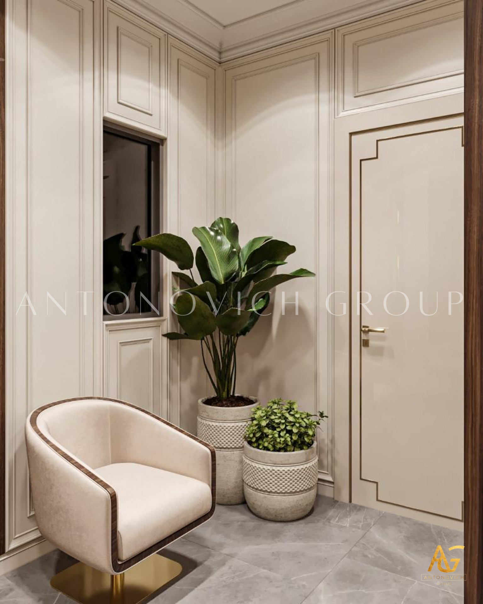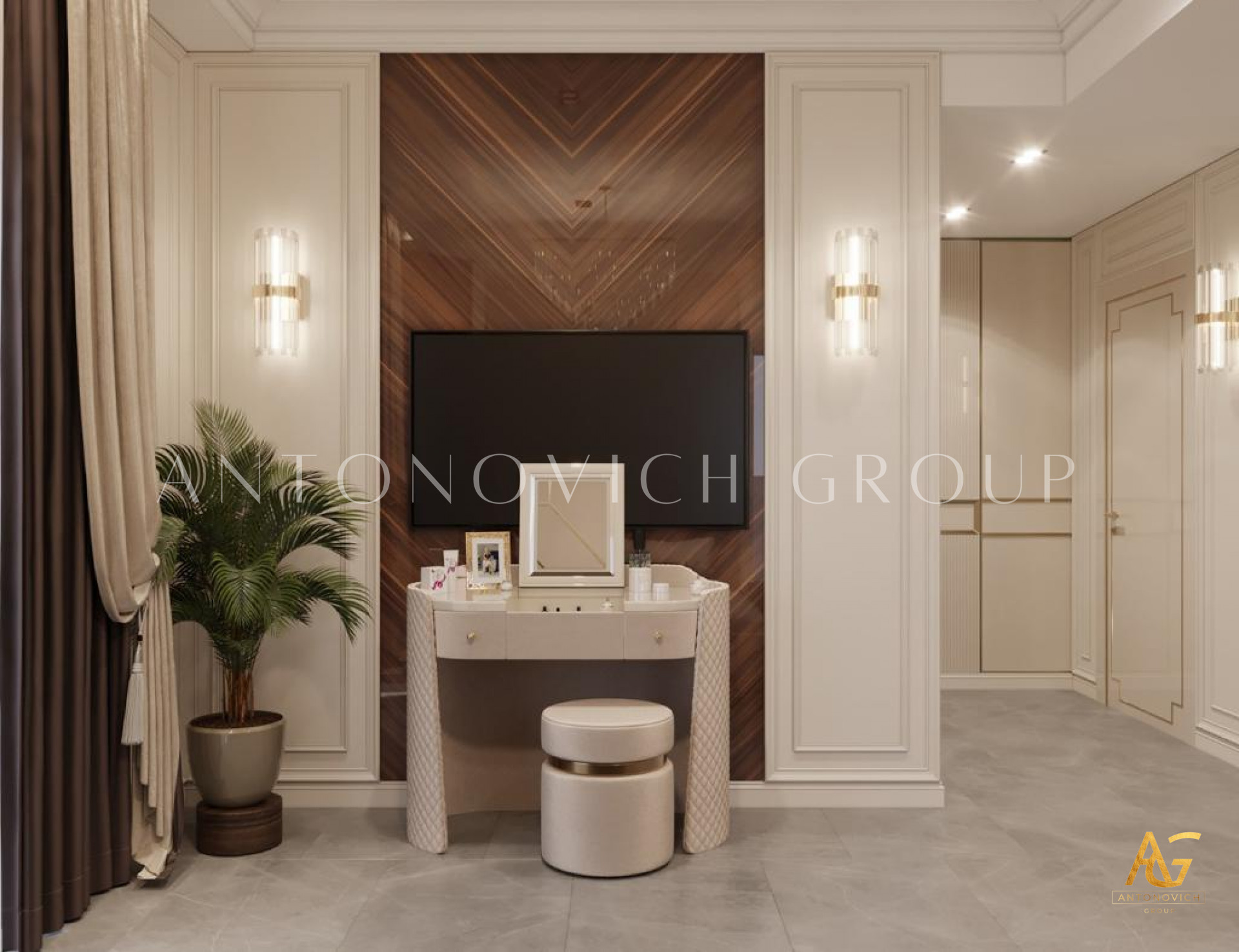 Antonovich Group is proud to present one of its wonderful creations for interior design fit-out and full furniture production in this luxury villa unit in DAMAC HILLS-TOWNHOUSE. Because we offer complete interior design and fit-out implementations, Antonovich Group always guarantees to achieve the most remarkable interior mood that perfectly suits each clients personality and lifestyle. Antonovich Group is one of the best interior design firms that are very well-known for providing customized design in every furniture design and decoration that the team is executing for every luxury-designed project.