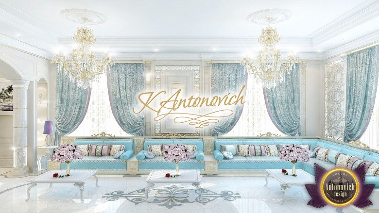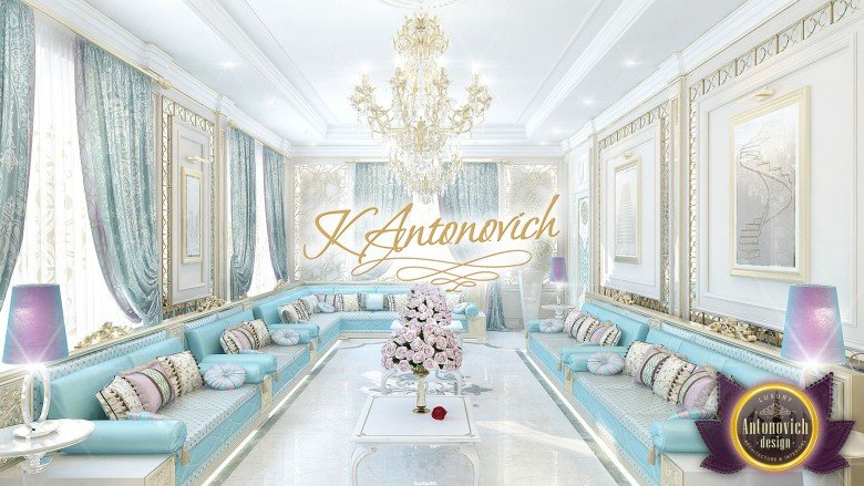 The perfect decor design Majlis modern style, this is a great combination of luxurious furniture and elegant decor elements. The interior of a dream, pure emotions and oriental motifs. You will receive the most unforgettable emotions contemplating the luxury items. The light and delicate interior design Majlis Modern Style will bring a sense of joy and positive thoughts. Every detail of the decor are thought out to trifles. Arabic Majlis is a masterpiece of creativity. The interiors of Katrina Antonovich delight and inspire surely. The Decor Design Majlis Modern Style in UAE is filled with ease and tenderness. The sophisticated and elegant design, comfort and coziness, everything is done for real connoisseurs. The soft blue upholstery pleases the eye, not only the owners, but also the guests of the house, creates a good mood and gives the relaxation and positive emotions. Here you can enjoy a quite holiday and comfort. Arabic Majlis in UAE is magnificent in its unique way. The light marble floor covering, soft silk in the decorated windows, the magic crystal glares gentle exclusive decor elements. All of this is an integral and expressive image. The architectural and design company Luxury Antonovich Design creates always the projects that are filled with a deep sense of history and reflect the history of the interior. The Decor Design Majlis Modern Style has a special attraction. The perfect organization of space, highlighted by gold inserts on the wall forms a surprisingly light and festive image. The design studio Luxury Antonovich Design will turn into reality the most original and unique ideas.
