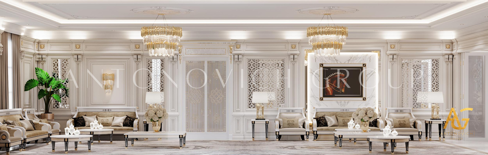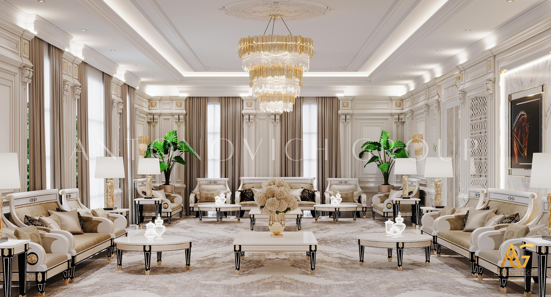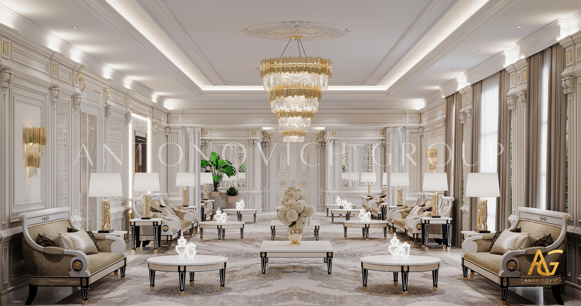 Eastern culture is full of wonderful traditions that embody the features of this country and its people. The interior design of the villa in Al Ain combines design motifs that come from Europe and the beautiful oriental flavor. Interior Designers Al Ain Luxury Antonovich Design studio offered a combination of oriental and classical style for beautiful villa interior .Part of the villa project was majlis design. This room, which in the eastern interior of the special mission. And majlis design Al Ain perfectly reflects the main tradition, which is the warmth and hospitality. On the ground floor is allocated a separate room for the Majlis interior . To comfortably accommodate the maximum number of guests interior designers have proposed to place around the perimeter of the room comfortable sofas. We offer our valued customers a luxurious furniture from the best Italian factories. And this furniture is made according to the sketches of our designers and then delivered directly to the site. Soft sofas are upholstered in luxurious silk with printed motifs that shimmer with pearly luster. The shining mood of purity and freshness in the Majlis interior sets bright range of colors. The floors are decorated with white Italian marble with carved patterns. The decor of the walls is filled with boiserie mirror panels in the eastern frames. This creates a wonderful feeling of home warmth. Part of the walls is complemented with gilded stucco . Arched windows decorated with luxurious curtains made from delicate silk. majlis design Al Ain has become an ideal continuation of the overall design concept of the villa.