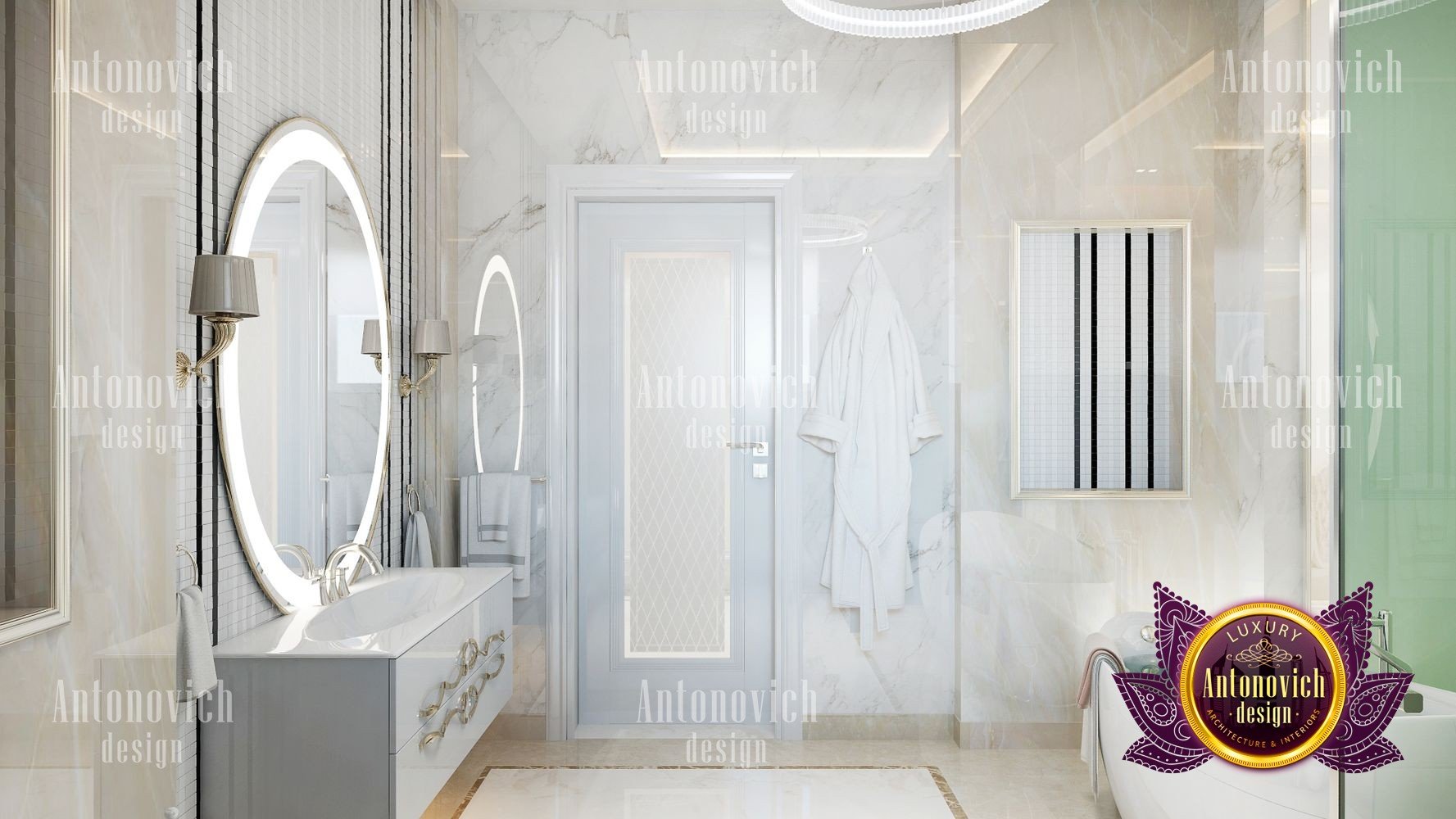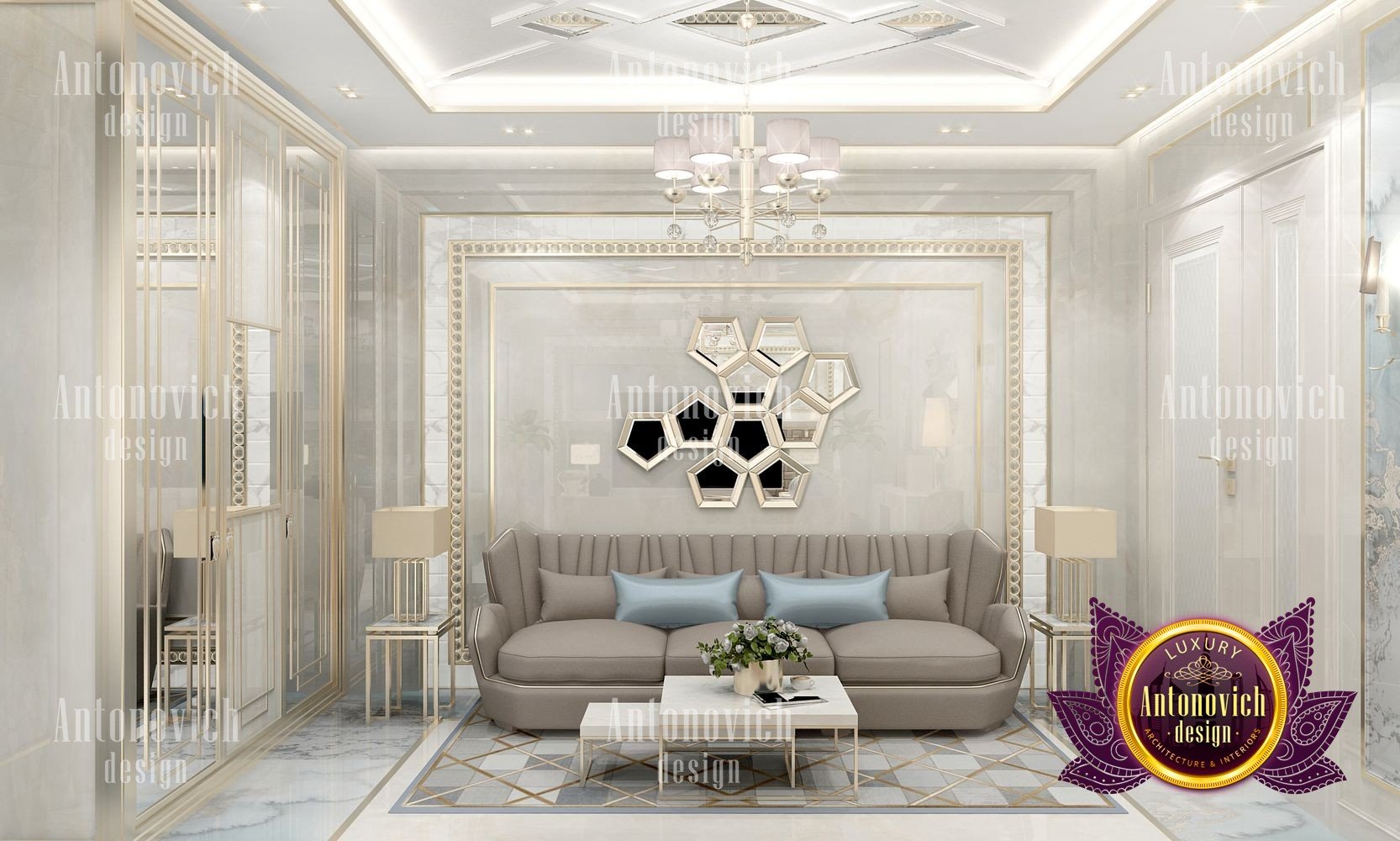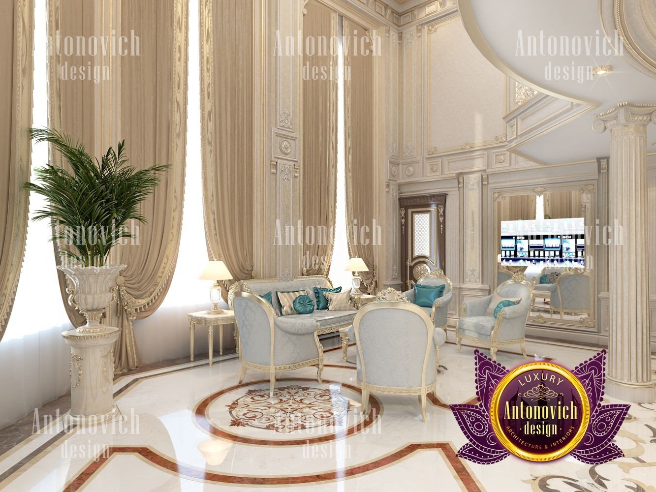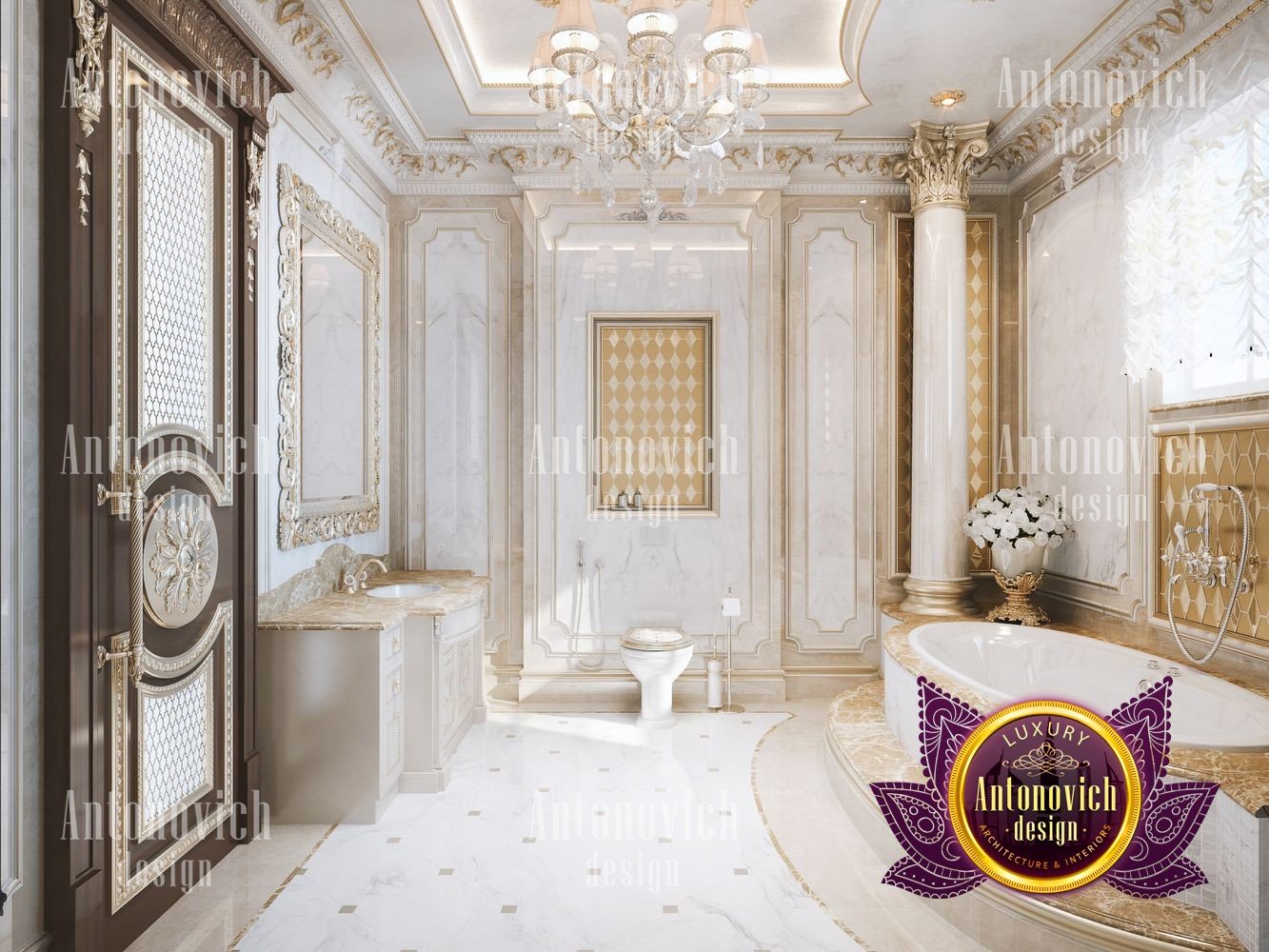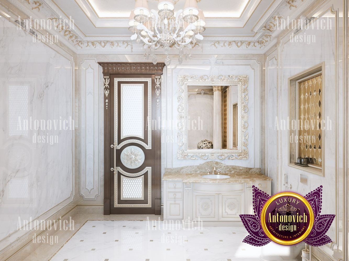 The most exciting part of the dream house construction is having the chance to create it yourselves. It gives you the opportunity to lay out all the details that you want and discuss it with the architects and designers. fulfilling your requests and turning your dreams to reality. An interesting idea was the use of three lamps in Arabic style, which decorated the kitchen area. This is a fine and subtle hint at the cultural traditions of the country, which the owner of the apartment esteems and respects. The lush and rich decor of the walls adds a luxury mood to the interior of the studio apartment. The top of the wall is a broad molding with curls of stucco decoration, which are covered with gilding. Below, there is a strip of the snow-white wave of stucco, which plays a wonderful chiaroscuro under the light of a chandelier. Paneling framed by decorative plaster in pearly white tones, and inside they are filled with beautiful silk wallpaper with large ornaments. The floor design continues the magnificent and elegant mood of the interior. Beautiful Italian marble is decorated with authors carved patterns of marble several kinds.