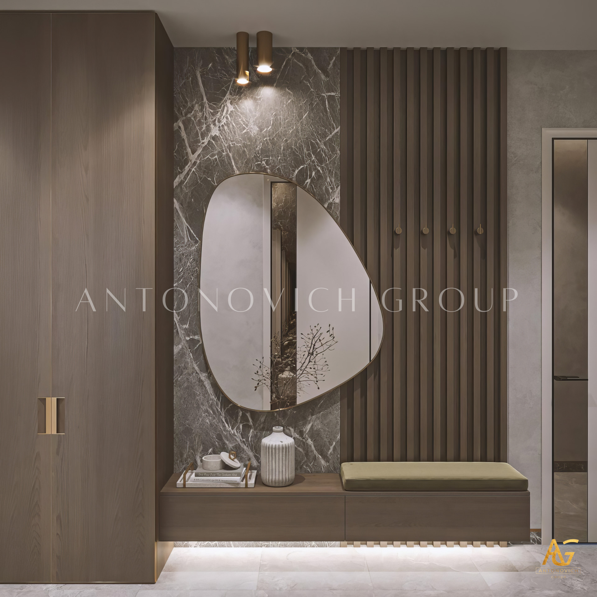 The touch of green adds a deeper variant of color and creates depth for the accent shade. The grey undertone of the green sets the right mood making it look sophisticated and more elegant. The bold marble background with streaks of black also adds a visual play that highlights the unique architectural feature of the room. These elements match each other which makes it a complementary color and design element. This can be an accent color or maybe just a secondary color. The matching gold accents add a luxurious feel completing the dining look with such an elegant accent. Other dark elements are the plants that add an earthy element to the entire dining. Putting up plants makes the air fresher as it is a natural air humidifier.
