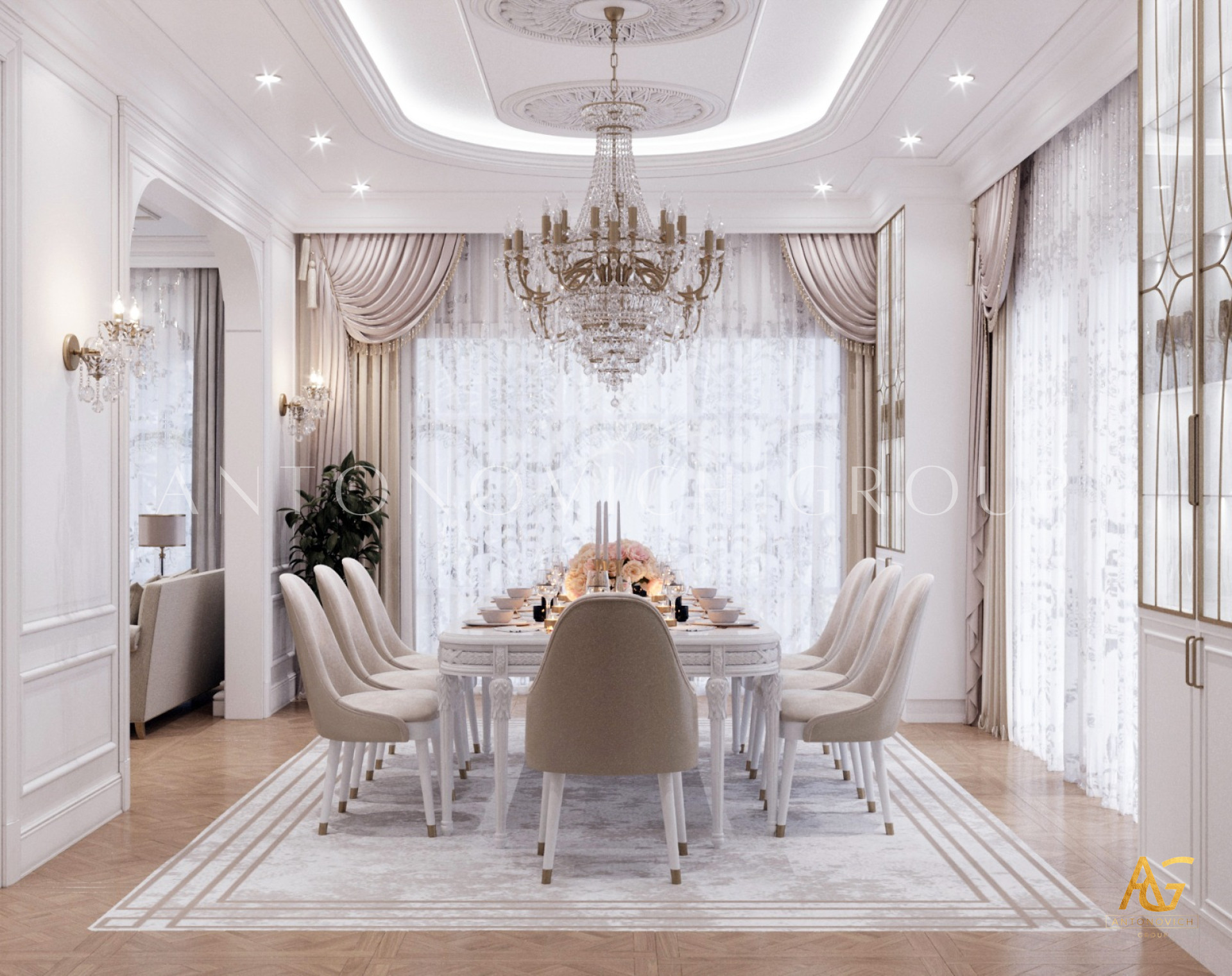 Aside from a wide range of dining room furniture and decoration designs Antonovich Group also provides complete services from A to Z in developing every dining room interior design. Because the dining room is one of the most important areas of any residential project, it is in high demand for interior design arrangements. Dining rooms are also one of the most expansive areas of any residential interior design because they were designed to provide a functional and spacious interior layout for dining rooms, which are commonly used for small gatherings.