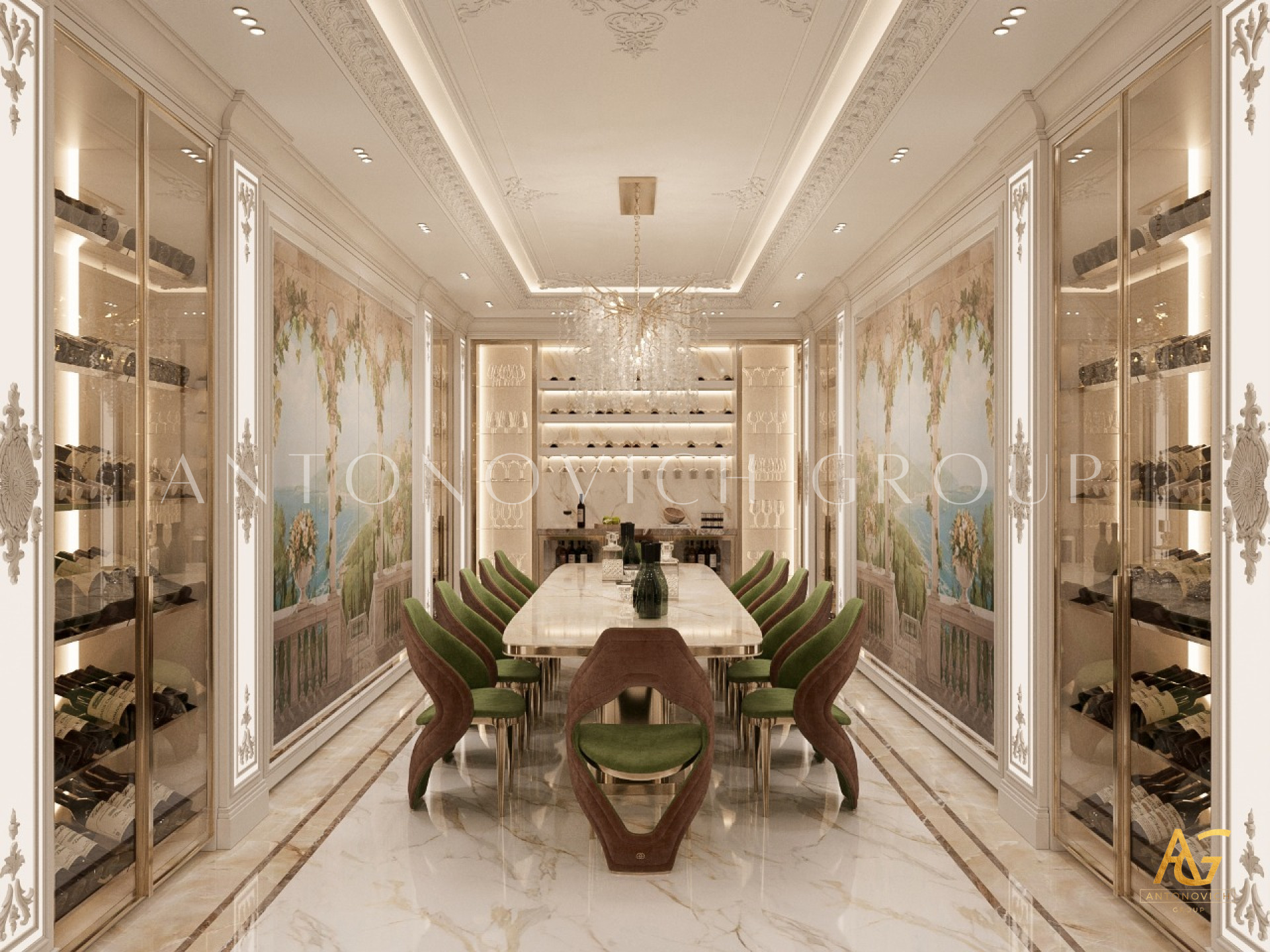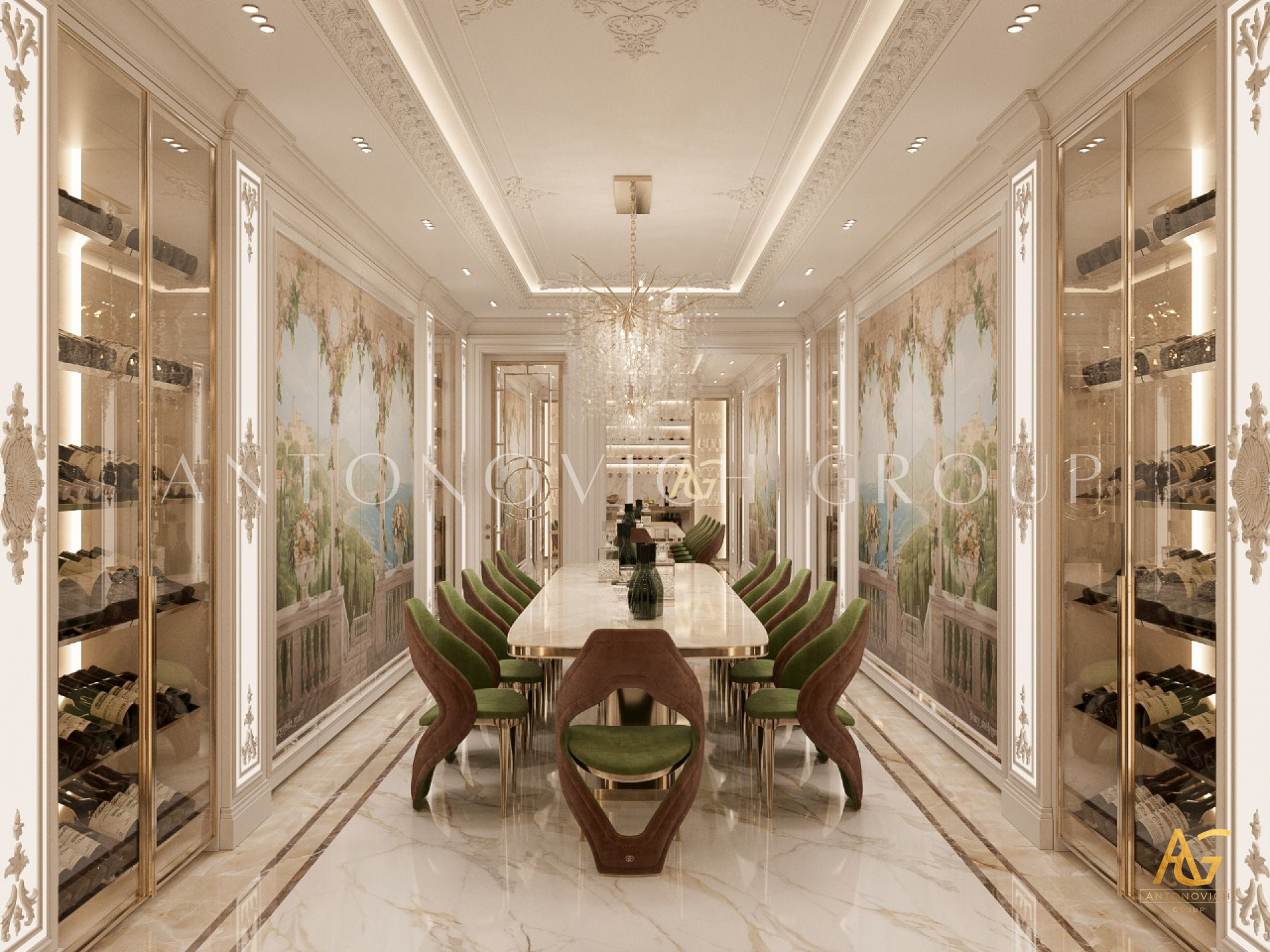 When it comes to luxury dining room interior design, Dubai stands out as a hub for opulence and sophistication. Antonovich Group, renowned for its bespoke interior design services, has become a trusted name in creating exceptional dining spaces that blend aesthetics with functionality. One of the most sought-after features in luxury dining room design in the UAE is the incorporation of a wine cellar or wine room, offering an exquisite touch to an already luxurious setting.