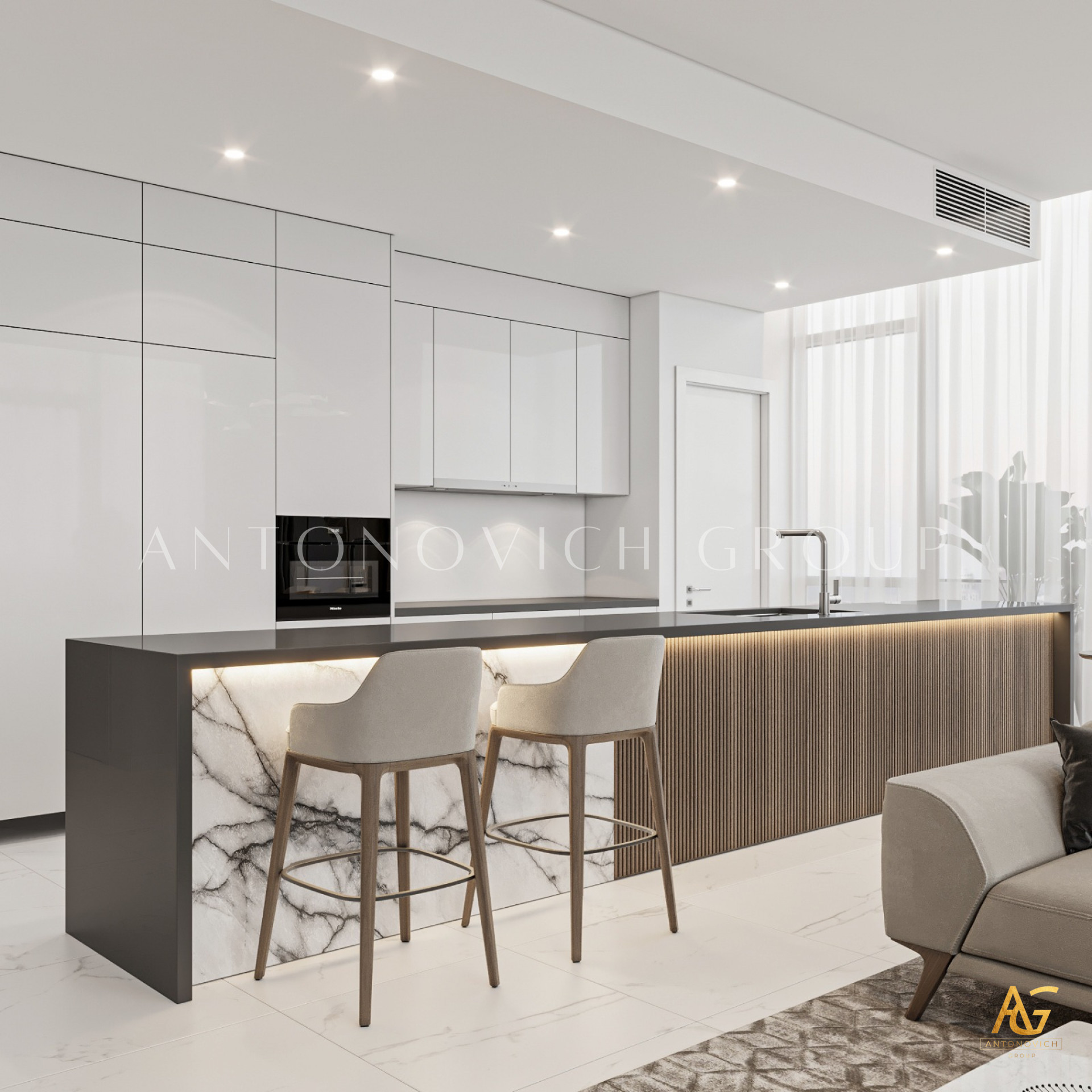 District One Residences is equipped with the latest smart home technology, allowing residents to control various functions such as lighting, temperature, and security systems, from their mobile devices. Antonovich Group has seamlessly integrated the technology into the interiors, ensuring that the design is not compromised by the addition of these advanced features.