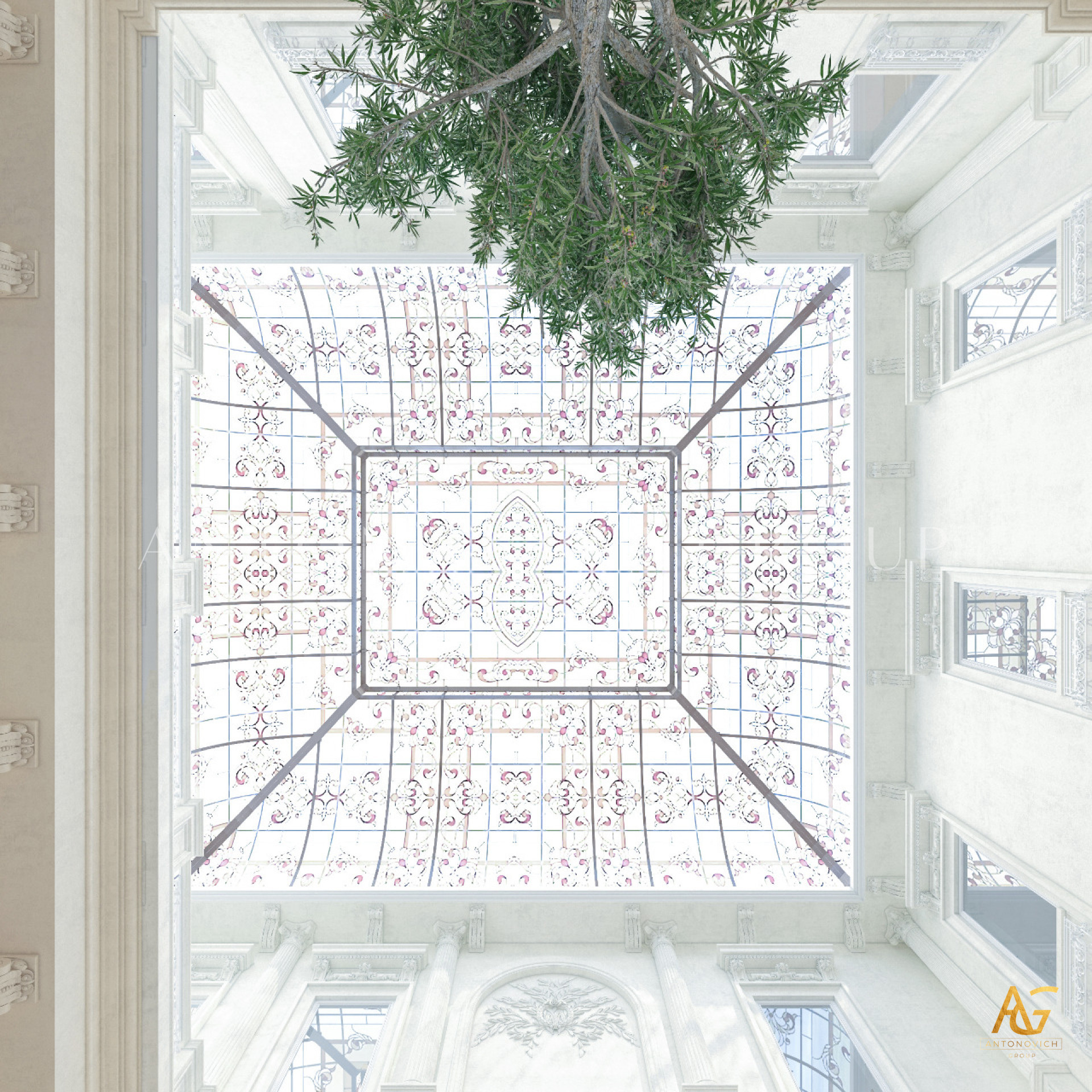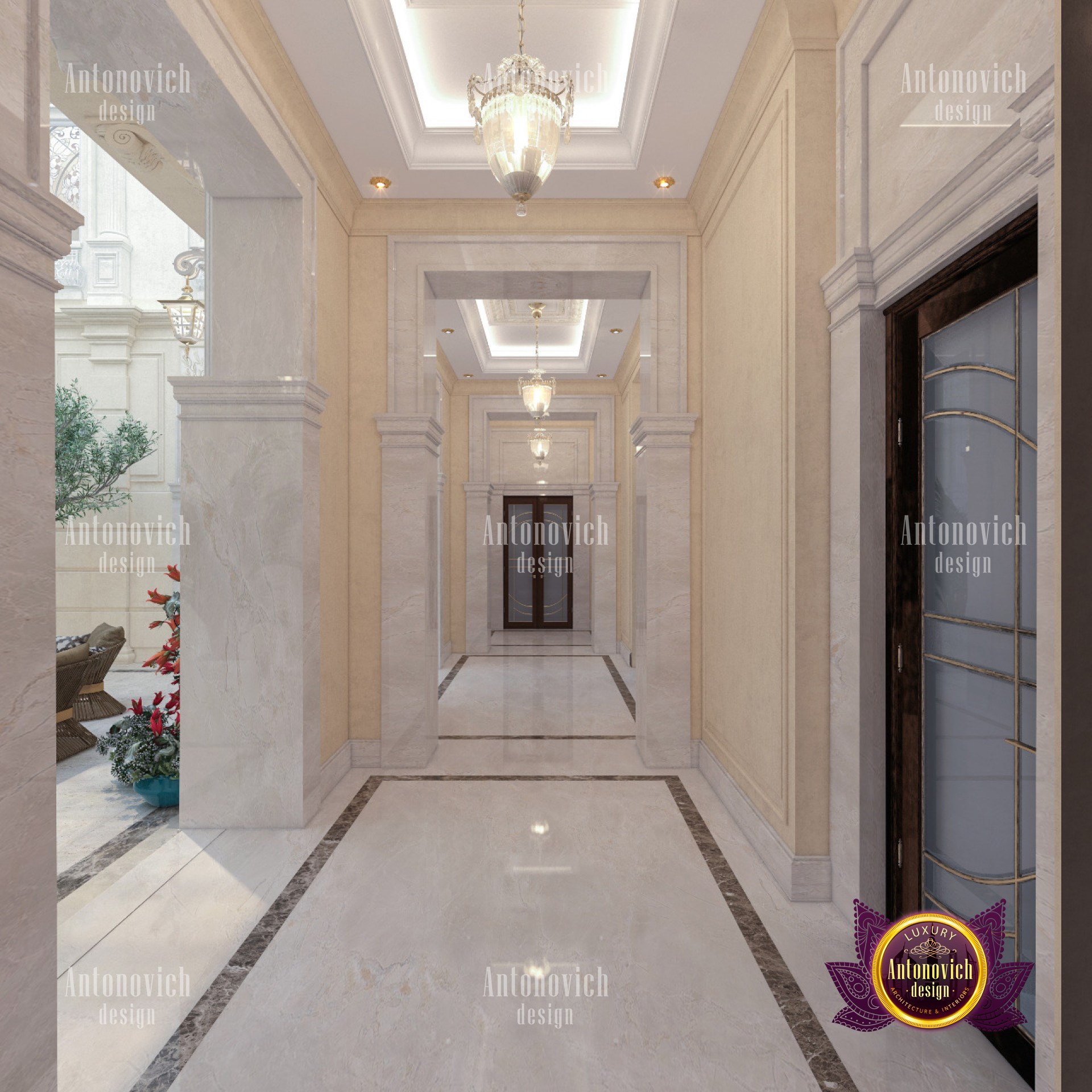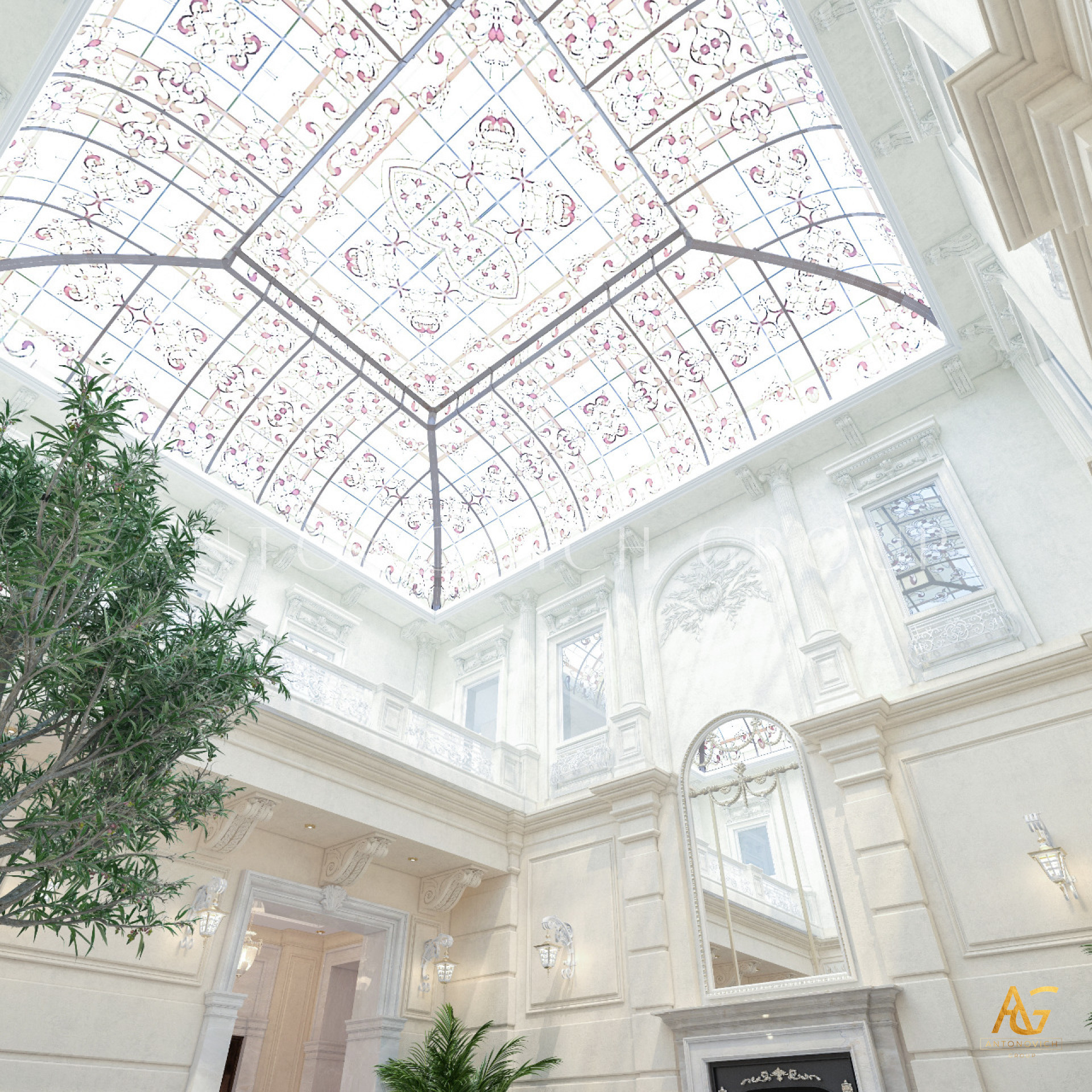 Luxury Antonovich Design has managed to perform an open lay-out interior on its entrance area although the receiving space. This is where an artists dome roof is made up of art glass with a combination of fiber and stained glass. With a great splash of royalty design, indeed the dome roof gives a fascinating mood in the interior. Performing a dome roof design is not a typical task which everybody can do, It takes the most professional and experienced team that has the full ability to perform the finest setup. With a combination of art, creativity, and craftsmanship, Dome roof is being performed. And this skill is one of the special features which the Luxury Antonovich Design team is offering. Most of the Royal Villas in Dubai as well as Arabian style home requires a different style of dome-roof design. And this quadratic-shaped dome roof is distinctively made especially for this villa in Dubai Hills. There is also no excuse to arrange a natural plant and tree for indoors as there is access for the natural sunlight from the dome roof as it is made up of glass.