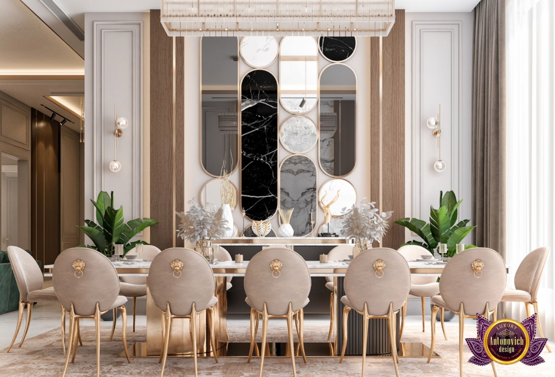 The most unusual and exceptional surroundings abound in this opulent mansion interior design in Dubai Hills. From the architecture to the interior design details, there was a lot of attention to detail that you would never see in a standard Dubai Villa Floor Plans. Luxury Antonovich Design has followed the most meticulous interior design development process, resulting in cutting-edge designs crafted by the best interior designers.