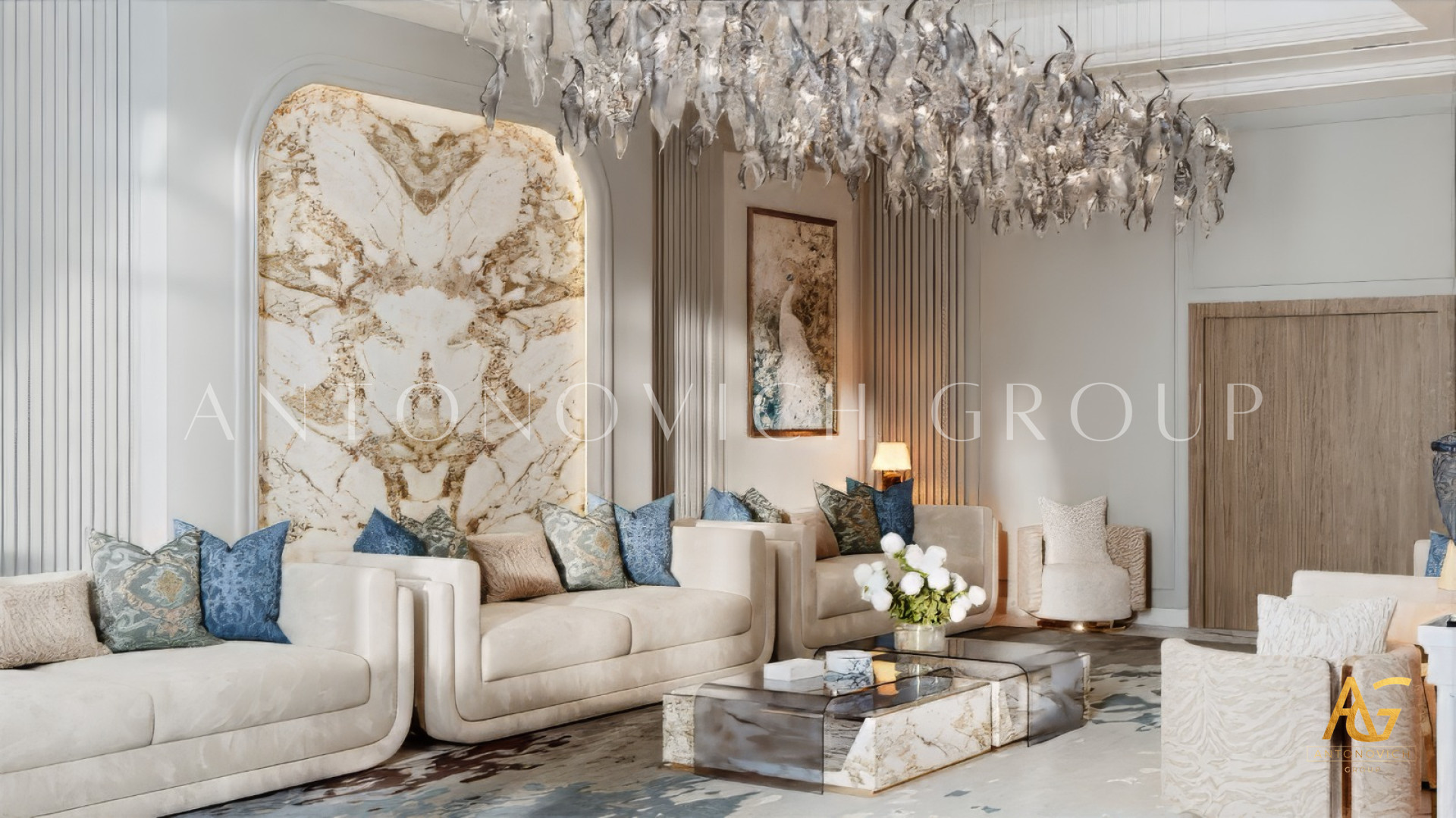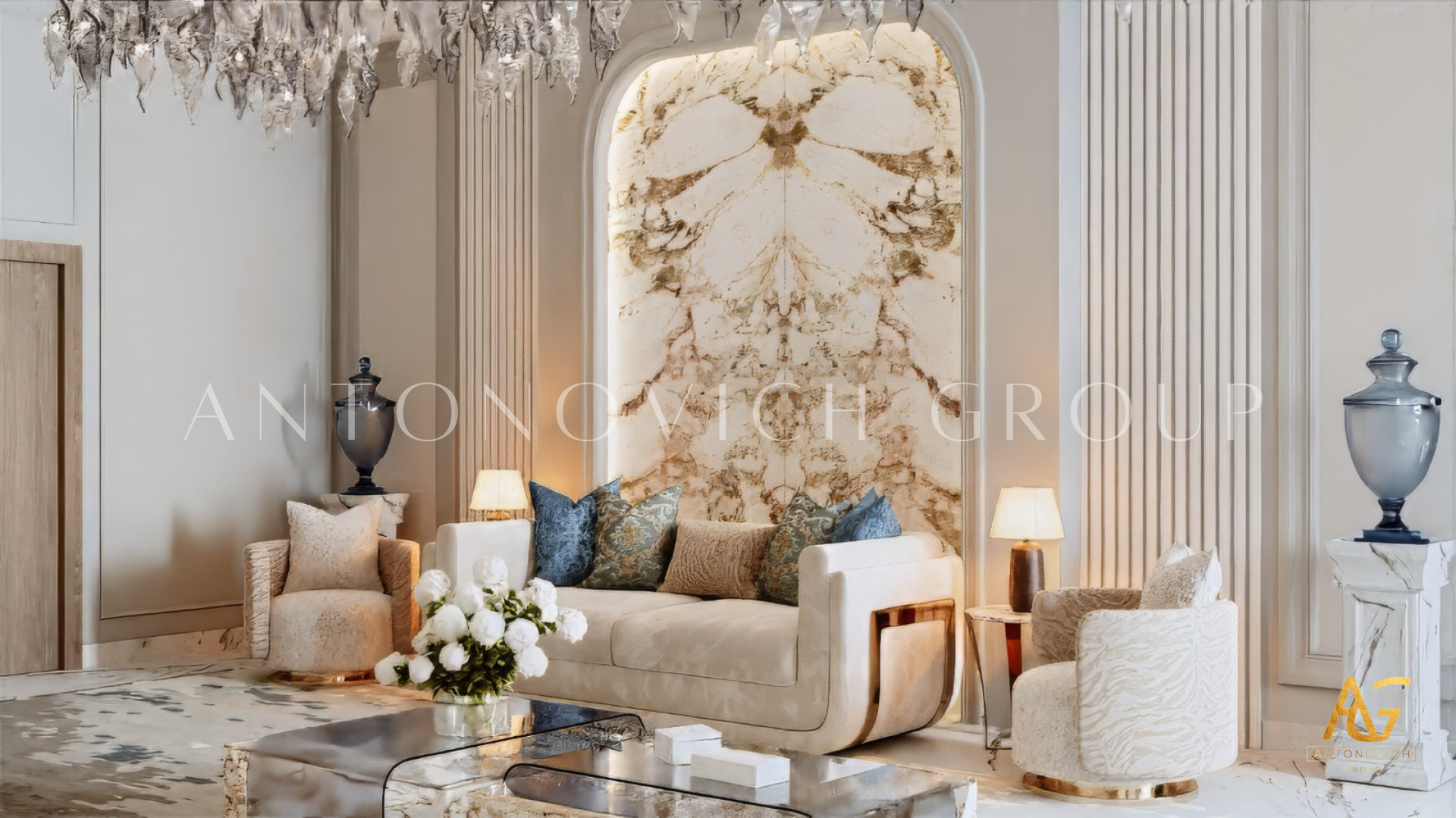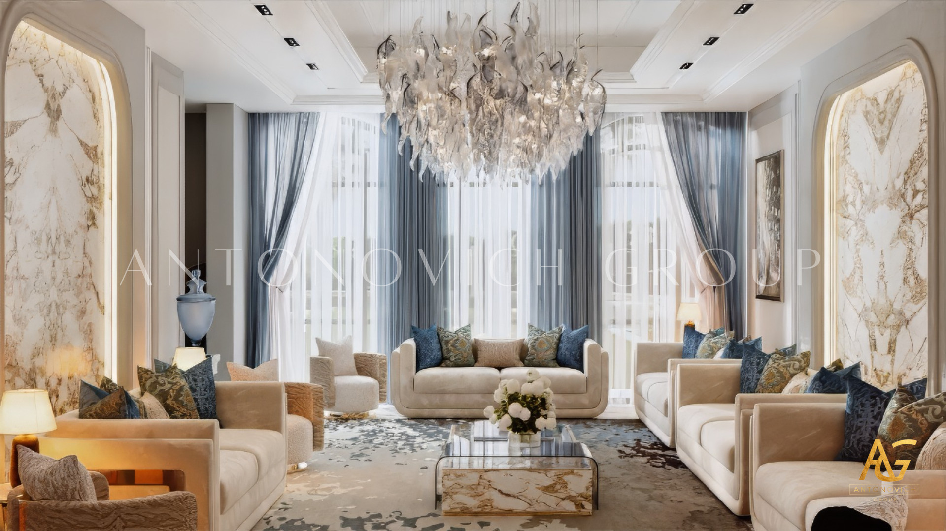 Antonovich Group, recognized globally for its luxury design expertise, proudly delivers exceptional Majlis interiors customized to every client’s lifestyle, cultural needs, and aesthetic preference. Our firm combines architectural creativity, high-end craftsmanship, and turnkey execution to shape Majlis spaces that reflect sophistication and timeless beauty.