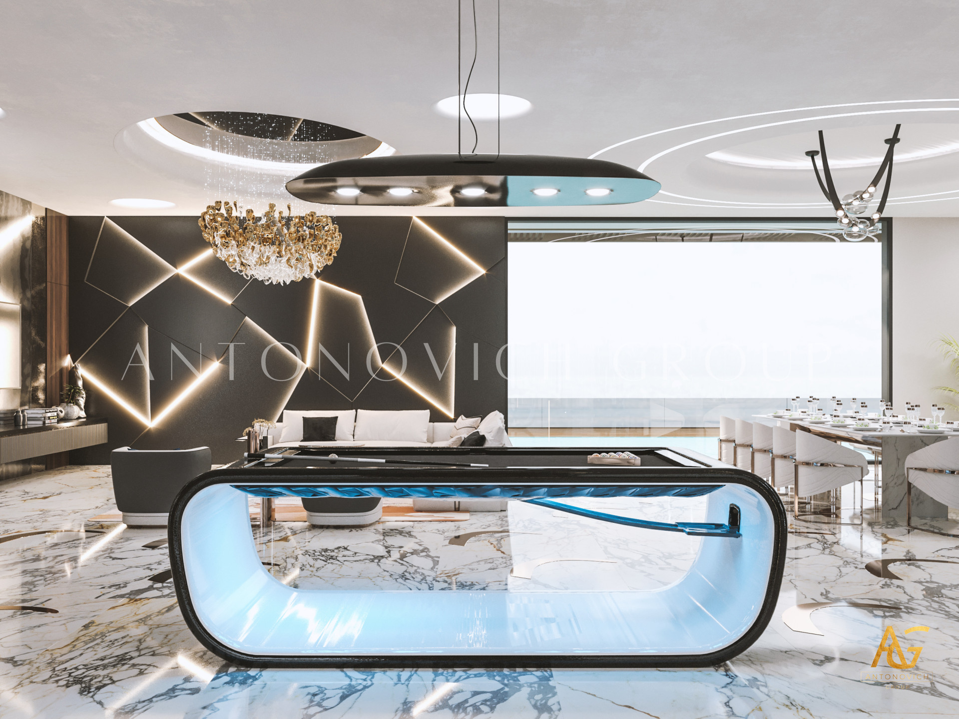 Antonovich Group has transcended the boundaries of luxury living with the creation of the underwater master bedroom and bathroom in Dubai Island. A testament to their commitment to innovation, elegance, and unparalleled craftsmanship in interior designing Dubai, this underwater masterpiece is a symbol of contemporary luxury living at its finest. Immerse yourself in a world where architectural brilliance meets the serenity of the sea with Antonovich Group's luxury interior design services.