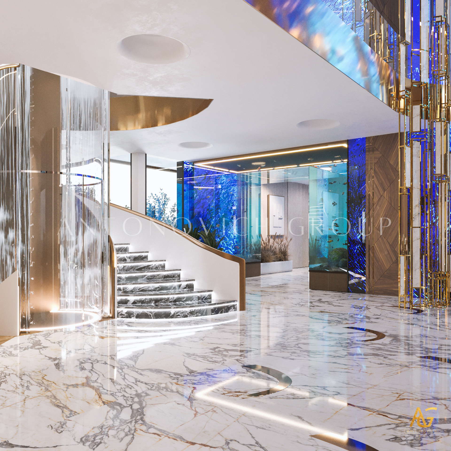 Antonovich Group's expertise in Dubai interior design shines through in the engineering brilliance that supports the underwater structure. Robust materials and innovative design ensure a secure and awe-inspiring living space.