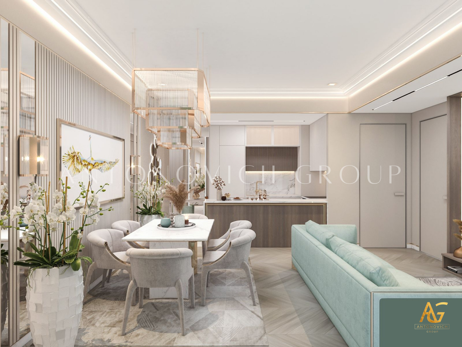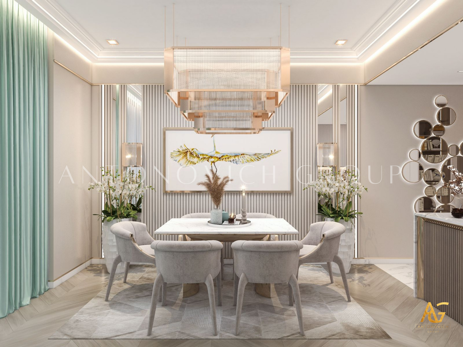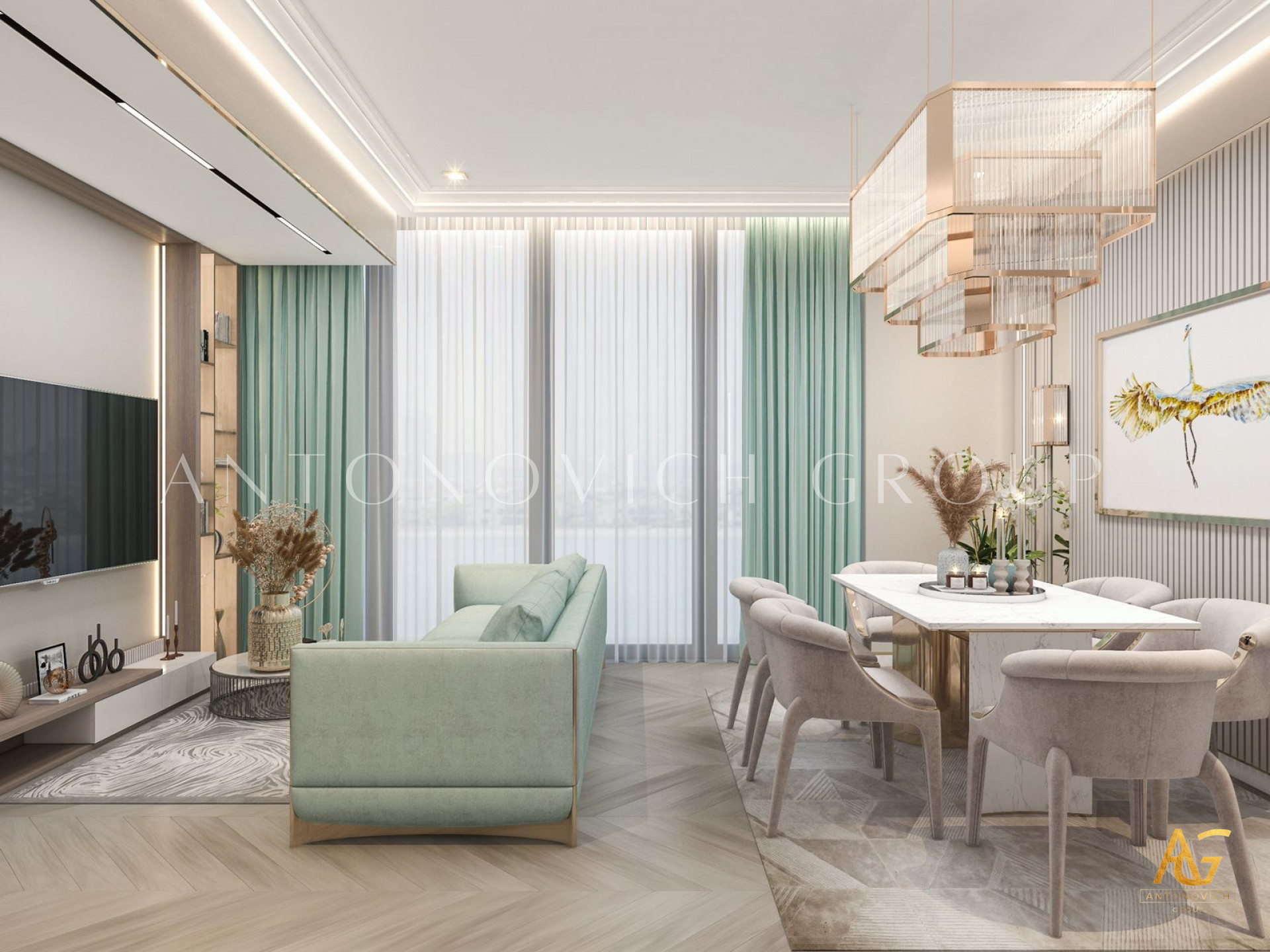 Antonovich Group offers absolute design developments for modern apartments for fit-out and furniture services, including fit-out, manufacture, and bespoke furniture design. We emphasize elegance and glitz in every penthouse interior and outdoor space. The furnishings in your penthouse apartment should be carefully picked to fit the décor, atmosphere, and floor patterns. In such a setting, anything off-the-shelf could be too much. Divide your sofas and other living room furniture for a more formal look. A casual ambiance is created by little alcoves and nooks with a range of sitting options. Polished luxury furniture with glamorius seats gives your space a refined look. The furniture selection gives the apartment a unique and appealing look.