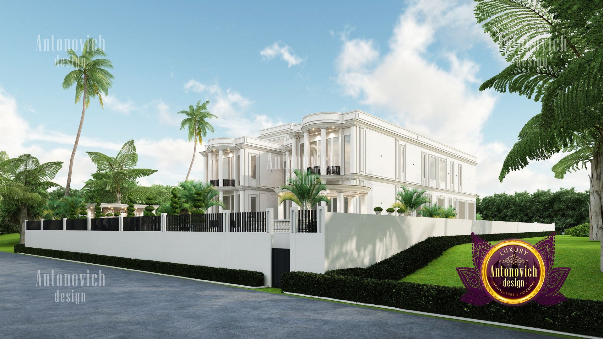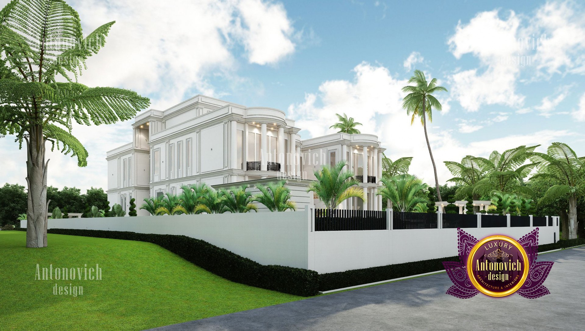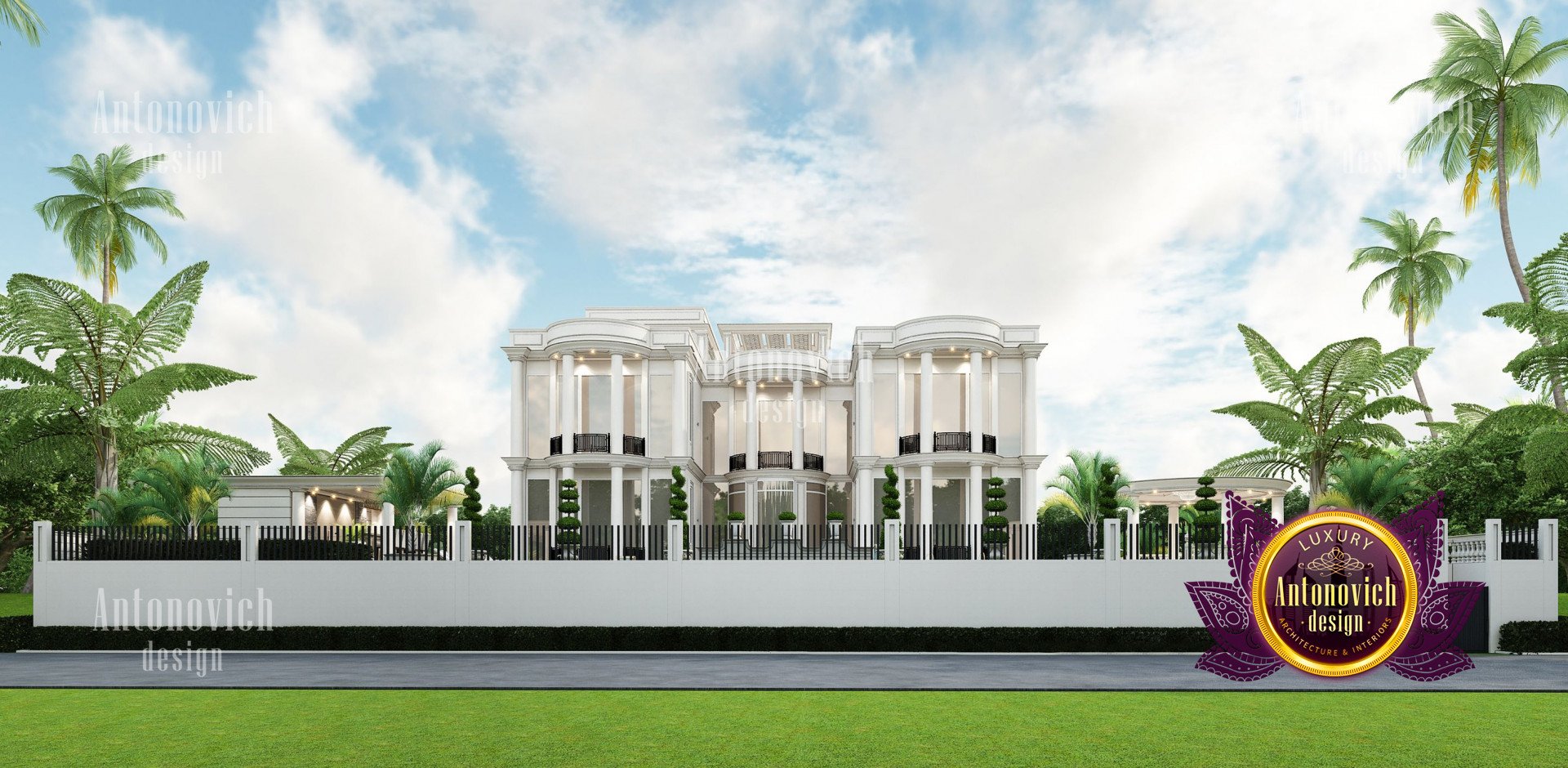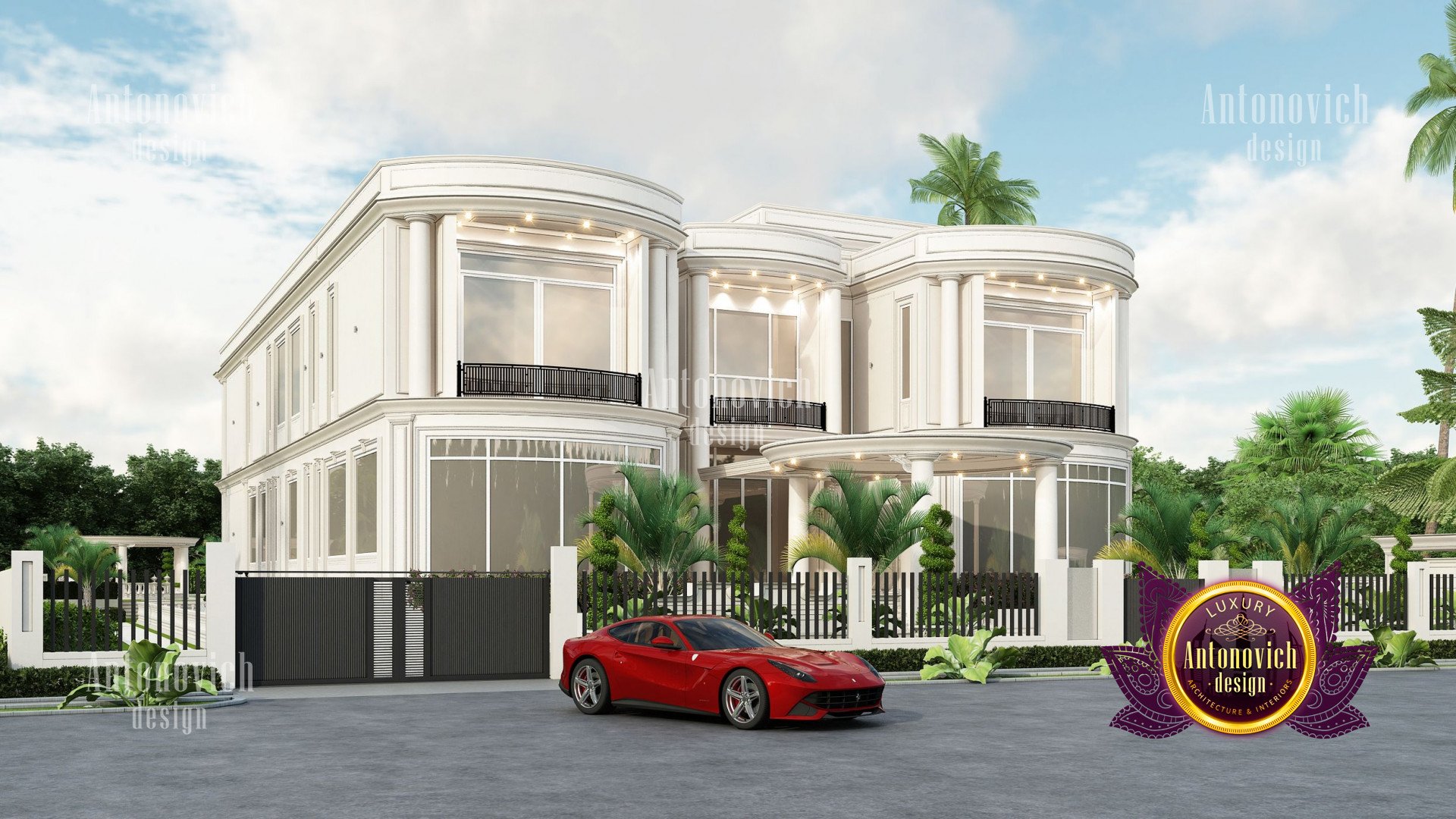 Refinement makes it possible to integrate the architectural design of the building in any landscape or building of any kind. The original Luxury Antonovich Design country house was modeled on eclectic style country villas. Important features of the house and surrounding design are borrowed from the concept of classics. In addition, individual touches of the house are the expression of the aesthetics and values of ancient eras. All this interweaving of styles allowed to achieve a very interesting result.