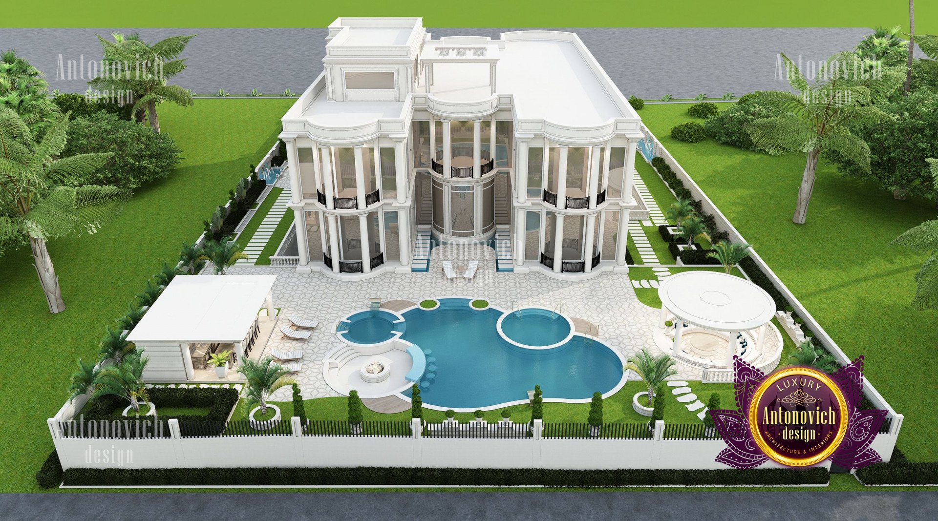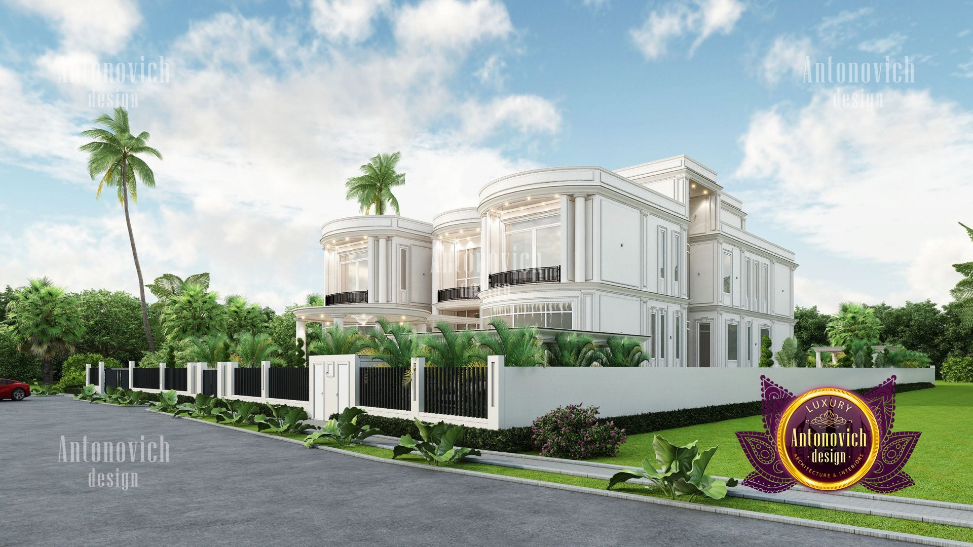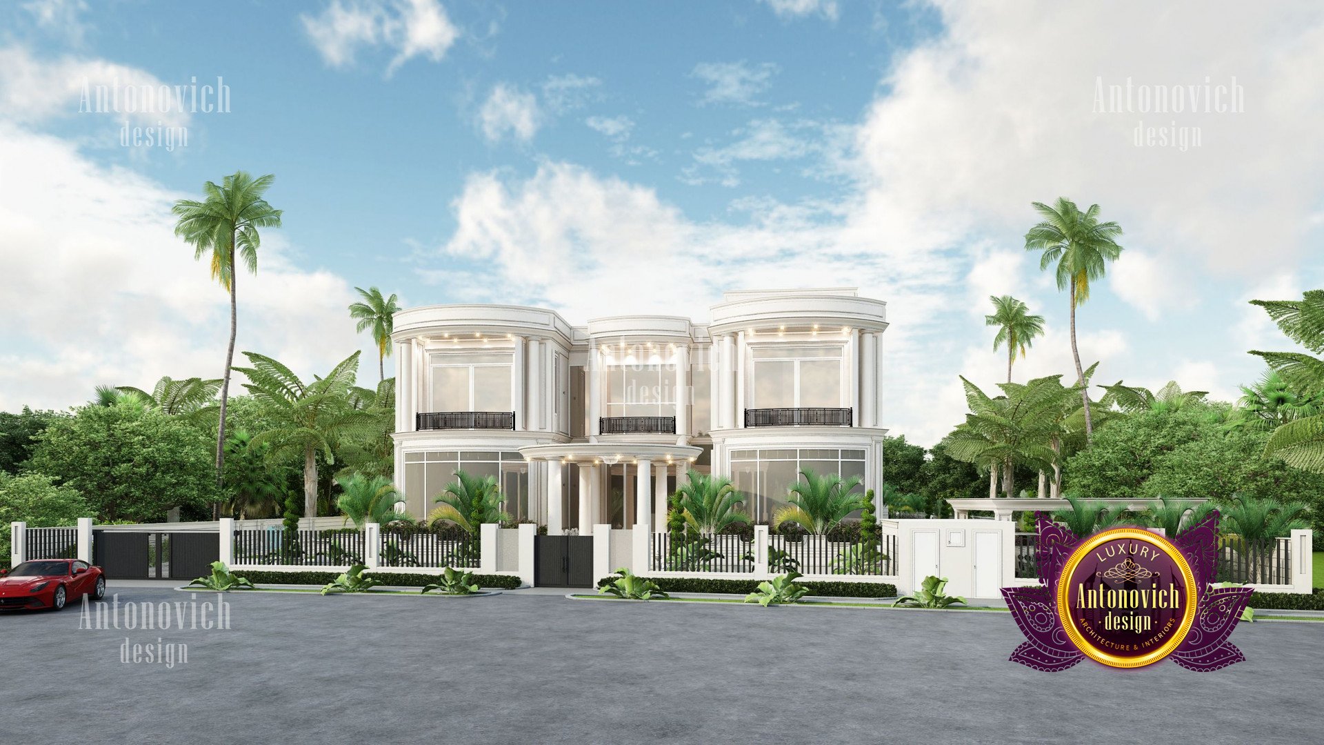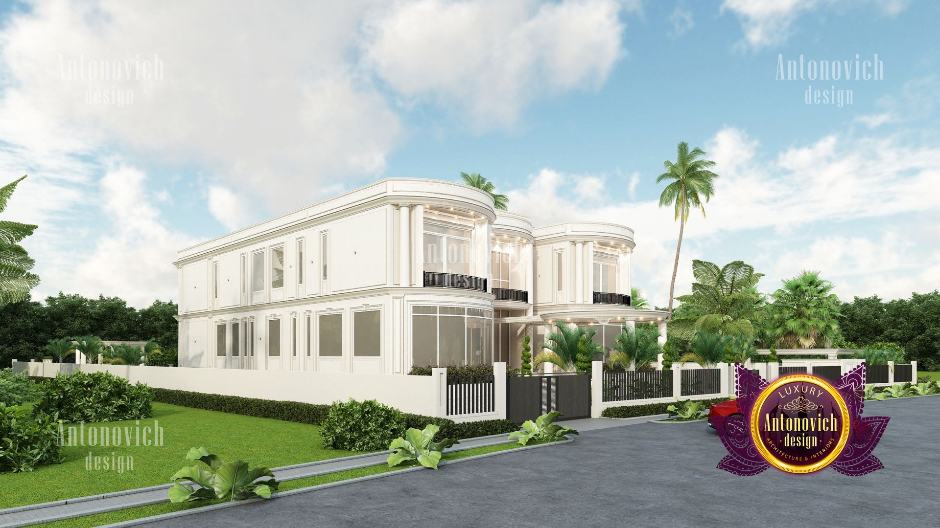 Refinement makes it possible to integrate the architectural design of the building in any landscape or building of any kind. The original Luxury Antonovich Design country house was modeled on eclectic style country villas. Important features of the house and surrounding design are borrowed from the concept of classics. In addition, individual touches of the house are the expression of the aesthetics and values of ancient eras. All this interweaving of styles allowed to achieve a very interesting result.