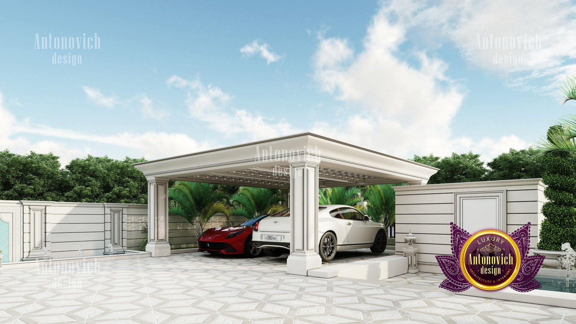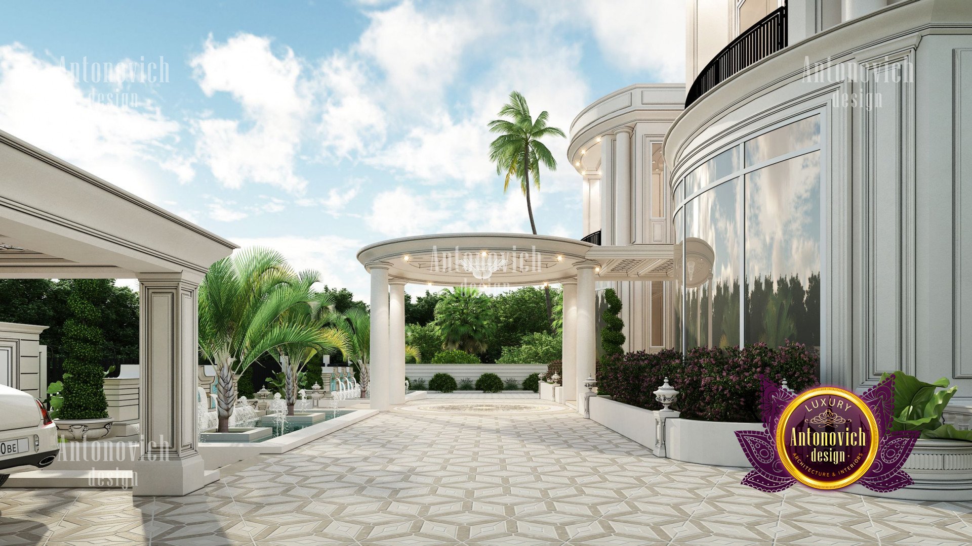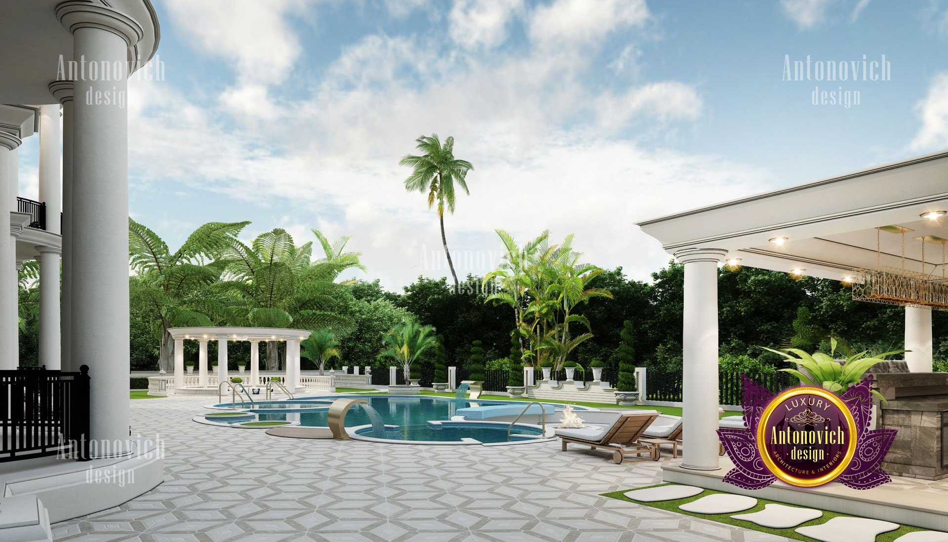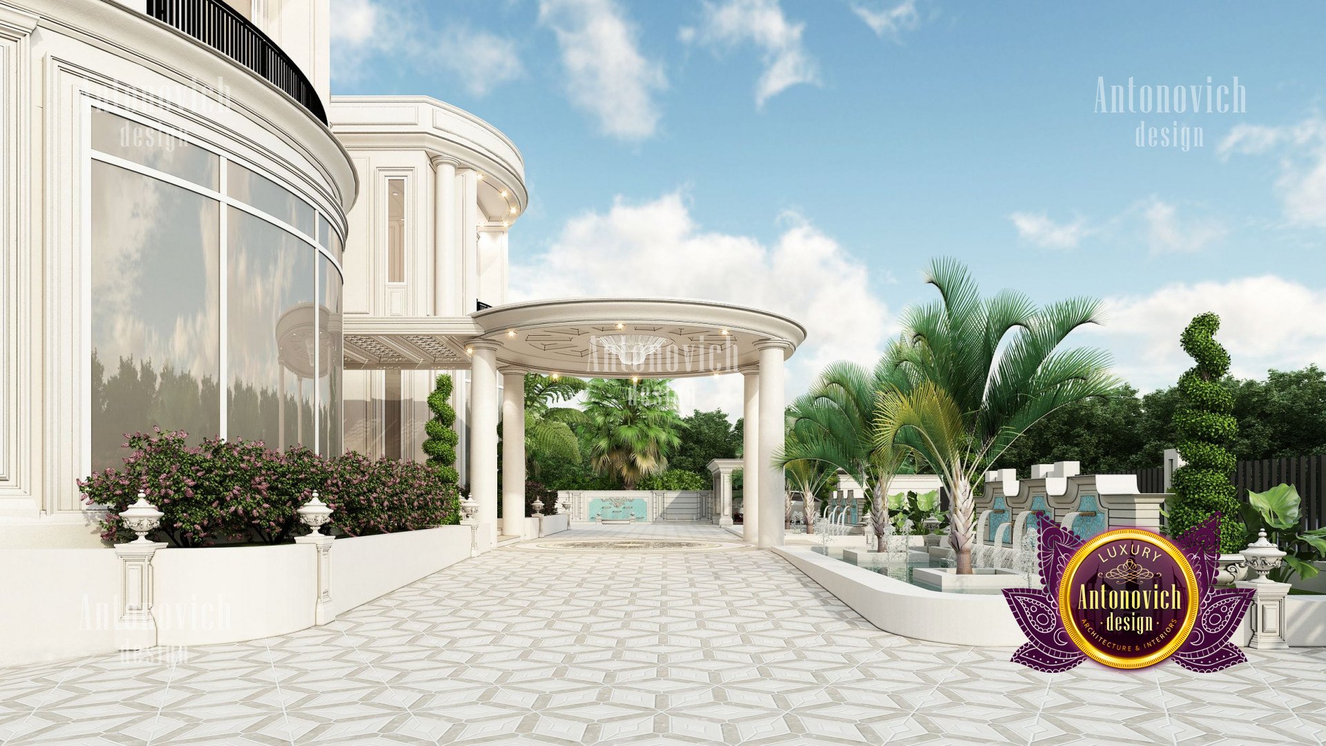 Refinement makes it possible to integrate the architectural design of the building in any landscape or building of any kind. The original Luxury Antonovich Design country house was modeled on eclectic style country villas. Important features of the house and surrounding design are borrowed from the concept of classics. In addition, individual touches of the house are the expression of the aesthetics and values of ancient eras. All this interweaving of styles allowed to achieve a very interesting result.