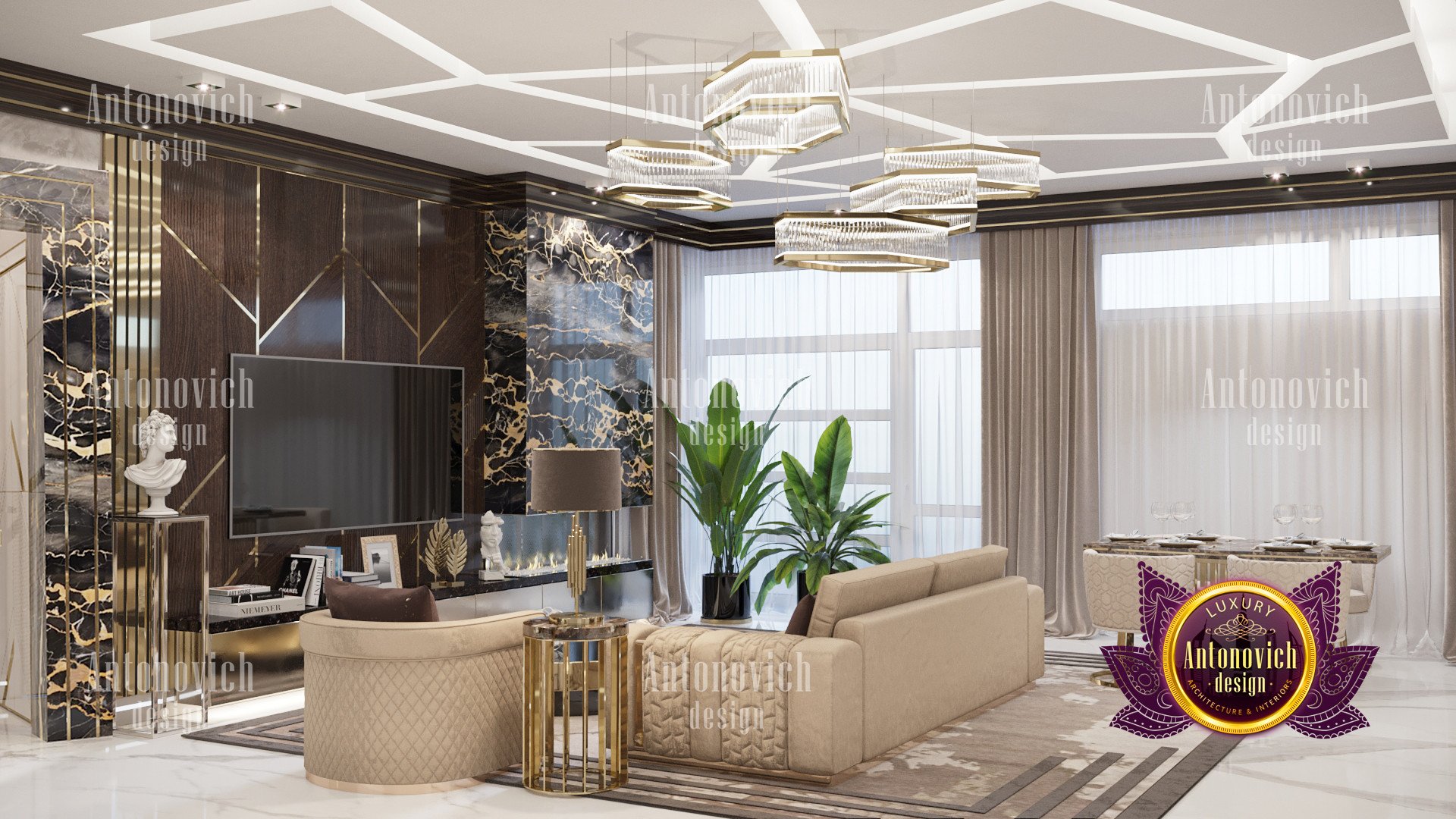 Gold is always a top choice for the richest. It’s a staple in every home that is made for luxury. In this elegant apartment interior design, black and gold were used to exhibit superb and magnificent interior design. The black wall accent along with the black ceiling lines add sophistication and luxury to the overall look and feel of the apartment. The black marble television rack also gives the room a luxurious feel. Its beauty and details were also partnered with luxury patterns to complete the look.MASTERPIECE IN EVERY DETAIL