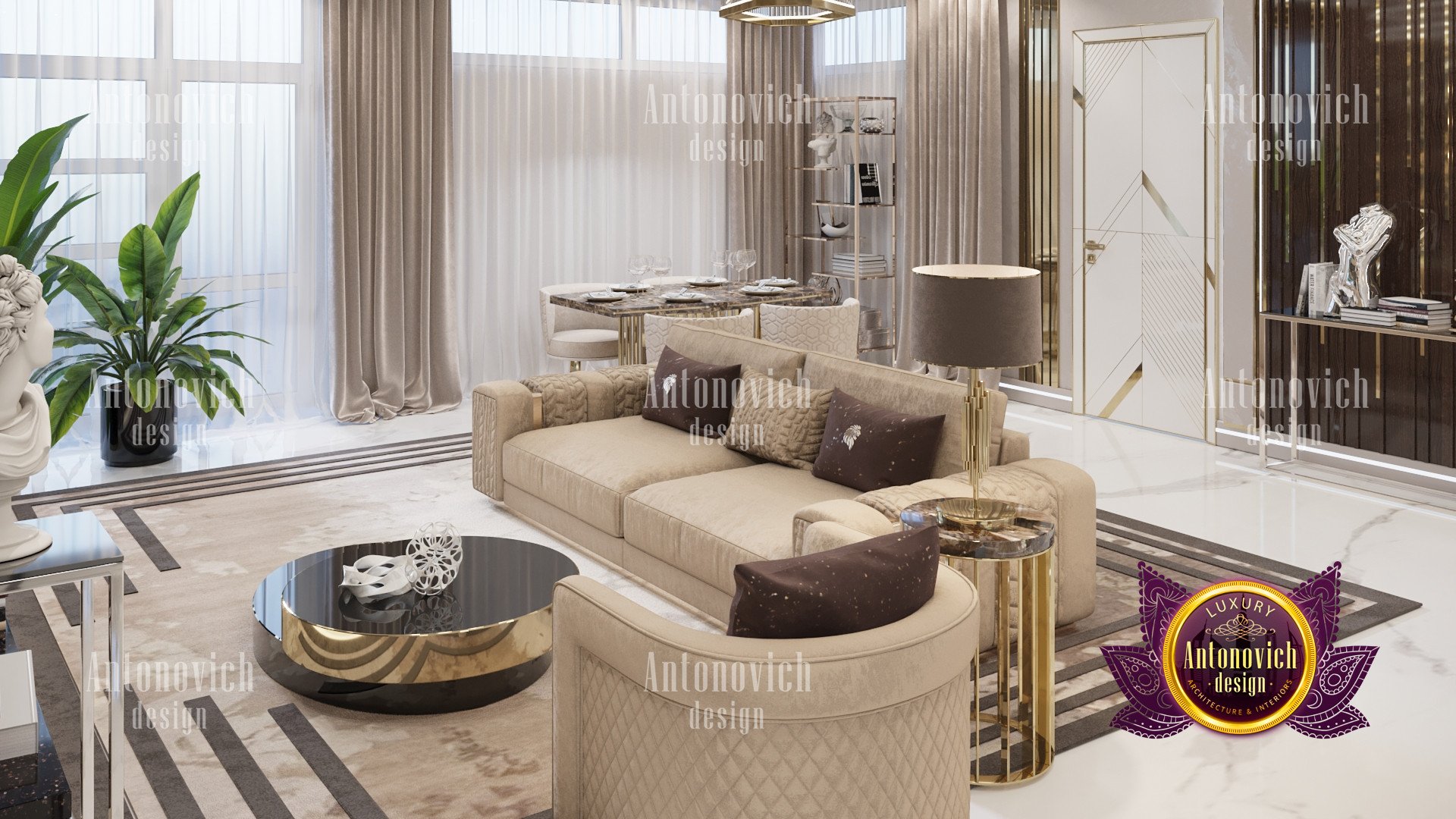 The furniture that was put is luxury as well. The beautiful color theme adds to the sophistication of black and gold. In the walk-in closet, beautiful colors were also utilized. The beautiful gold gives the most luxurious feel with its amazing lighting. Yellow also adds more detail to the bedroom. With its superb style and magnificence, this elegant apartment interior design is definitely the perfect interior for you. The beautiful decor with its luxury furniture design is made by the most amazing interior designers in Dubai.