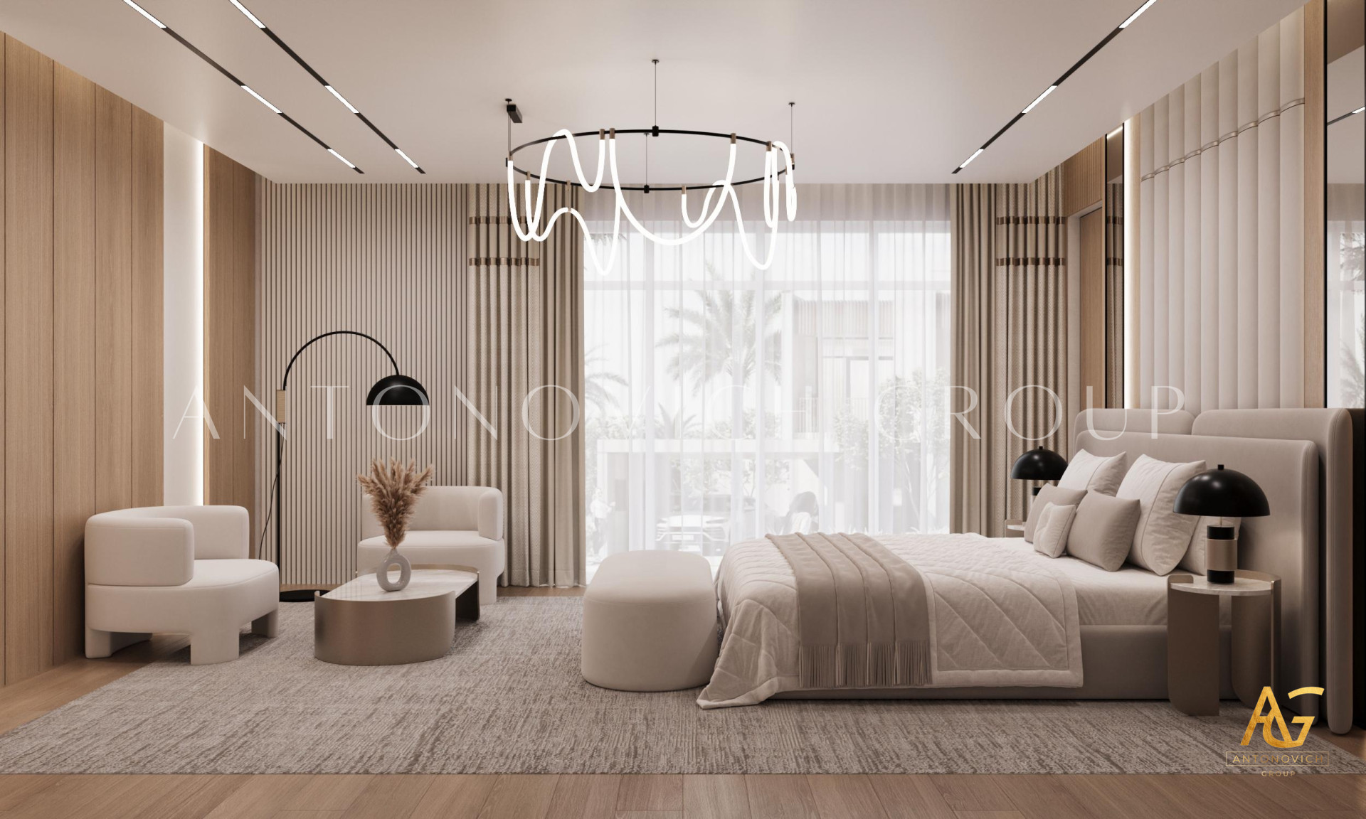When approaching bedroom design, Antonovich Group emphasizes clean lines and purposeful minimalism. Our projects showcase how modern aesthetics can transform sleeping spaces into peaceful sanctuaries. From villa interior fitout in Ajman to prestigious Dubai residences, our signature style incorporates neutral color palettes accented with carefully chosen textures and materials.