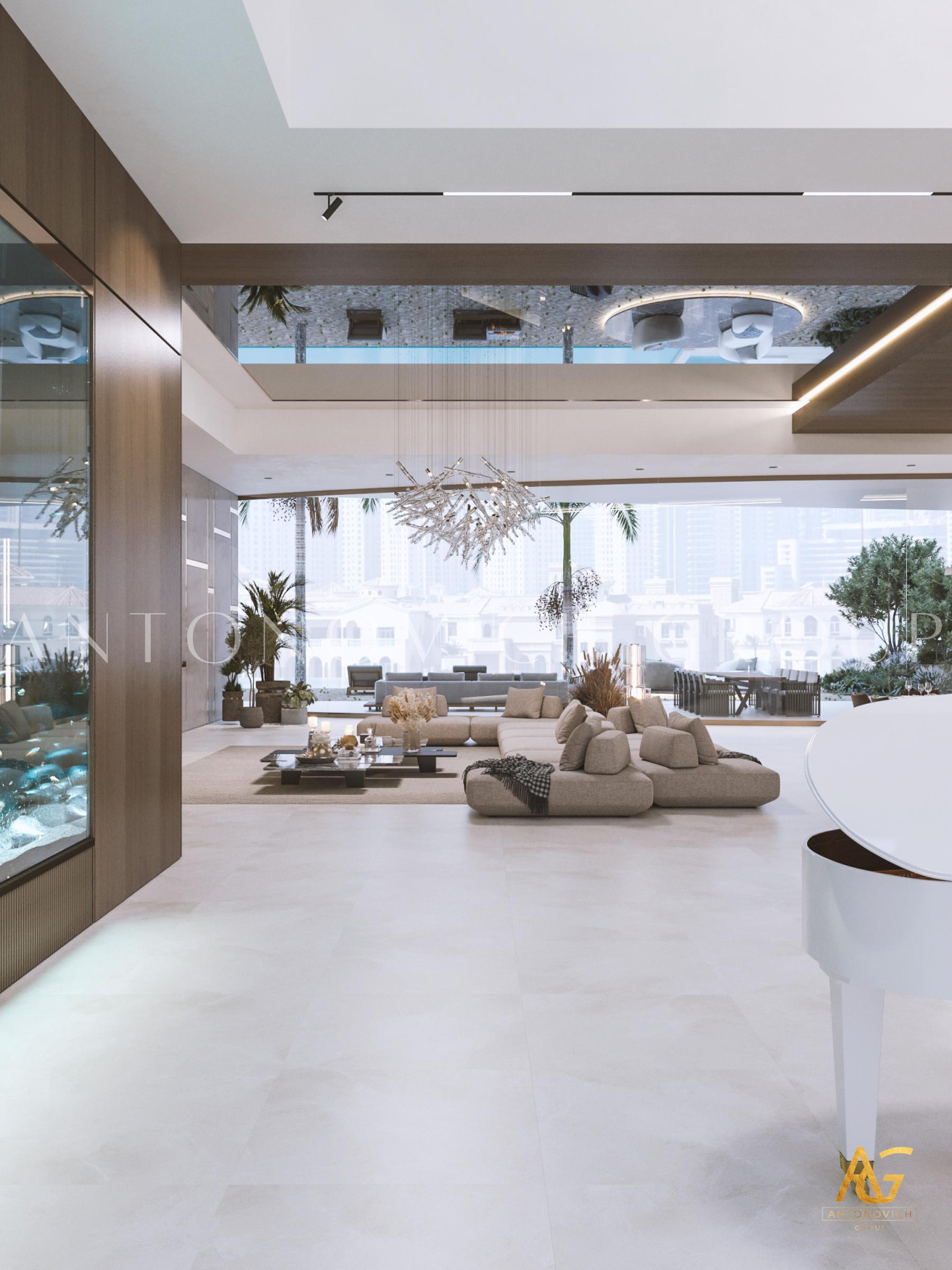 Lighting plays a crucial role in our designs. Layered lighting schemes, from architectural highlights to ambient mood lighting, transform spaces throughout the day. Floor-to-ceiling windows maximize natural light while framing spectacular views, creating a seamless connection between interior luxury and exterior landscapes.