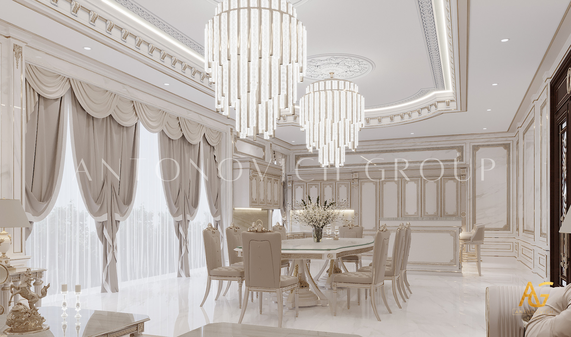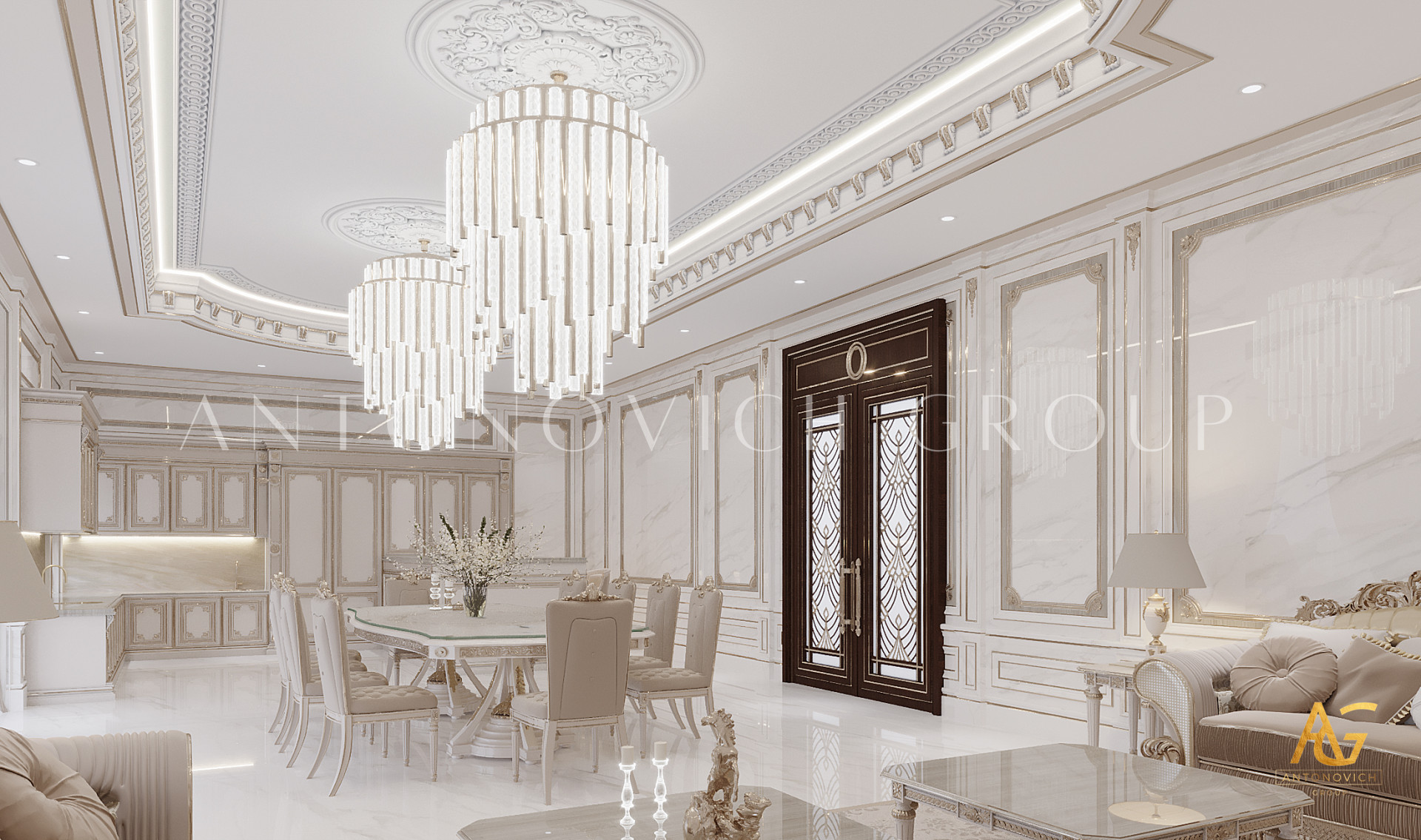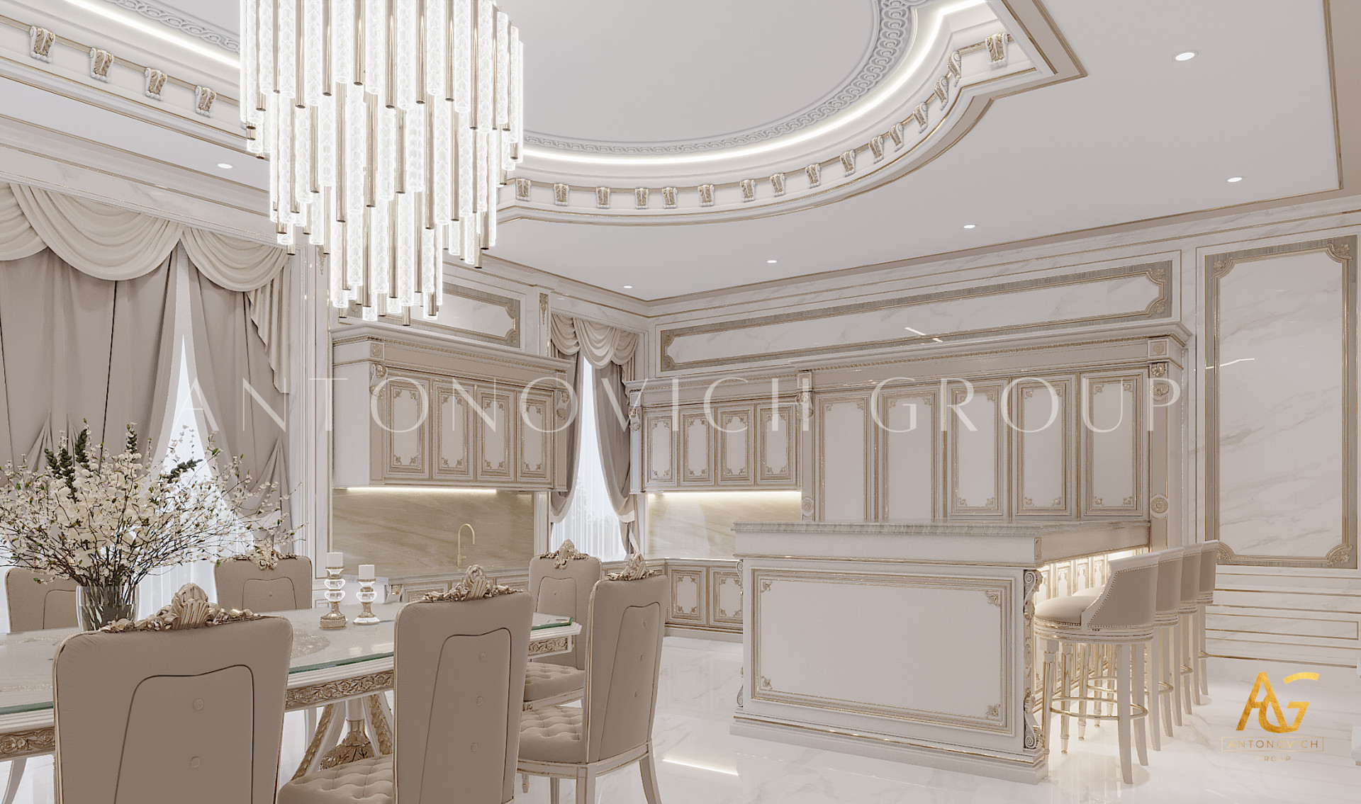 If youre looking for a sophisticated and luxurious kitchen interior design that isnt boring or cluttered, this new design from Luxury Antonovich Design will tick all of your boxes! This wonderful luxury kitchen interior design in gold with magnificent lighting will make your cooking more productive because it includes all the features you need to do your task with more agility and confidence. Every part of the luxury kitchen is designed with class and elegance in mind and all the details that the company has put in are extremely luxurious and rich in its quality.