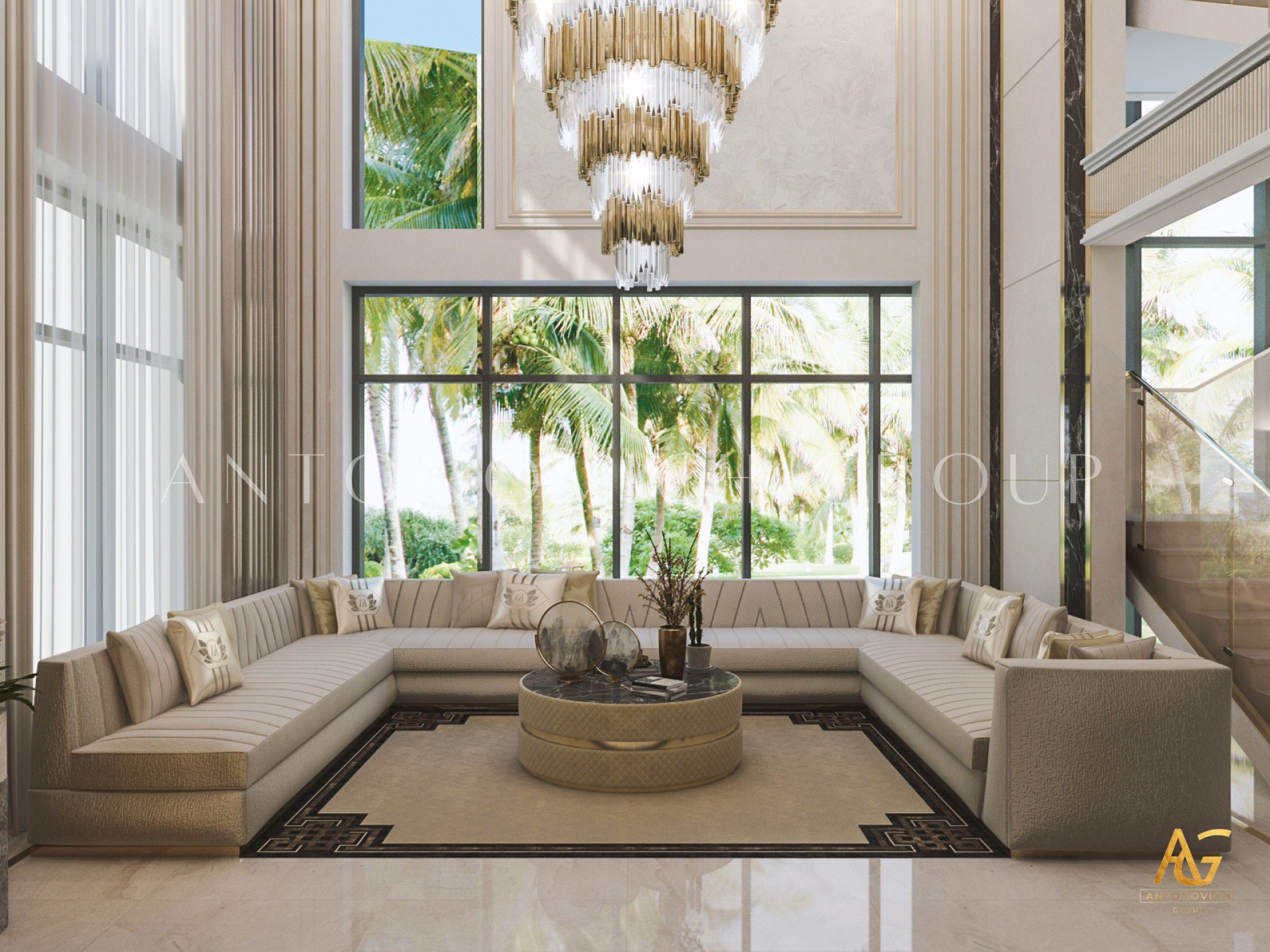 STYLING LIVING ROOM INTERIOR DESIGN FOR A LUXURY VILLA BY LUXURY ANTONOVICH DESIGN