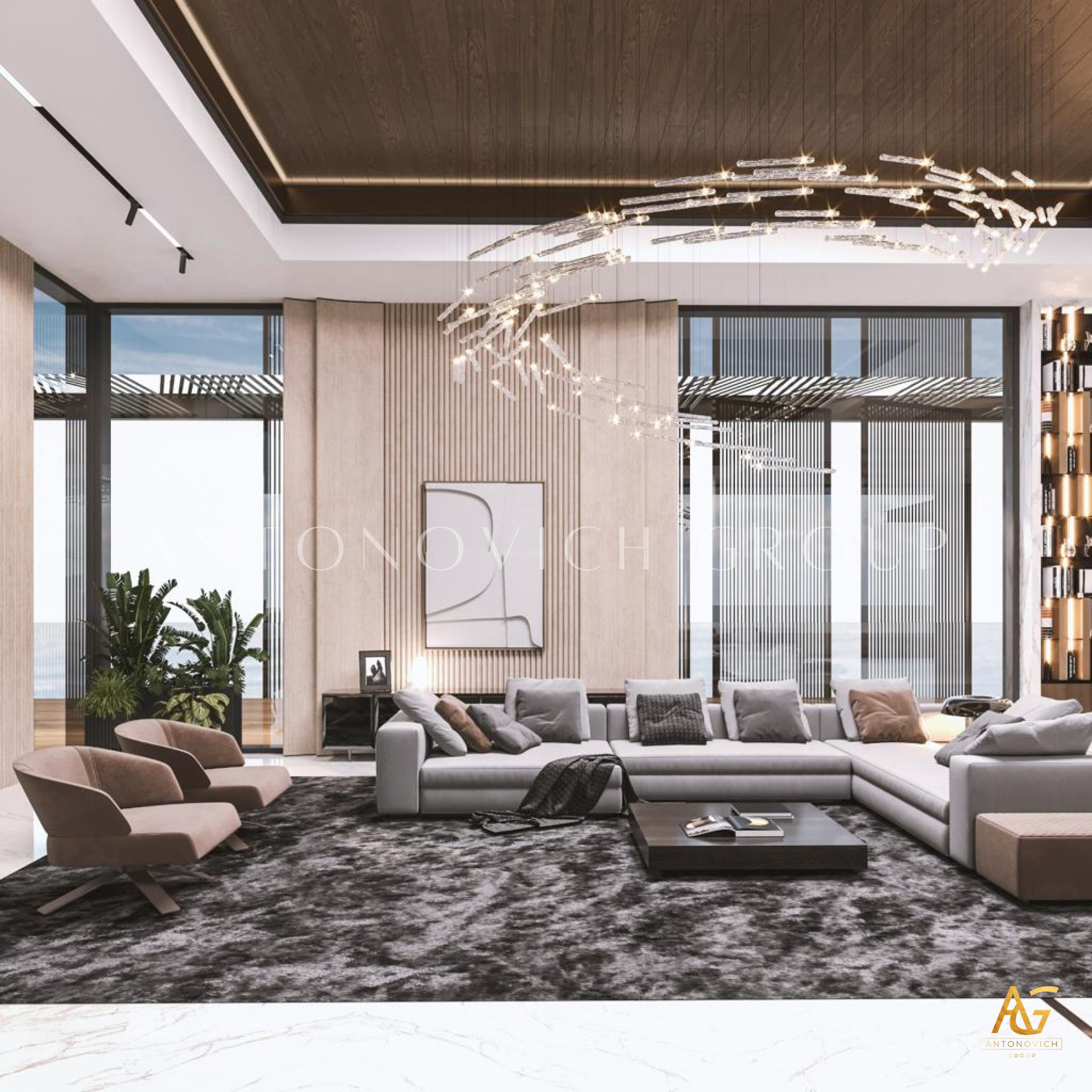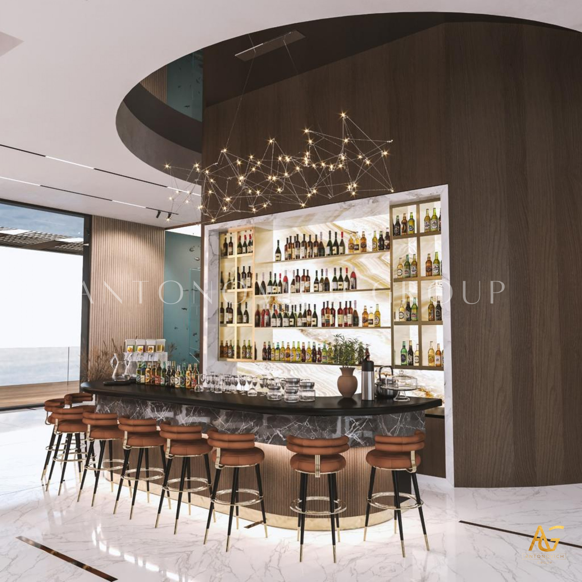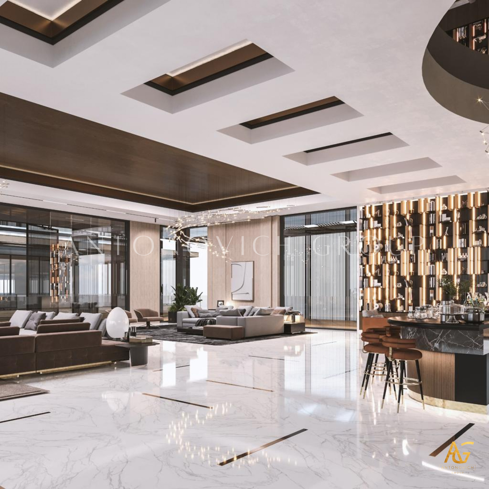 In the realm of spacious living room interior design with a bar counter, Antonovich Group stands as an unrivaled authority. Their holistic approach, encompassing construction, fit-out finesse, interior design, and bespoke furniture services, results in living spaces that redefine opulence. For those seeking a living experience that transcends the ordinary, Antonovich Group is the beacon guiding you towards a realm of timeless sophistication and unmatched luxury.
