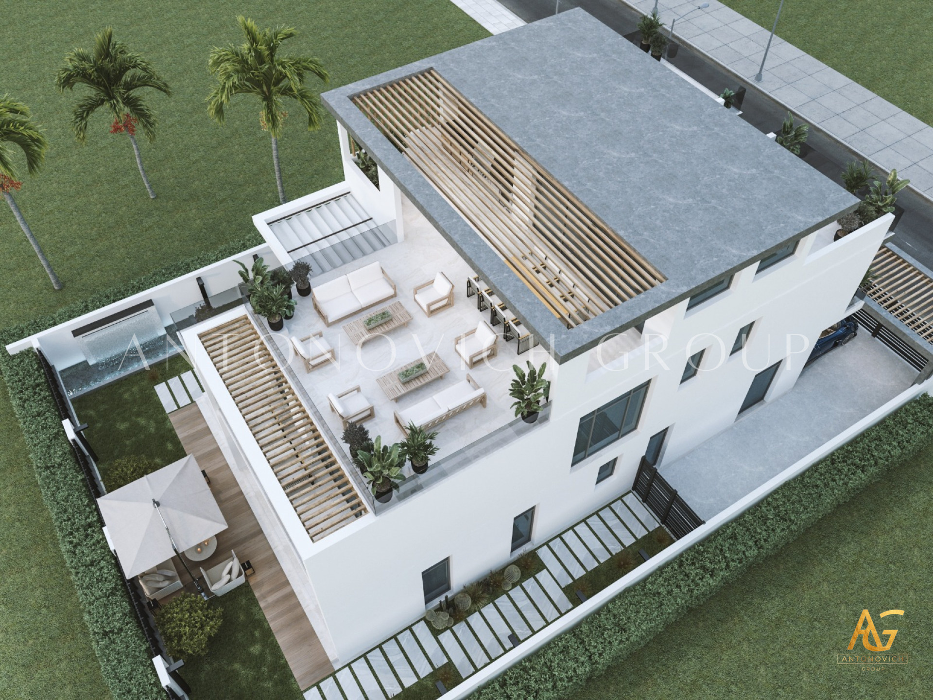 Antonovich Group's design philosophy centers around the belief that outdoor spaces should be an extension of the architecture and blend harmoniously with the surrounding natural environment. They understand the importance of integrating nature into the design to create a tranquil and inviting atmosphere. From lush gardens to serene water features, every element is meticulously chosen to enhance the visual appeal and overall experience.