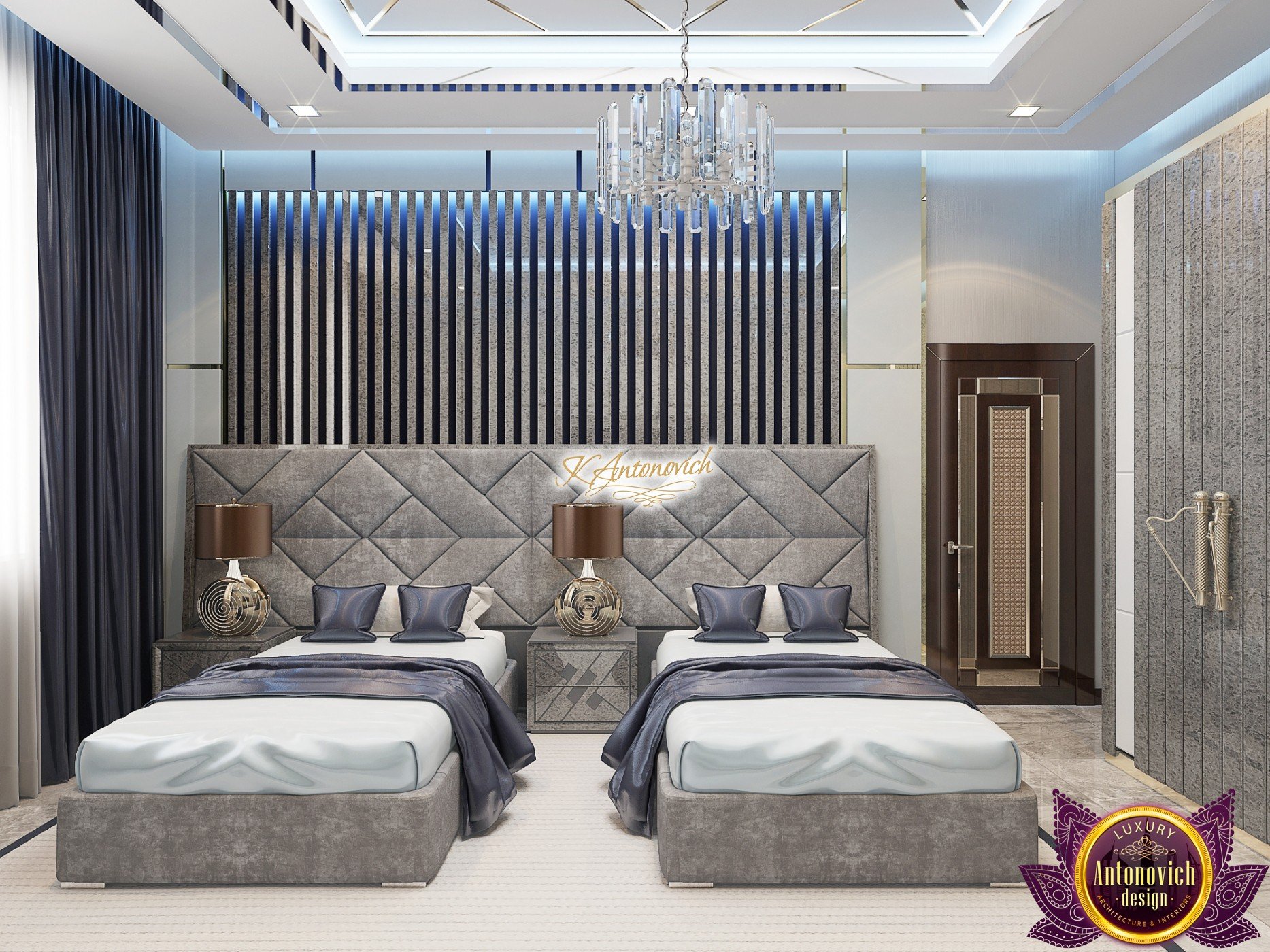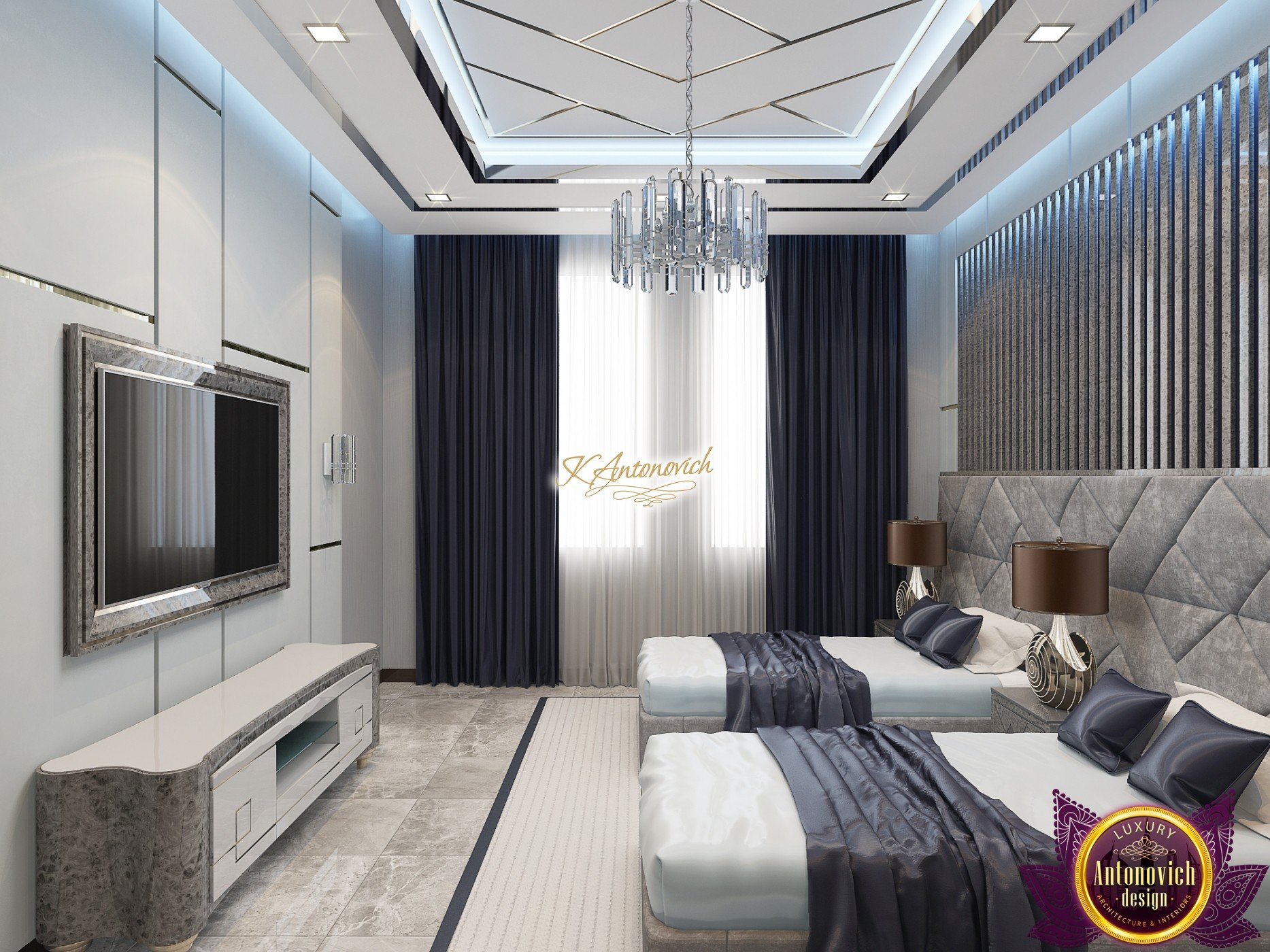 The layout of this luxury kids bedroom interior design is very beautiful with its elegant and interesting furniture design. The flooring and carpet are both integrated with stunning tile designs. The luxury kids bedroom interior design area is very unique with its blue details. This aristocrat interior design is elegant to its concept: luxury. Its navy blue and white look also give the perfect luxury vibe to the luxury kids bedroom interior design.