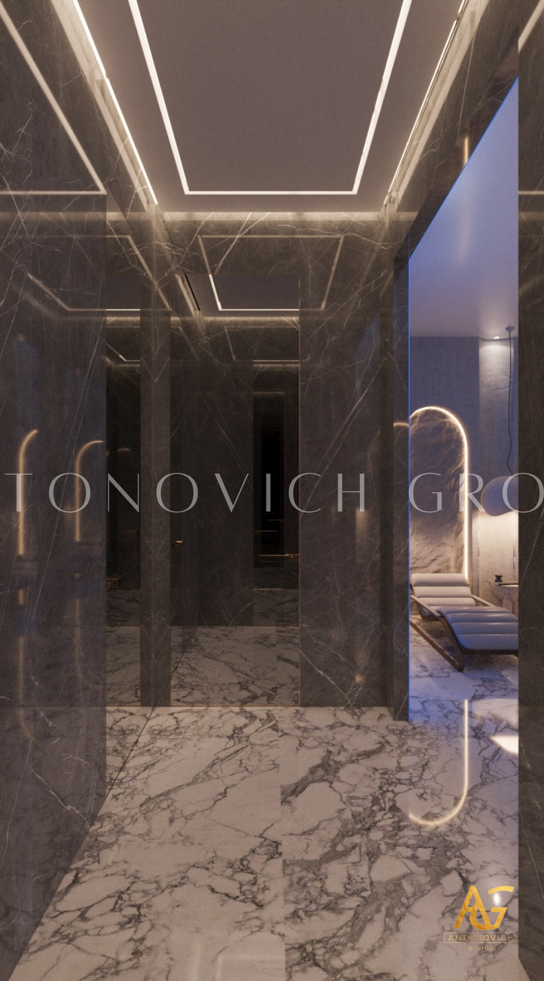 Luxury is often found in the details, and Antonovich Group exemplifies this philosophy in their material choices. From exquisite marble accents to rich wood textures, the spa interiors are adorned with opulence that transcends traditional expectations.