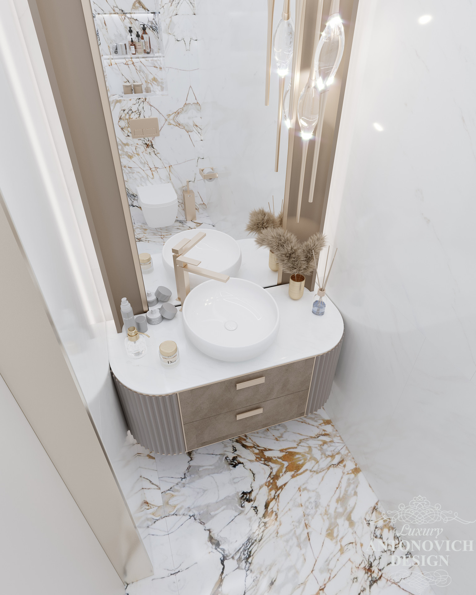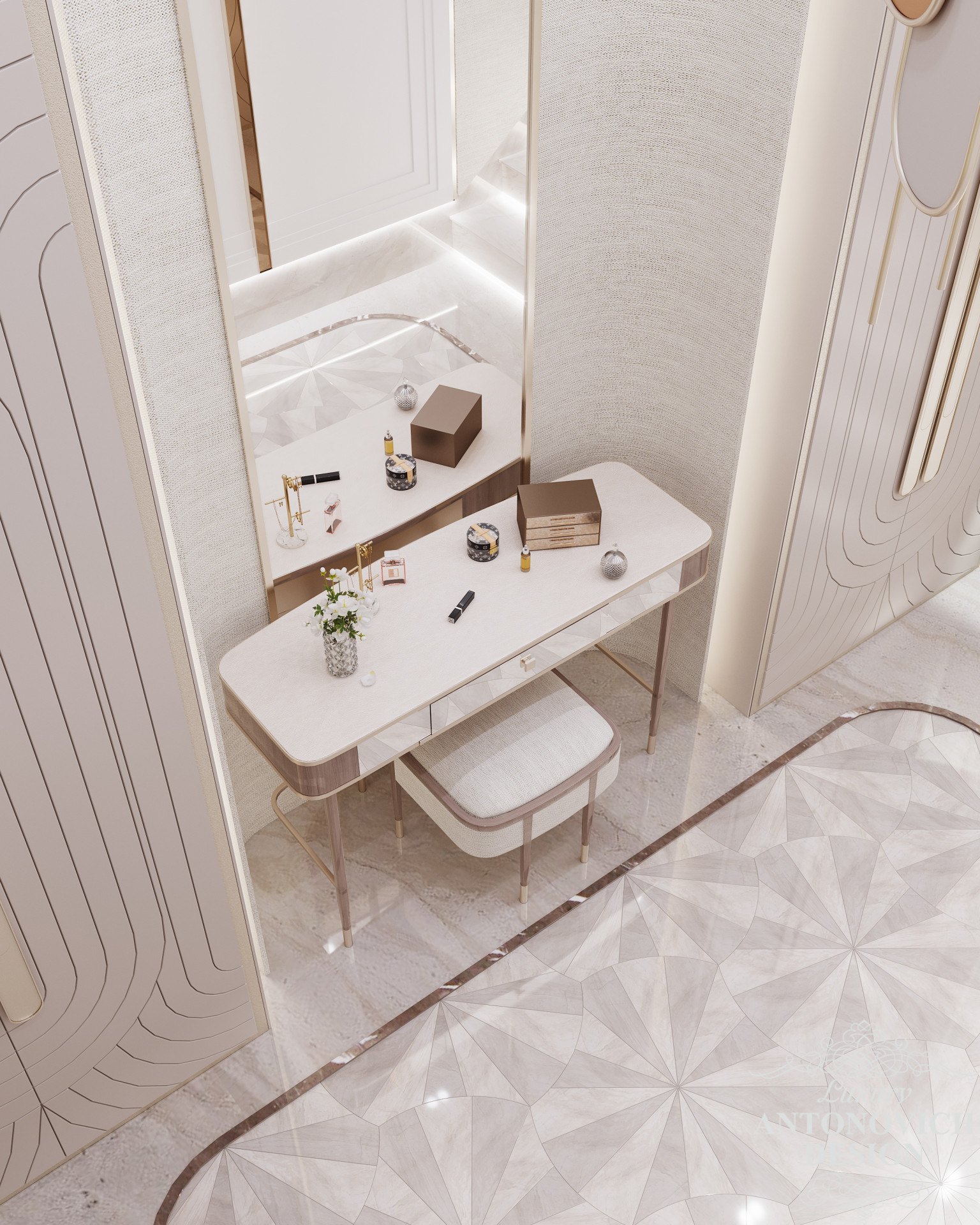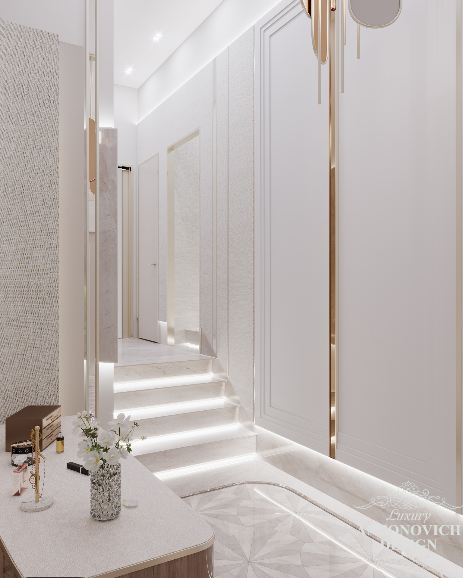 Its beautiful white and light brown color combination all throughout the apartment is such a beauty. Its amazing marble walls paired with a minimalist accent are beautiful to look at. The walk-in closet is also paired with sophistication and elegance. The staircase is well-thought. The minimalist chandelier is superbly great. Perfect for your lifestyle!