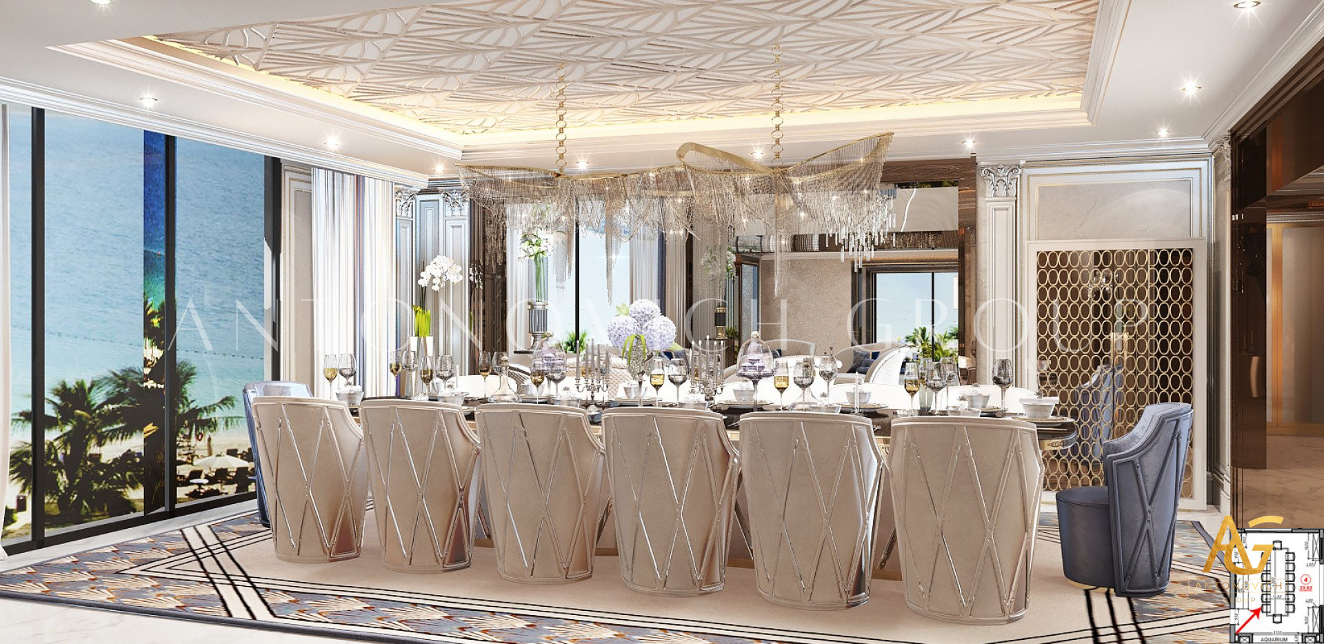 The interior design Dubai dining room is a gathering place for family and friends for holiday dinners, birthday parties, and regular night family meals. Youll most likely spend a lot of time in your dining area after the sun goes down, so choose a light fixture that complements your surroundings. It should be both functional and appealing, a place where guests feel welcome while you, the host, can easily get what you need. The chosen arrangement, styling, and materials will create a warm and welcoming atmosphere.