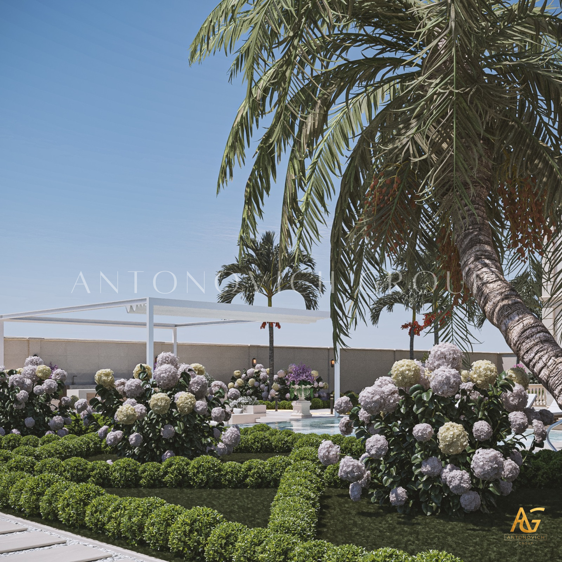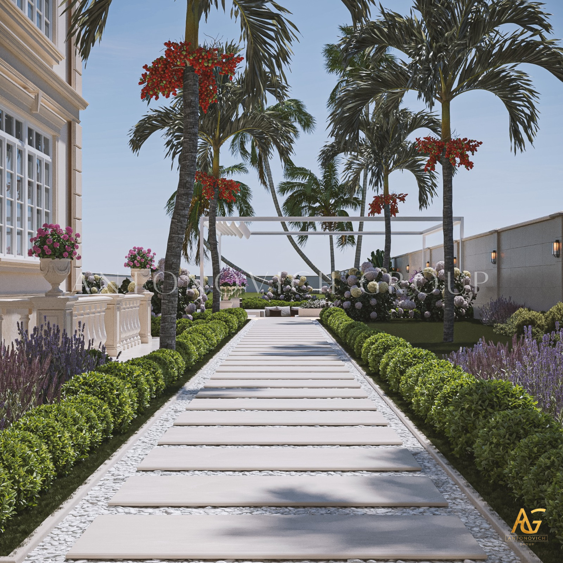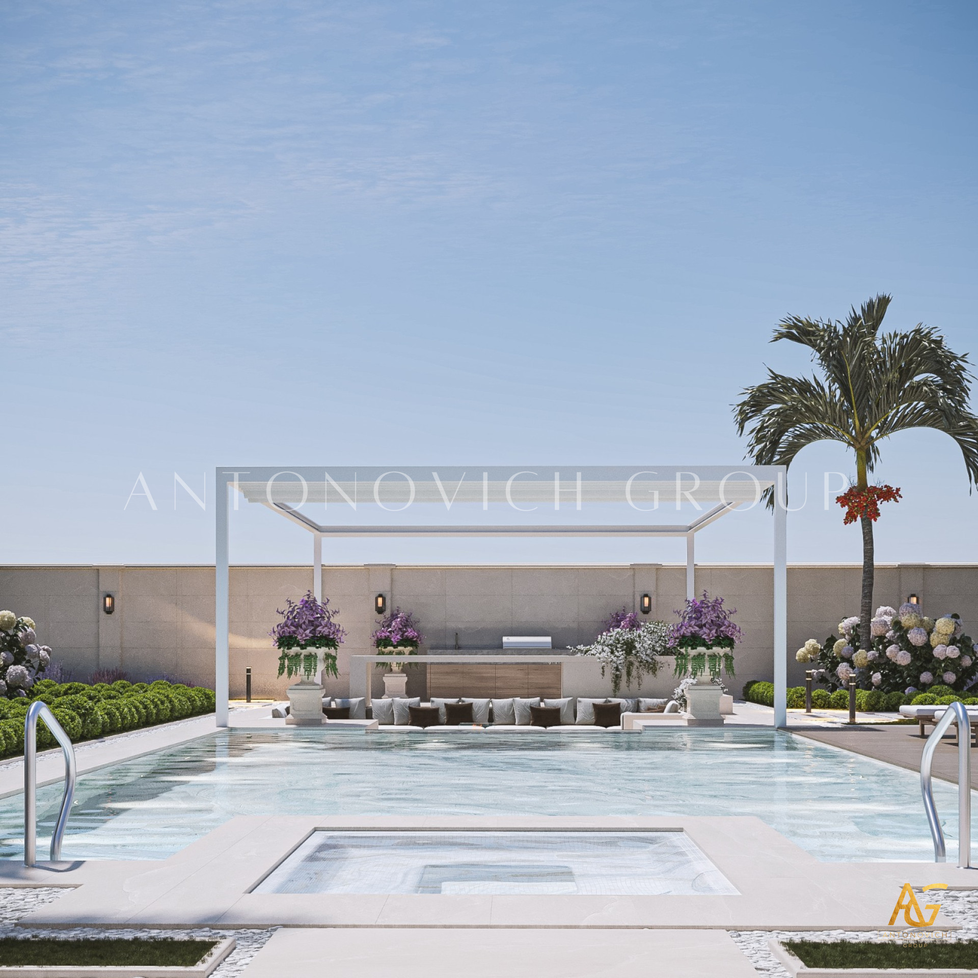 Exterior design goes beyond walls and windows. Antonovich Group excels in crafting full-scale outdoor architecture that blends architecture with nature. From outdoor living space design to entrance landscape design, every detail is curated to enhance your property’s lifestyle value while maintaining aesthetic coherence.