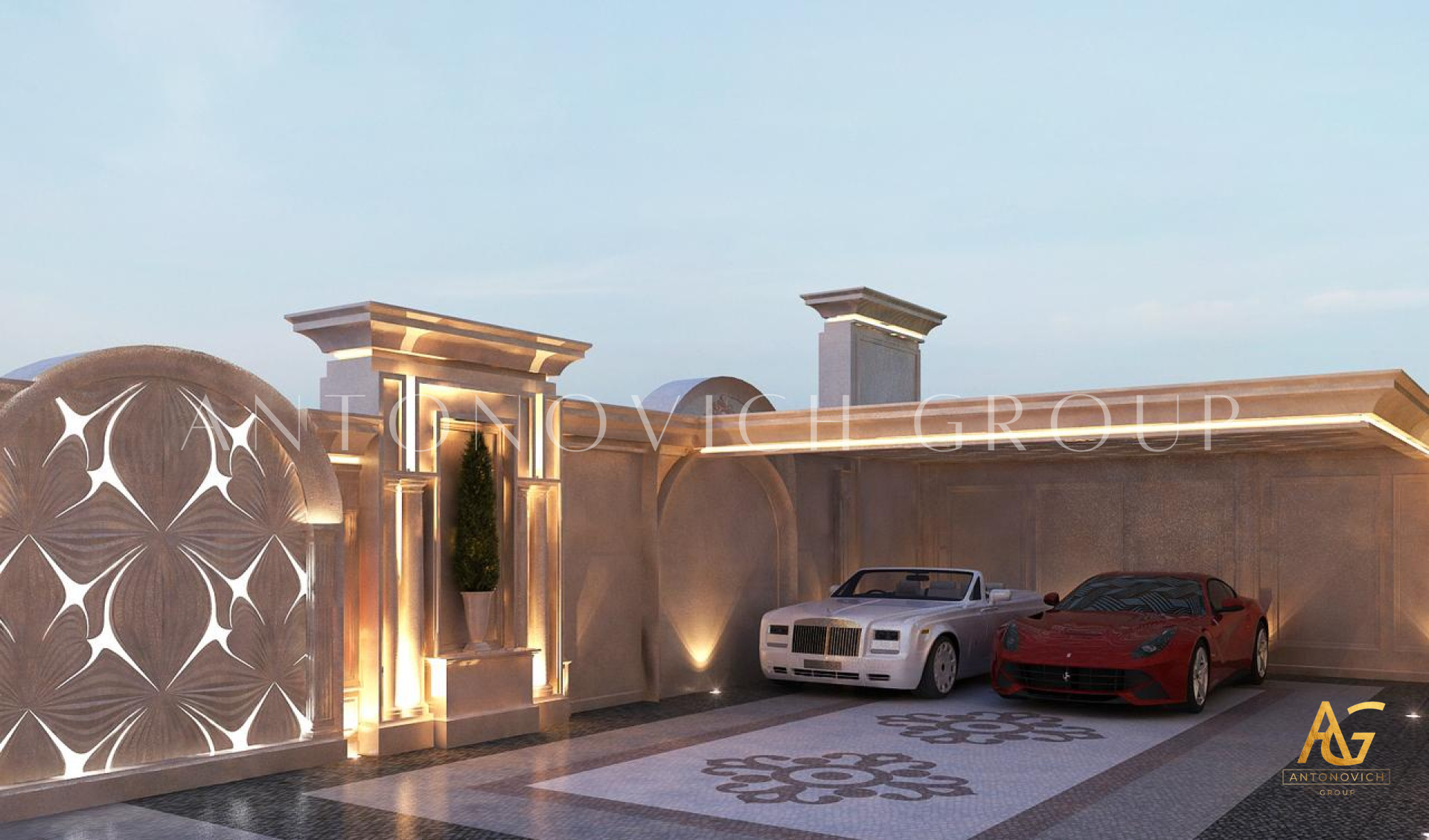 The architectural and design studio Luxury Antonovich Design will hold a full range of services and put a facility into service. The cost of the architectural sketch of the project will depend on many parameters: the selected style, local topography, surface and structure of the project. Craftsmen will transform your home in a fabulous space.