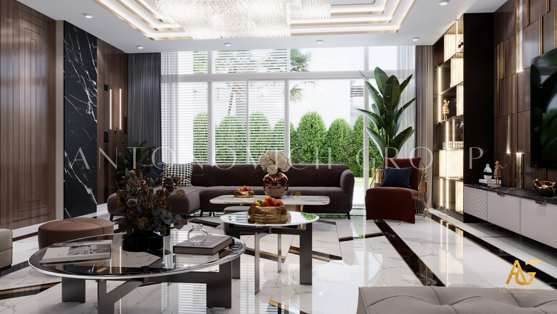 Antonovich Group is pleased to present yet another magnificent villa interior design that has been expertly executed by the design team. The villa has been tastefully decorated with sophisticated home styling. The villa has a very large plot of land and a high requirement for luxury modern interior design. This may be challenging for the team, but it also adds excitement and adventure. Every stage of design development and implementation has gone through meticulous planning and organization of the entire project arrangement. During the early stages of project execution, the team worked extra hard on space planning design and layout of the entire project layout. Because the villa must have a luxury modern style, selecting every material and furniture design is another difficult task for the entire project team.