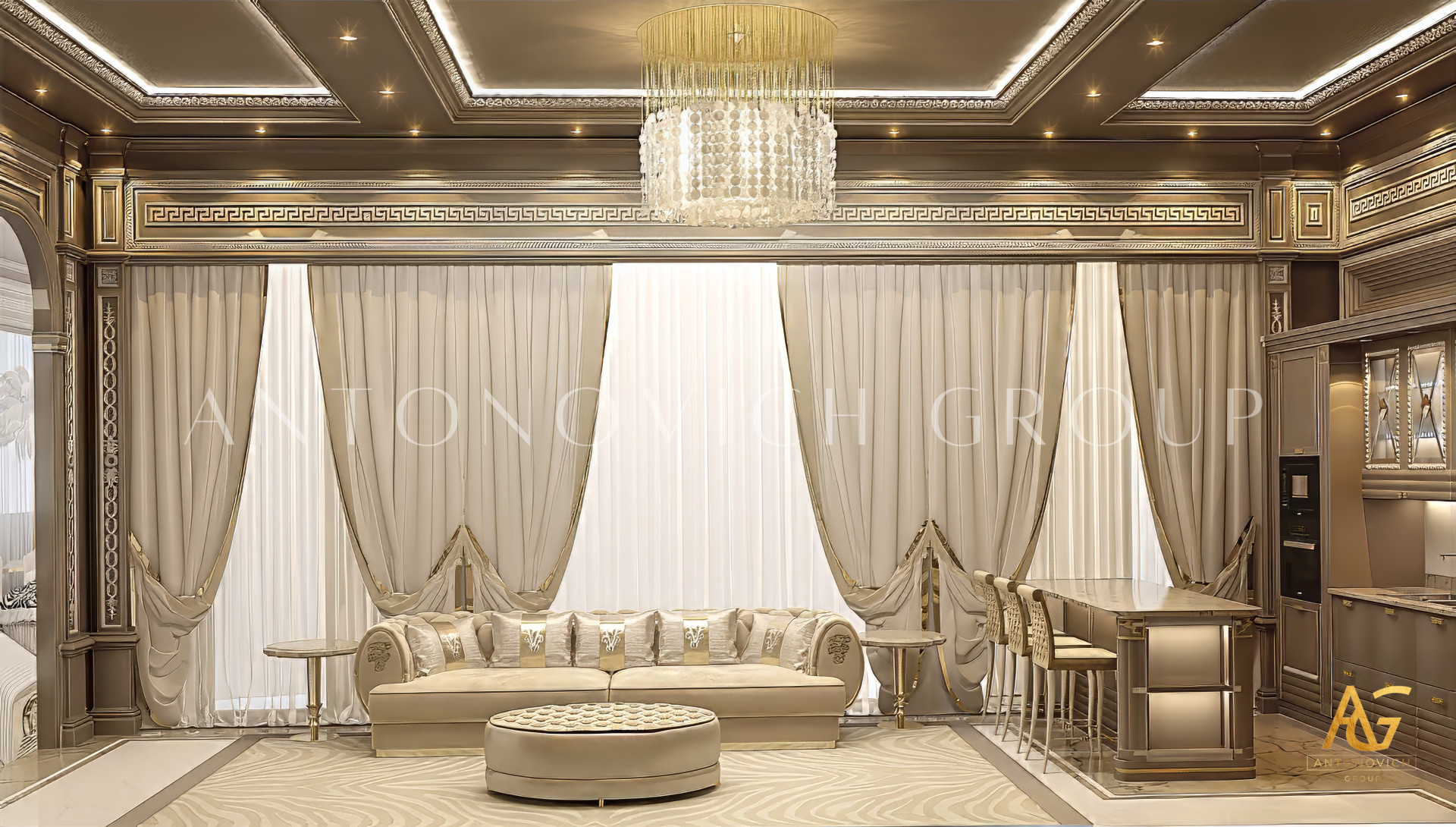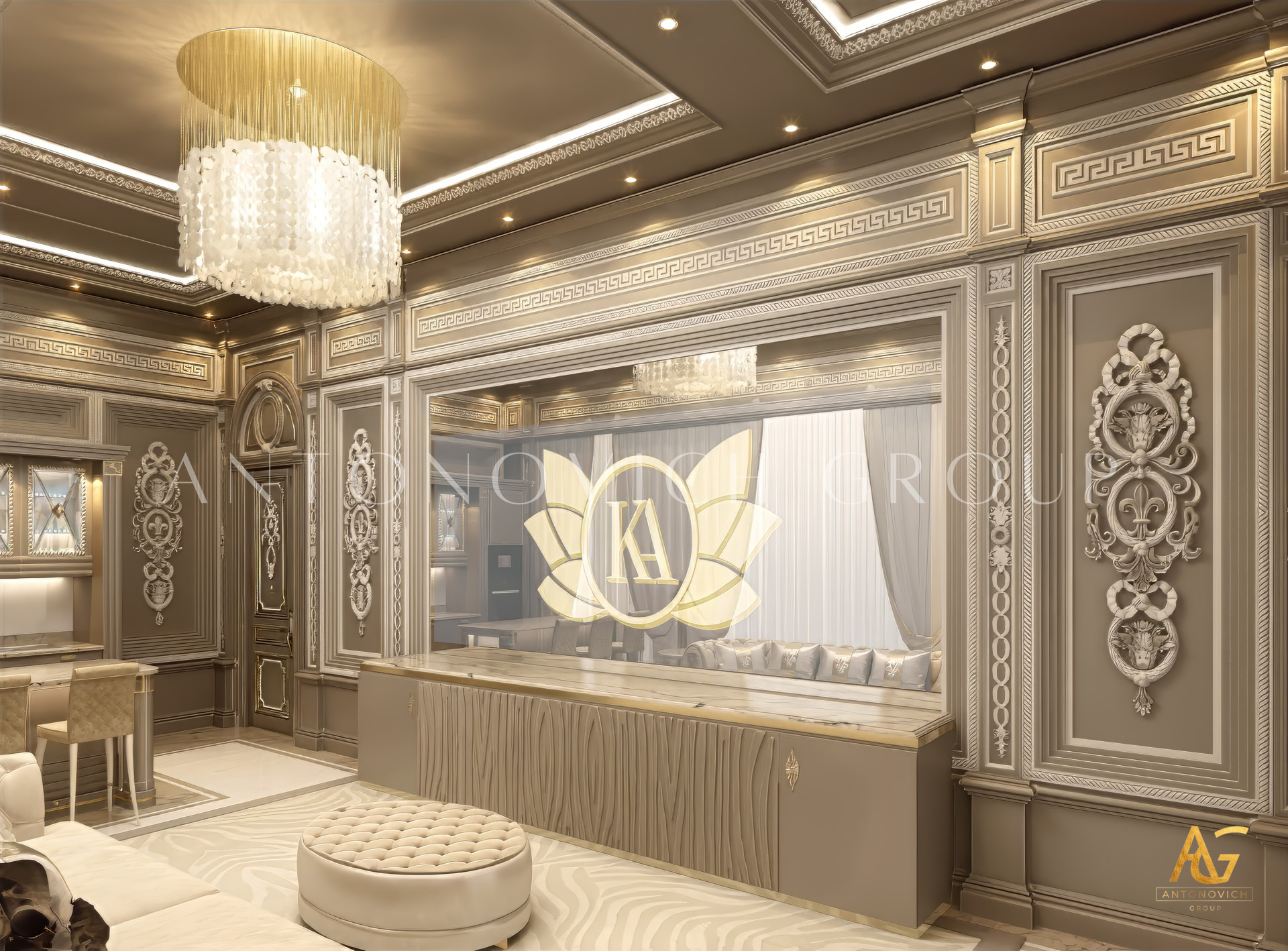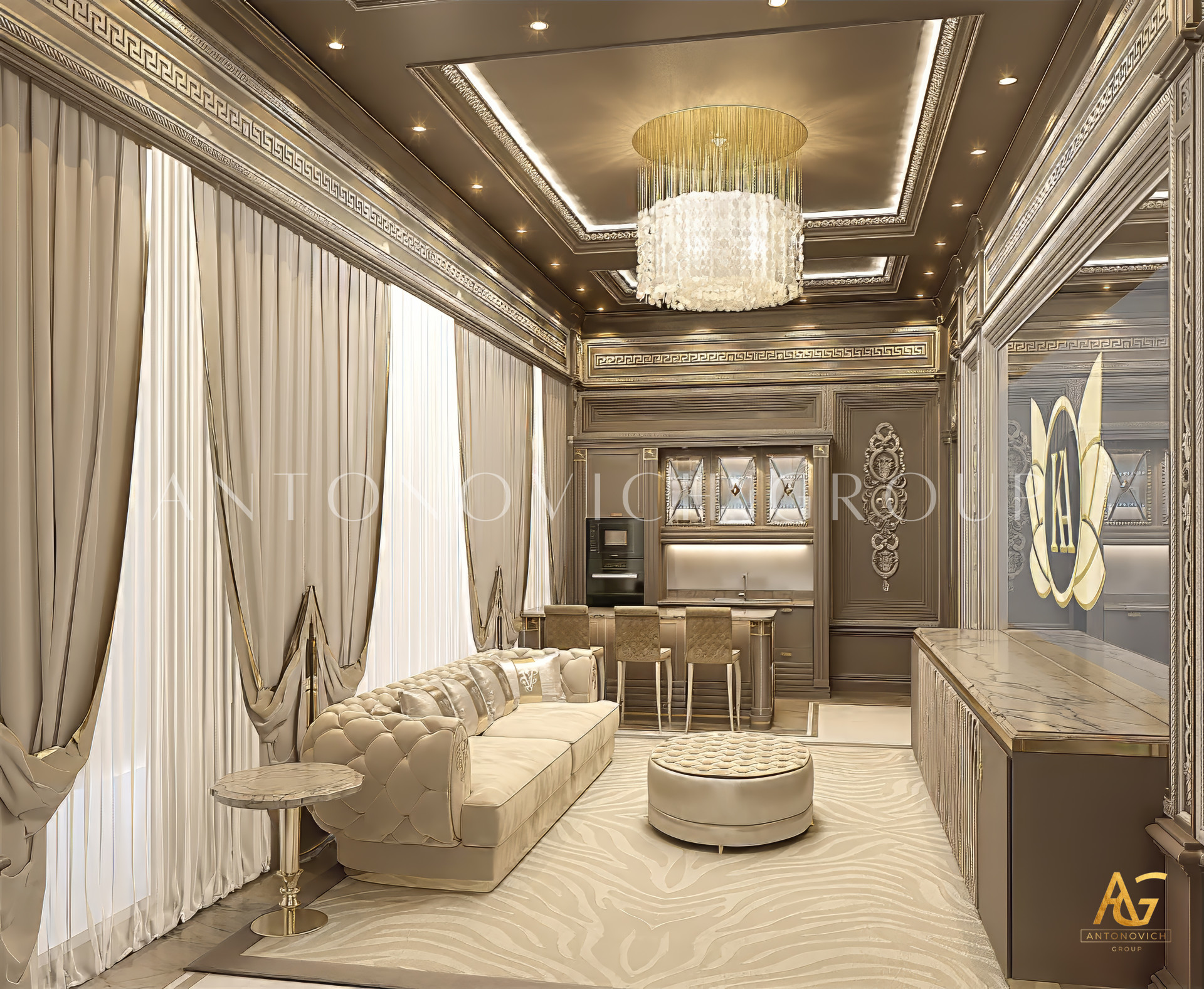 Antonovich Group is not just an interior design firm—it is a full-service design and build company. Clients benefit from a turnkey solution, meaning every stage of the project is handled by the same expert team. This includes concept development, 3D visualization, fit-out execution, furniture manufacturing, and final styling.