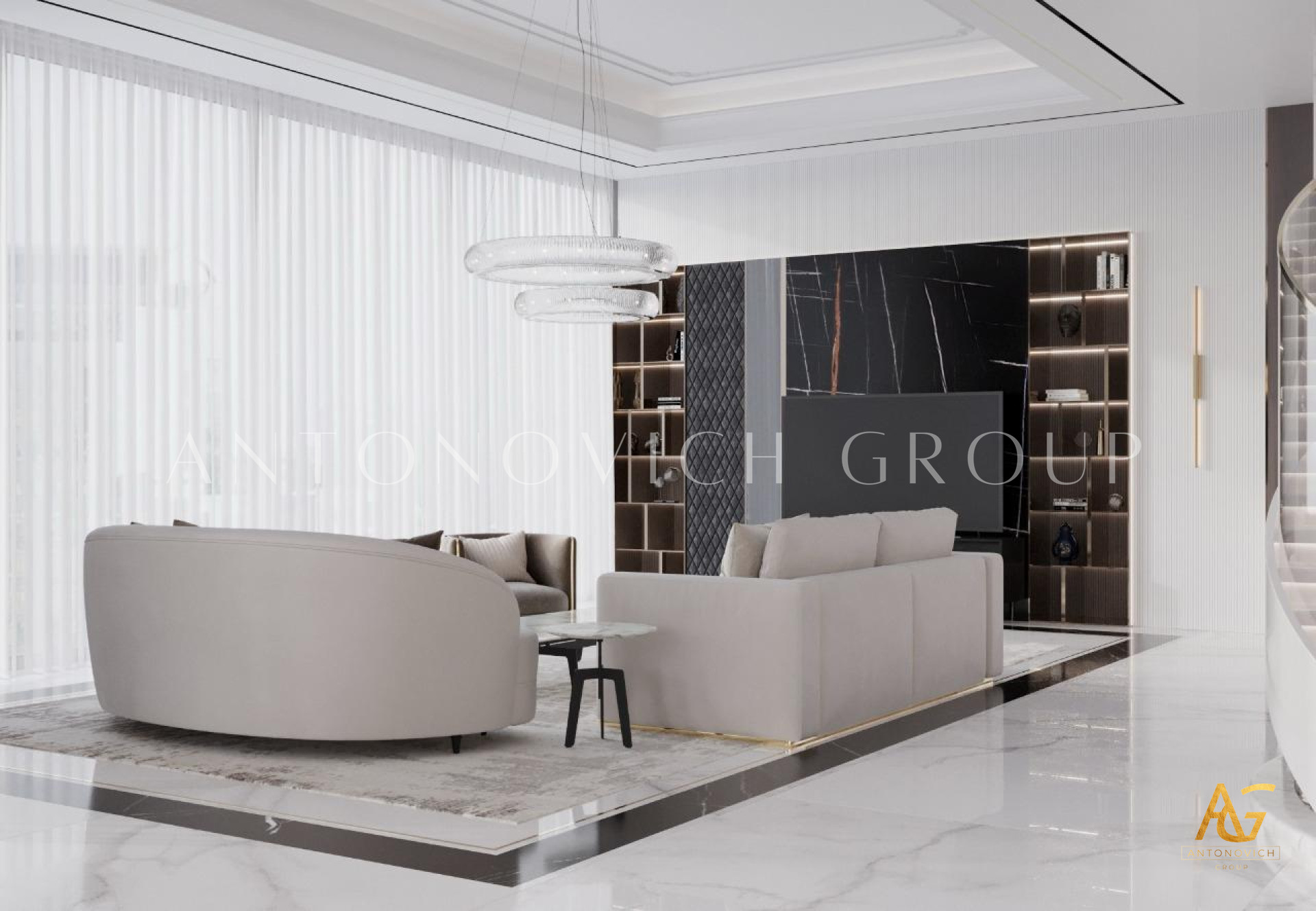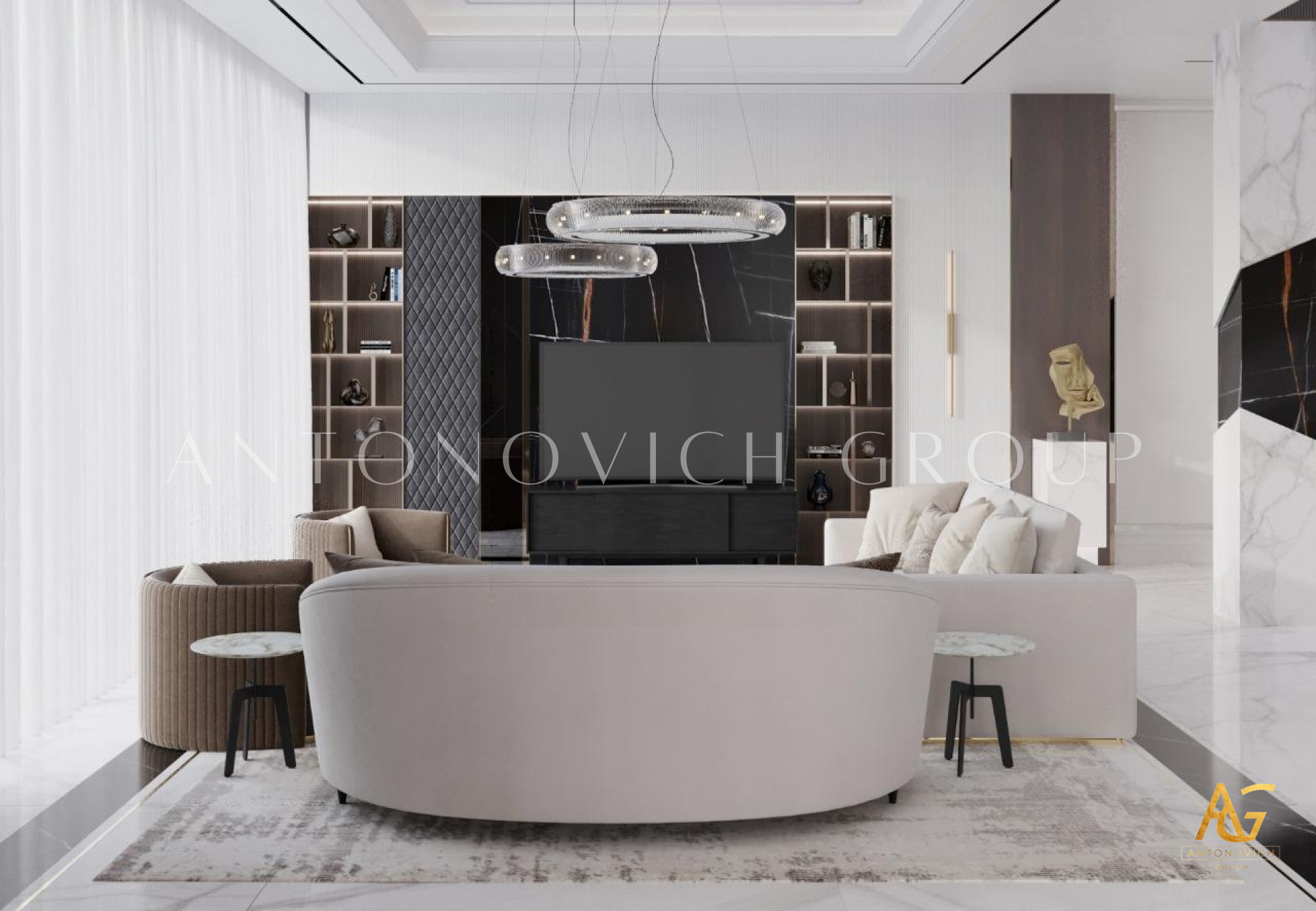 Key Features of Antonovich Group’s Modern Living Room Designs