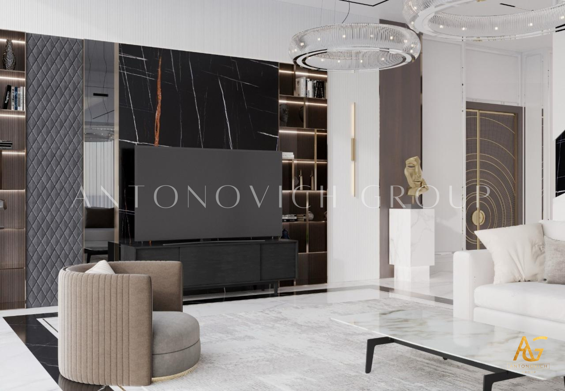 Elevate your home with modern living room design in Dubai by Antonovich Group. Experience luxury, innovation, and functionality in a space that truly reflects your style. Contact Antonovich Group today to bring your dream living room to life!